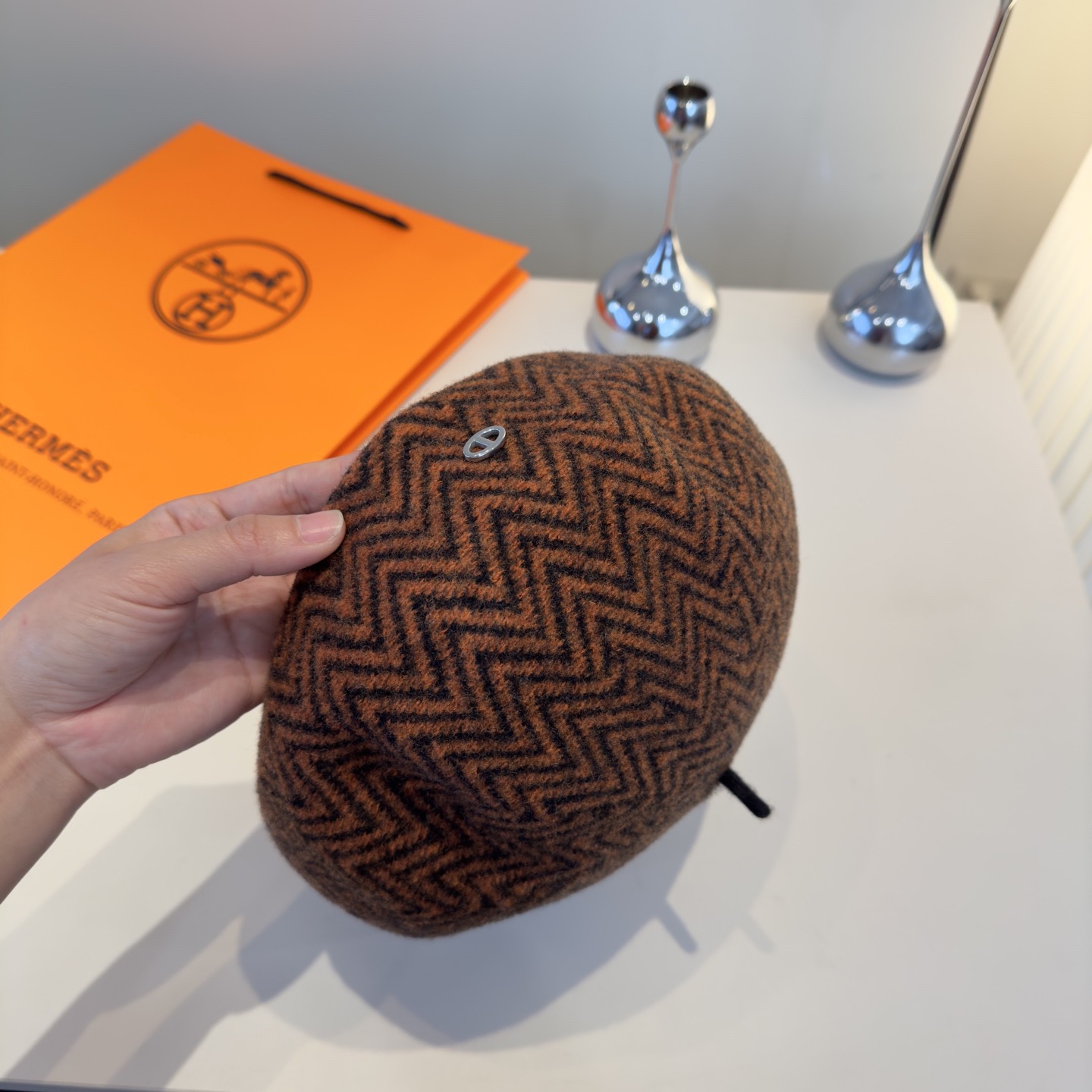 这款帽子是AAAAA 1:1 质量 (非常棒). 使用了和原版一模一样的材料. 商标部分也保持了和爱马仕/Hermes一样. 图片拍摄是实物帽子拍摄, 您所收到的实物保证和我们图片一模一样.