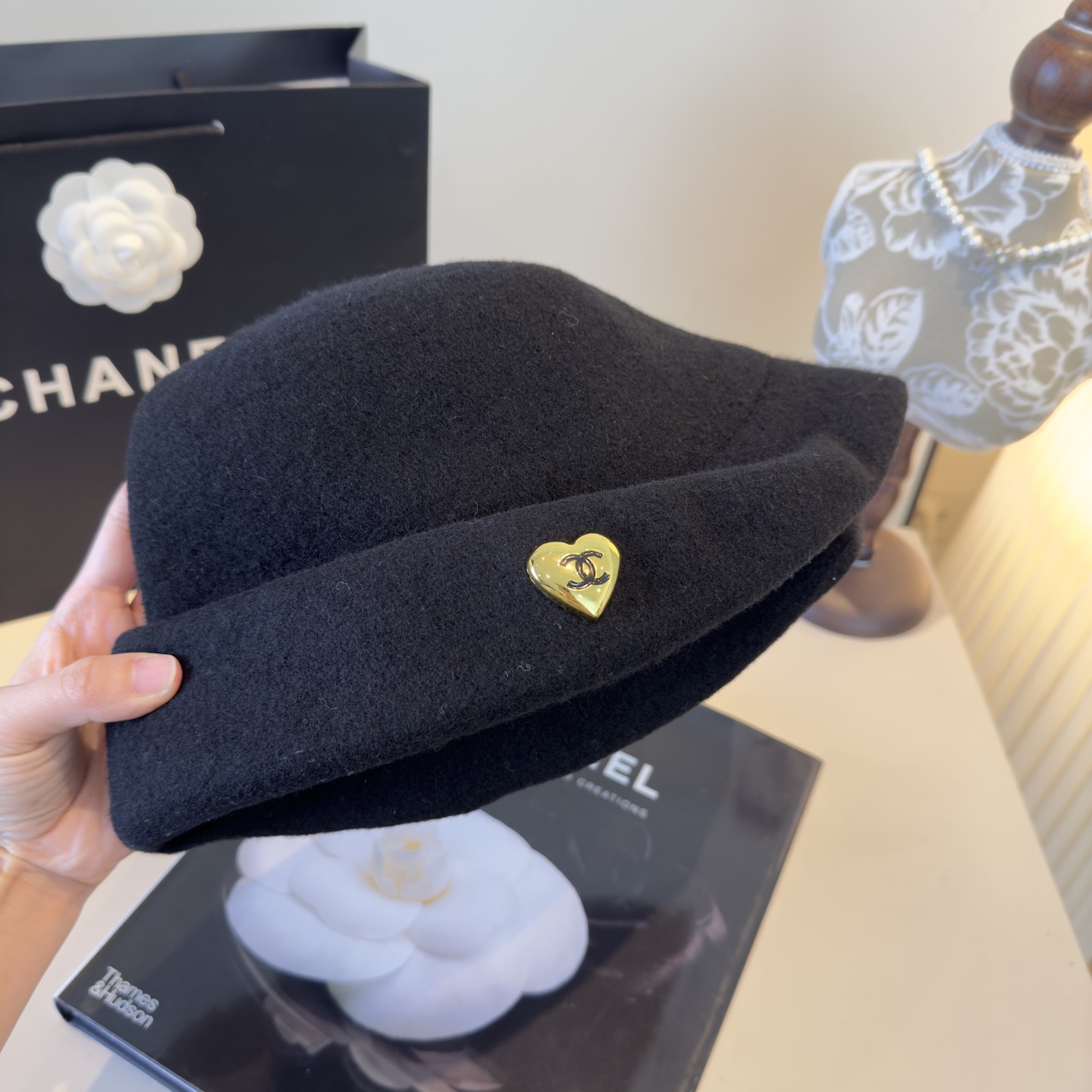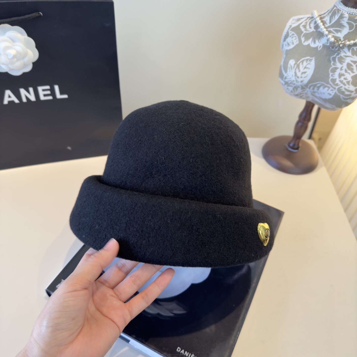 这款帽子是AAAAA 1:1 质量 (非常棒). 使用了和原版一模一样的材料. 商标部分也保持了和香奈儿/Chanel一样. 图片拍摄是实物帽子拍摄, 您所收到的实物保证和我们图片一模一样.