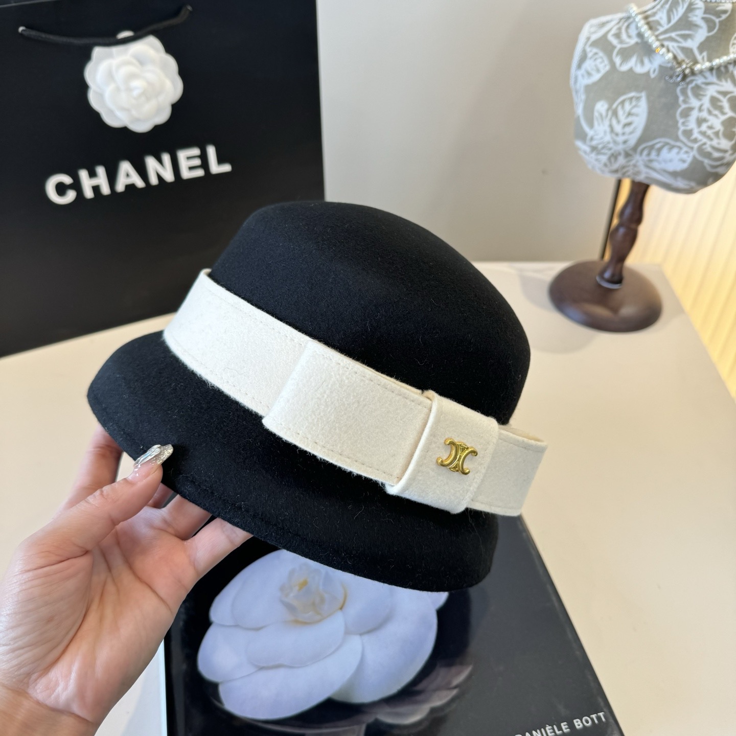 这款帽子是AAAAA 1:1 质量 (非常棒). 使用了和原版一模一样的材料. 商标部分也保持了和思琳/Celine一样. 图片拍摄是实物帽子拍摄, 您所收到的实物保证和我们图片一模一样.