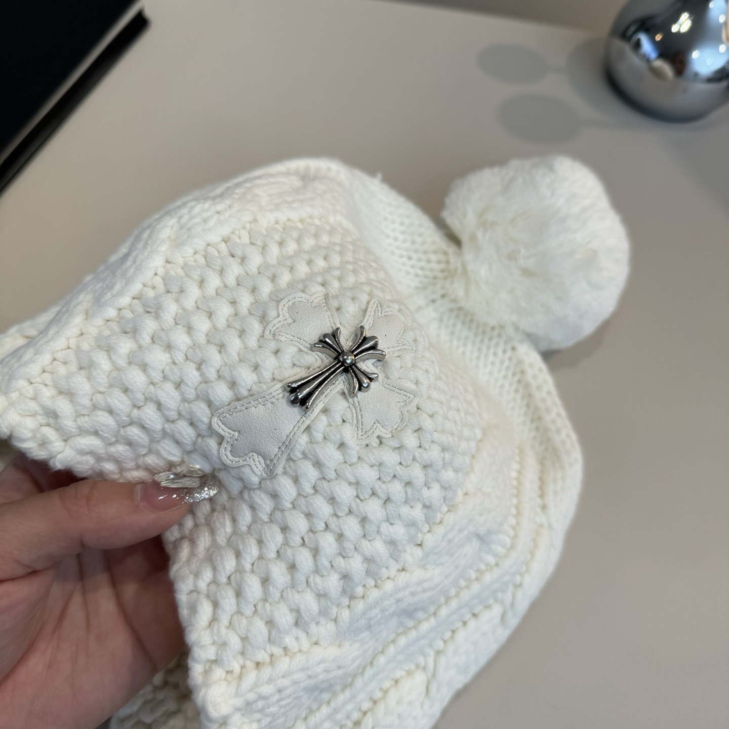 这款帽子是AAAAA 1:1 质量 (非常棒). 使用了和原版一模一样的材料. 商标部分也保持了和克罗心/Chrome Hearts一样. 图片拍摄是实物帽子拍摄, 您所收到的实物保证和我们图片一模一样.