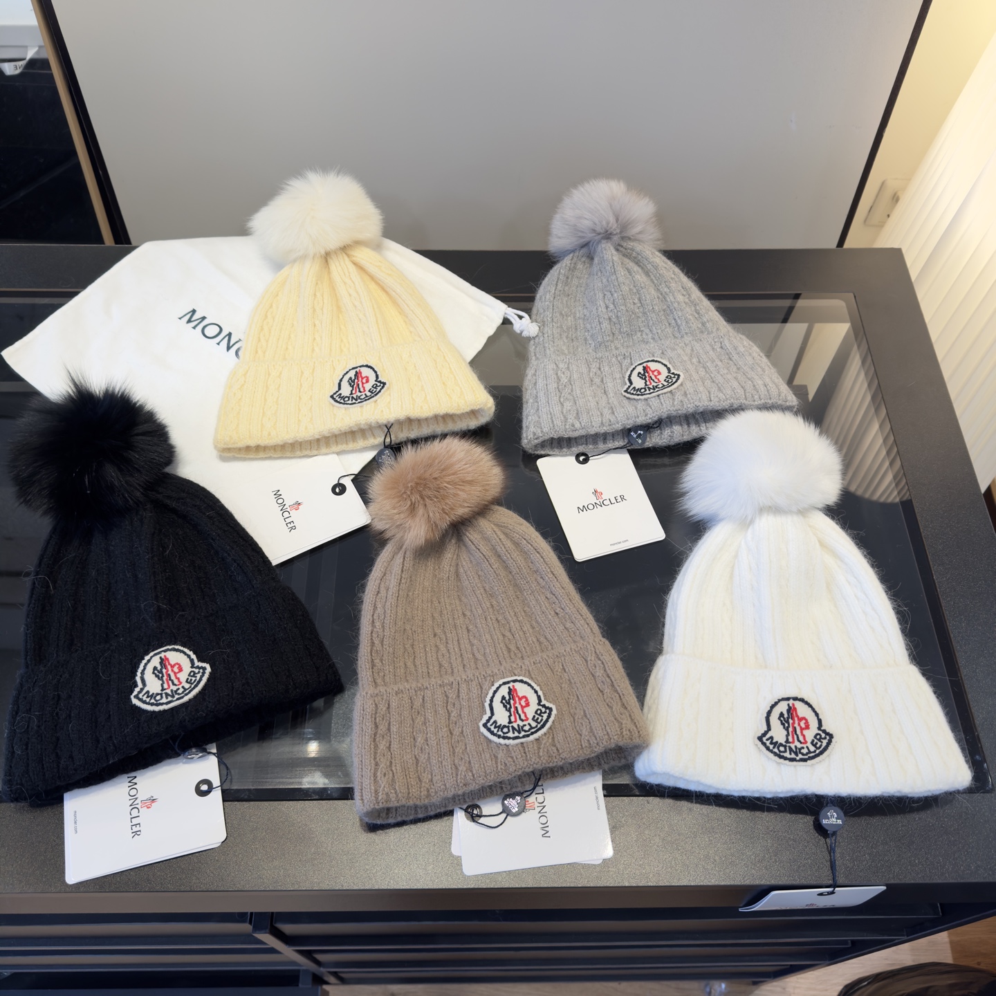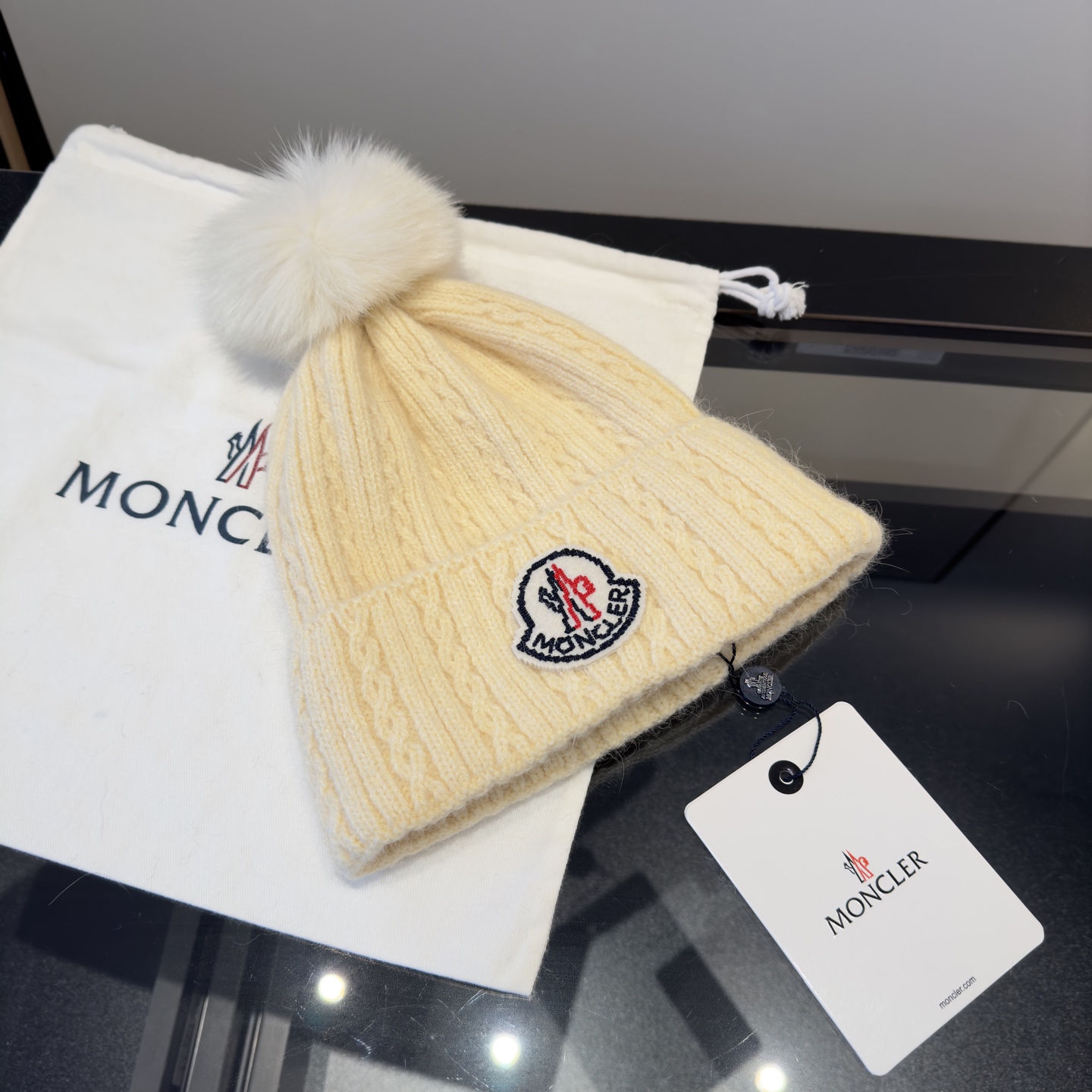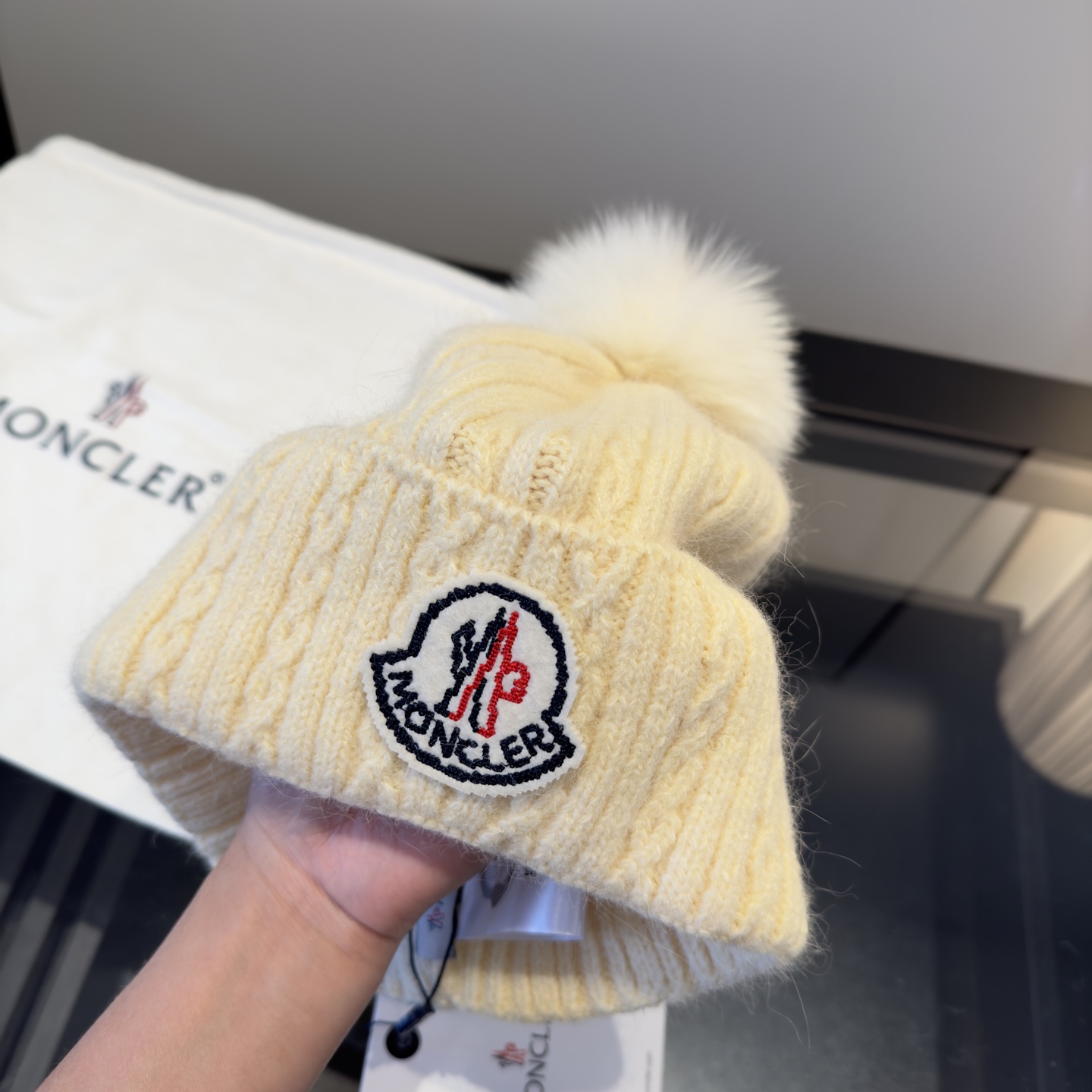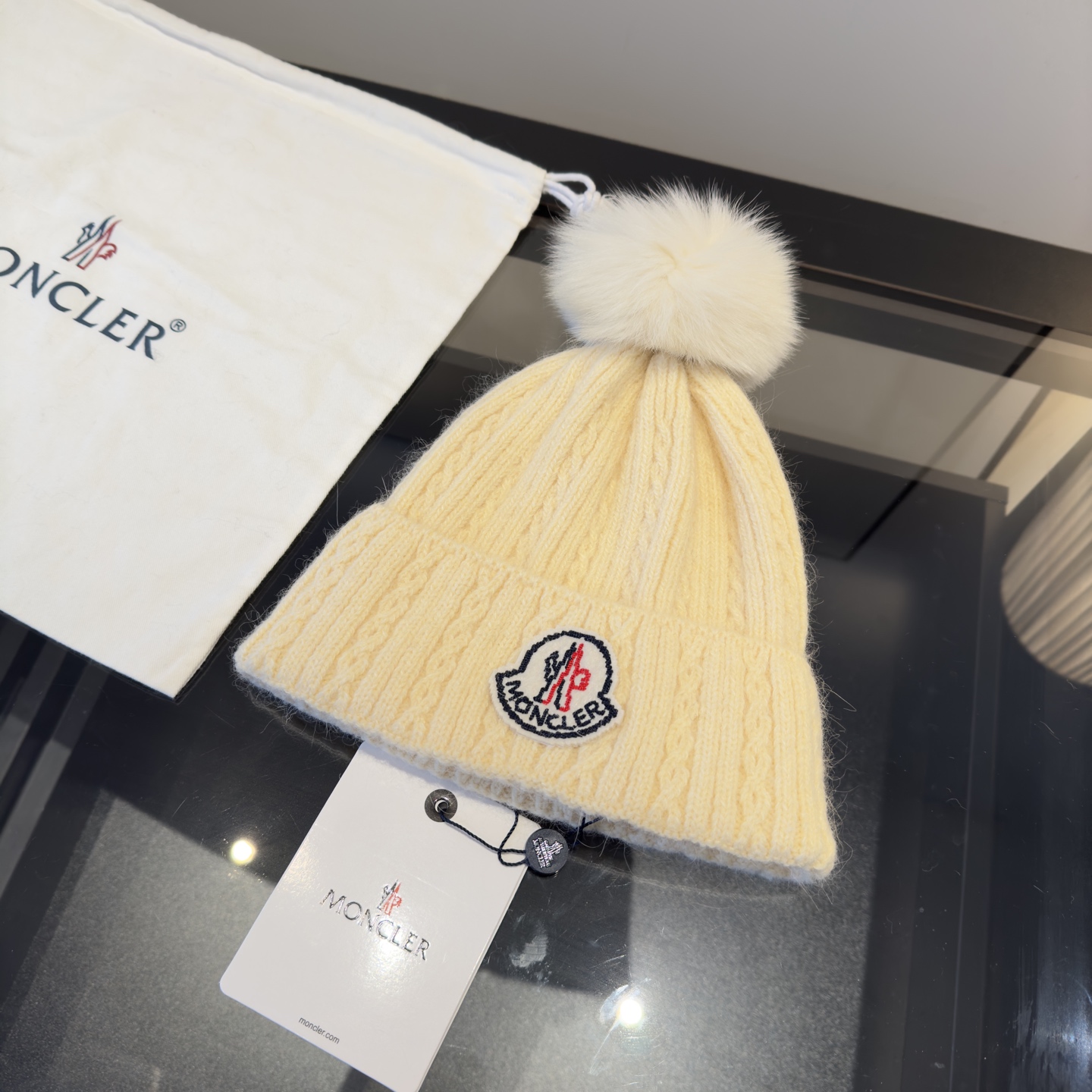 这款帽子是AAAAA 1:1 质量 (非常棒). 使用了和原版一模一样的材料. 商标部分也保持了和盟可睐/moncler一样. 图片拍摄是实物帽子拍摄, 您所收到的实物保证和我们图片一模一样.