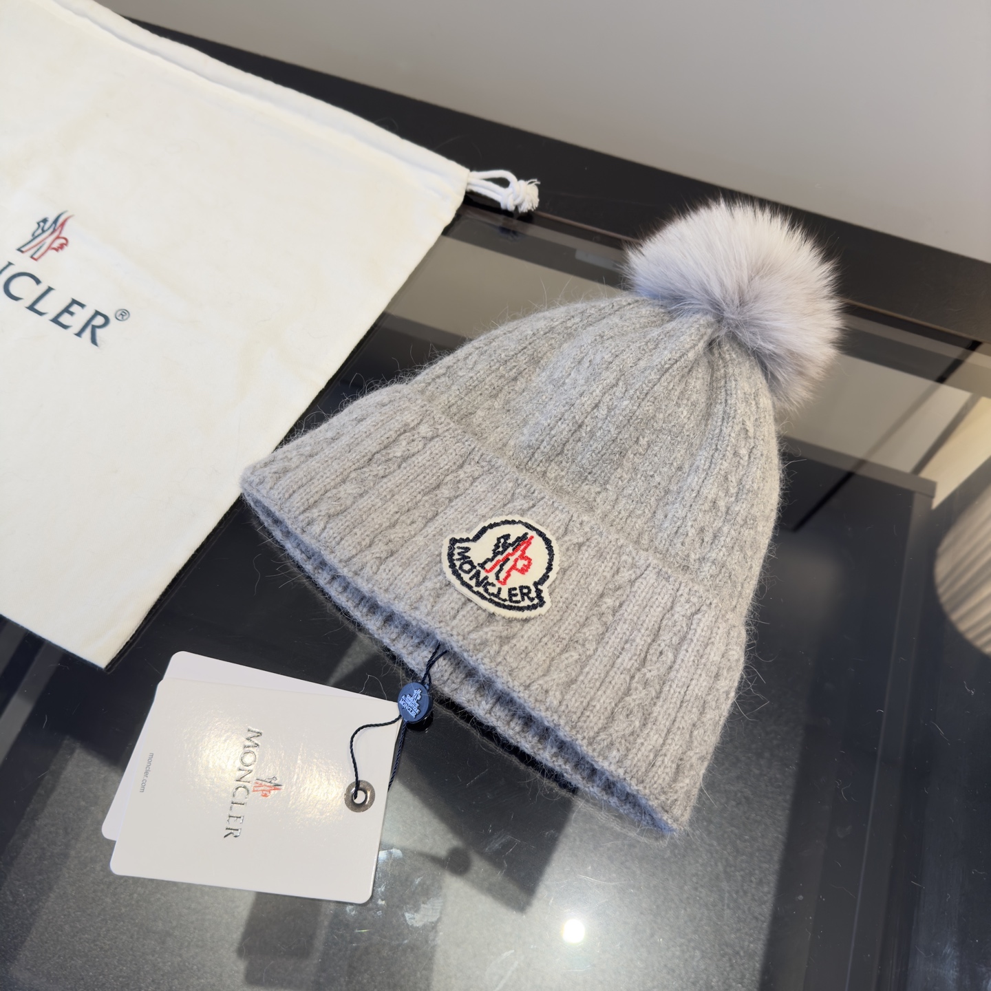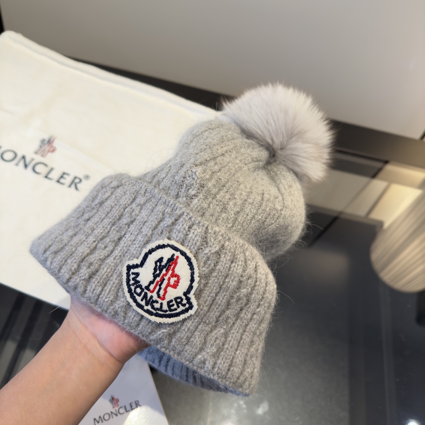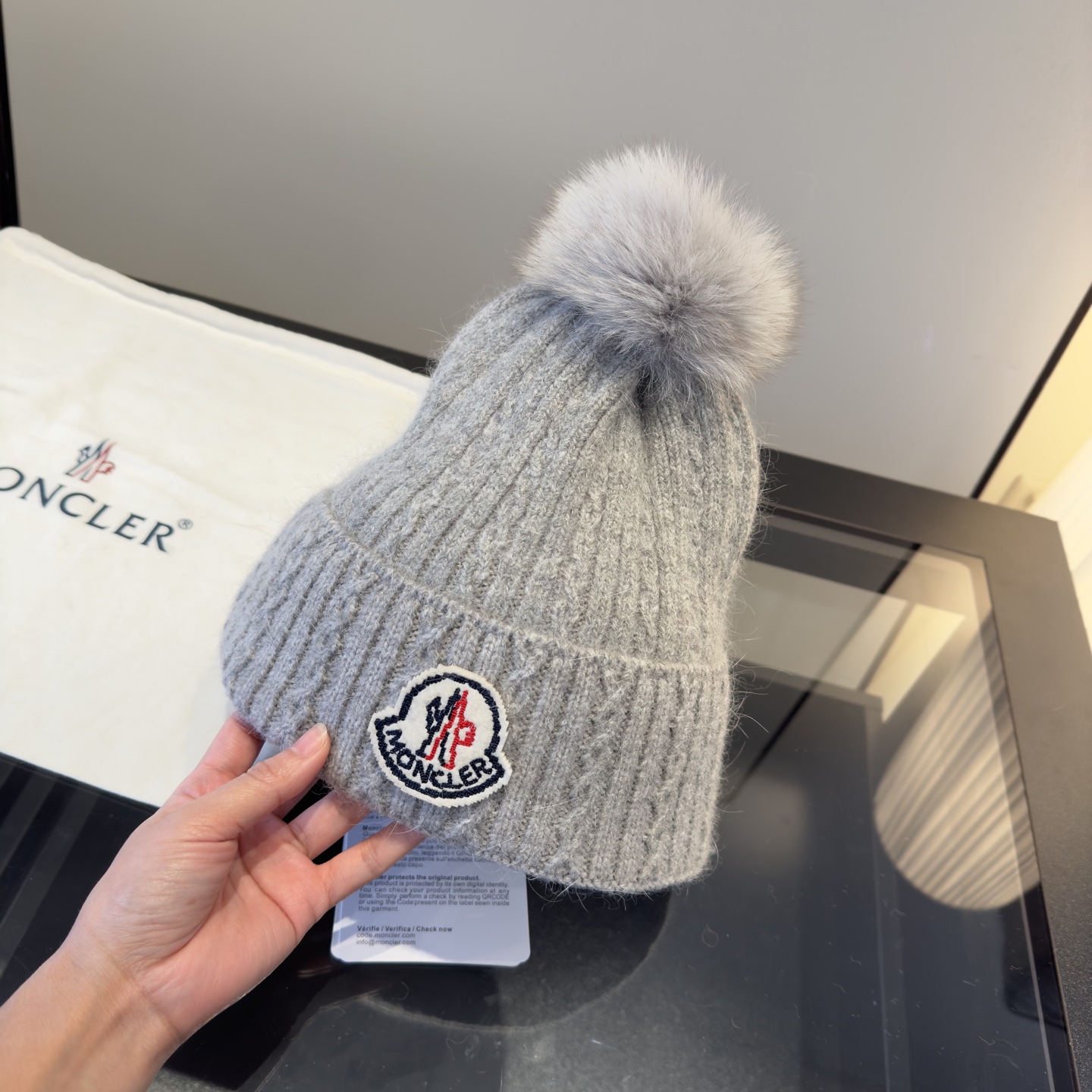这款帽子是AAAAA 1:1 质量 (非常棒). 使用了和原版一模一样的材料. 商标部分也保持了和盟可睐/moncler一样. 图片拍摄是实物帽子拍摄, 您所收到的实物保证和我们图片一模一样.