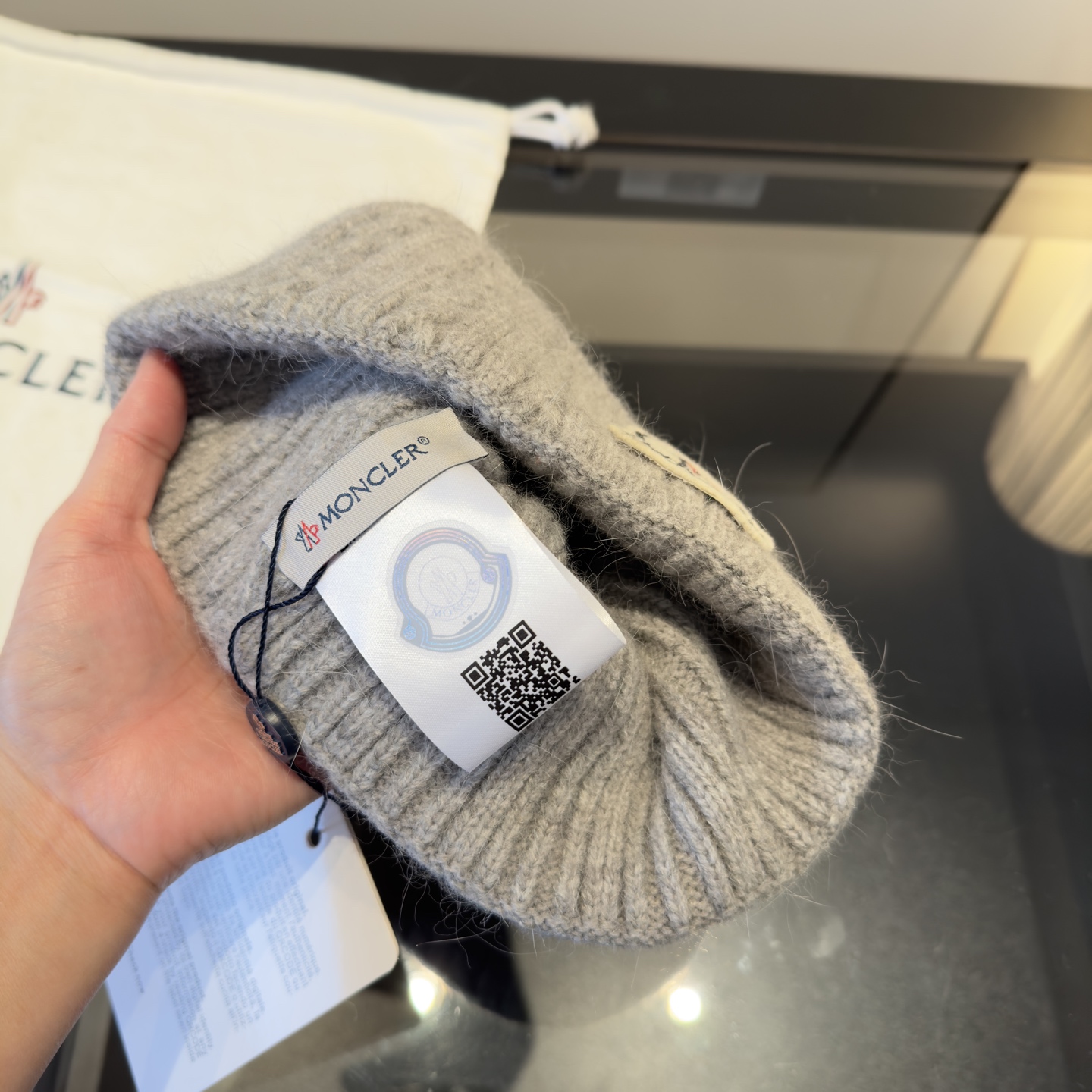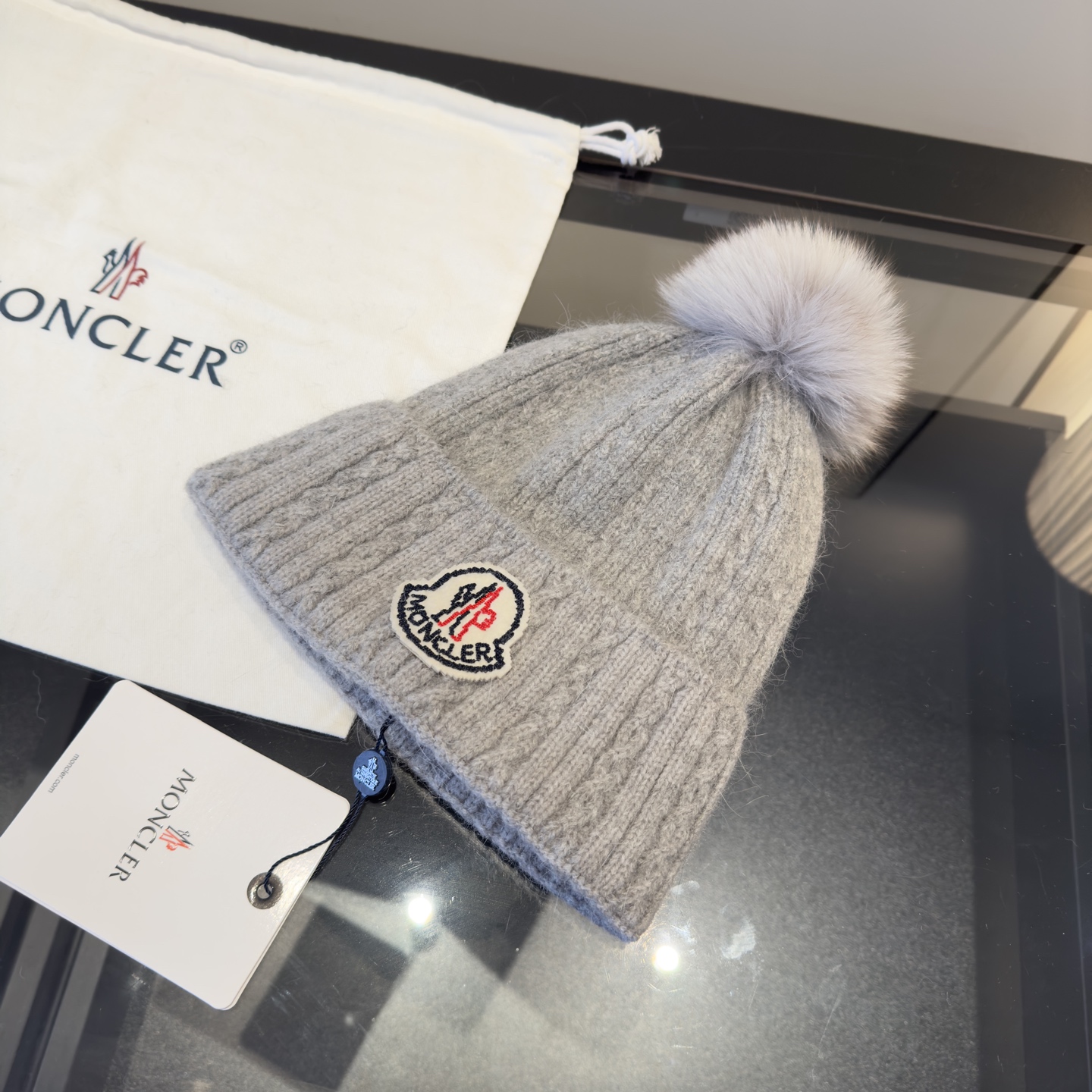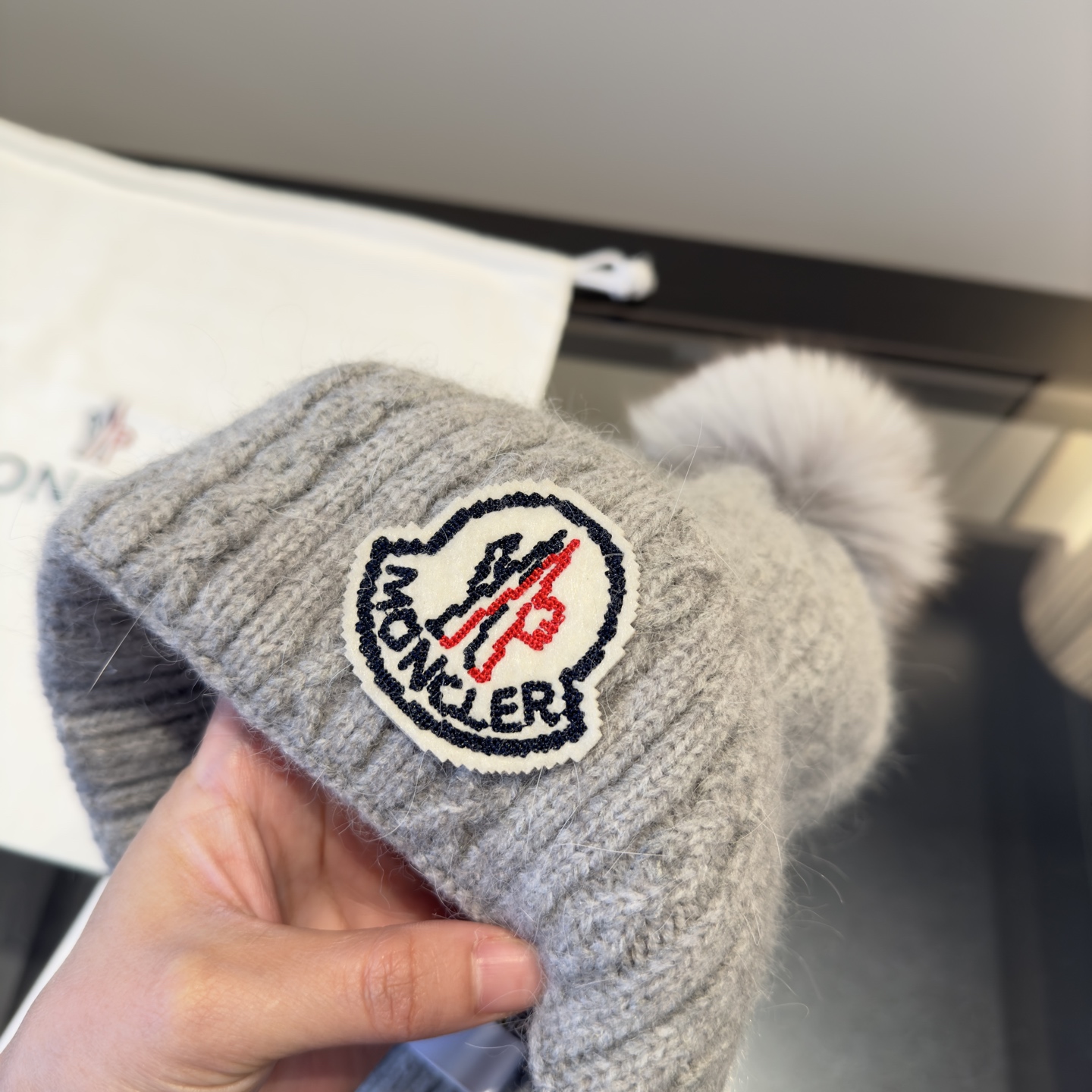 这款帽子是AAAAA 1:1 质量 (非常棒). 使用了和原版一模一样的材料. 商标部分也保持了和盟可睐/moncler一样. 图片拍摄是实物帽子拍摄, 您所收到的实物保证和我们图片一模一样.