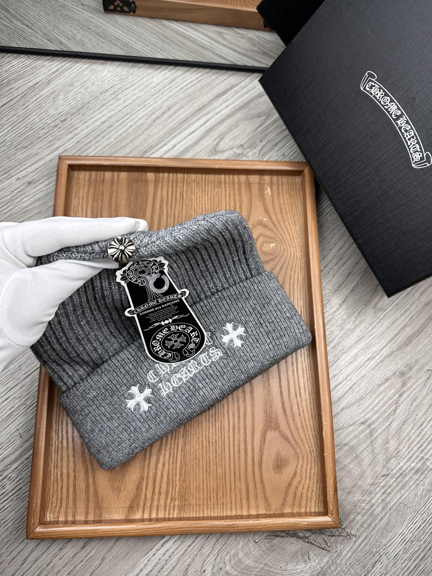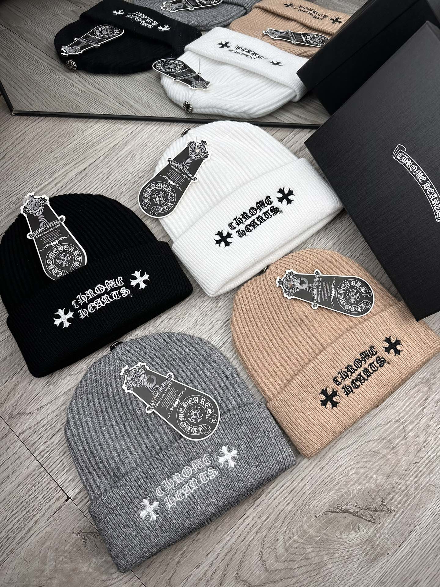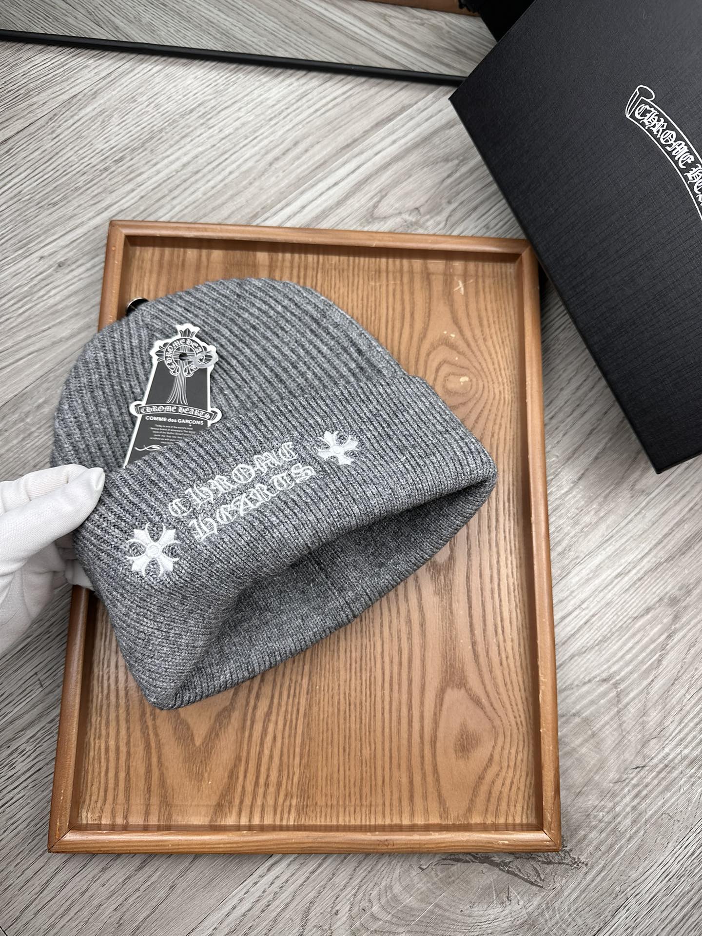 这款帽子是AAAAA 1:1 质量 (非常棒). 使用了和原版一模一样的材料. 商标部分也保持了和克罗心/Chrome Hearts一样. 图片拍摄是实物帽子拍摄, 您所收到的实物保证和我们图片一模一样.