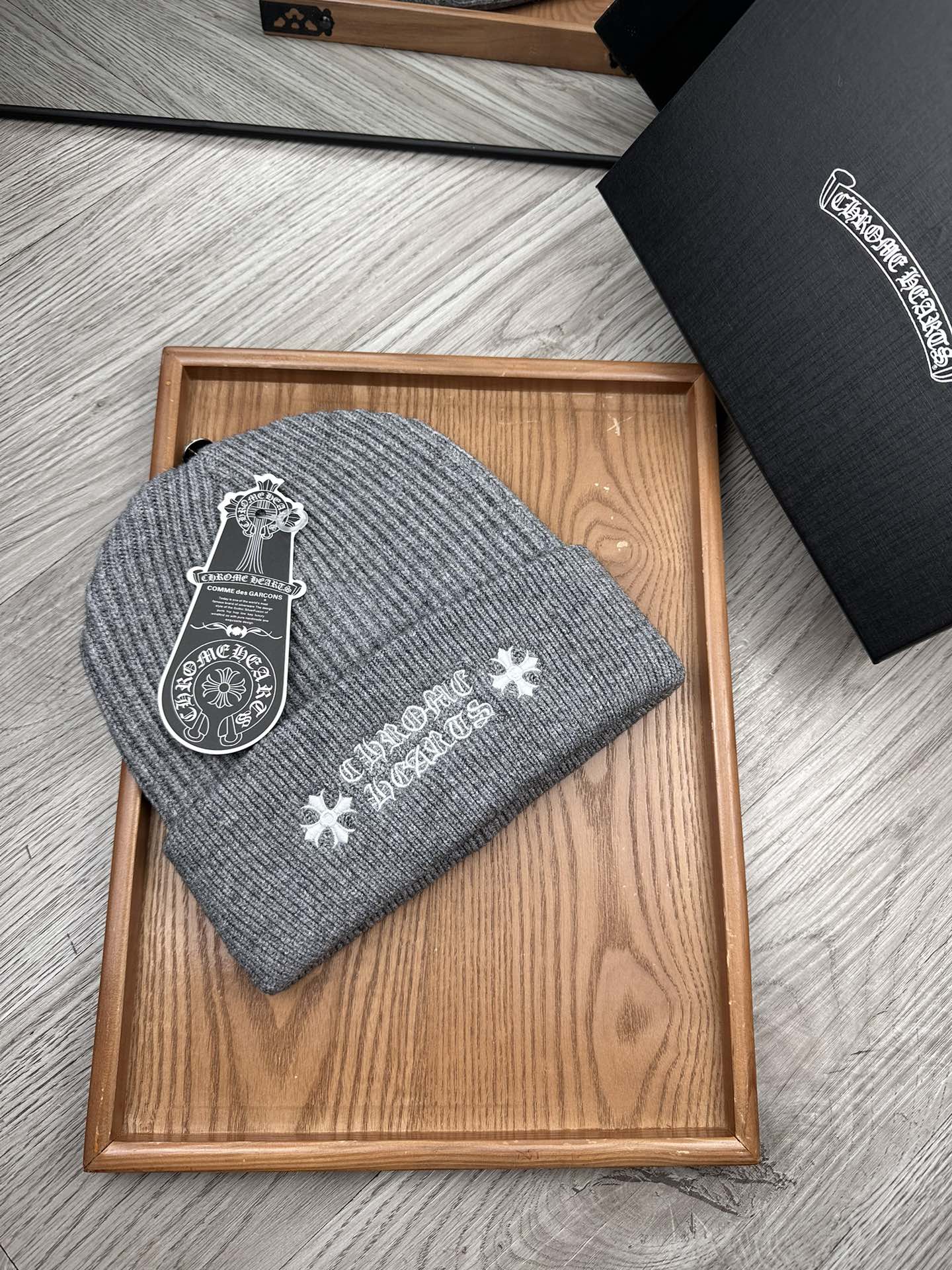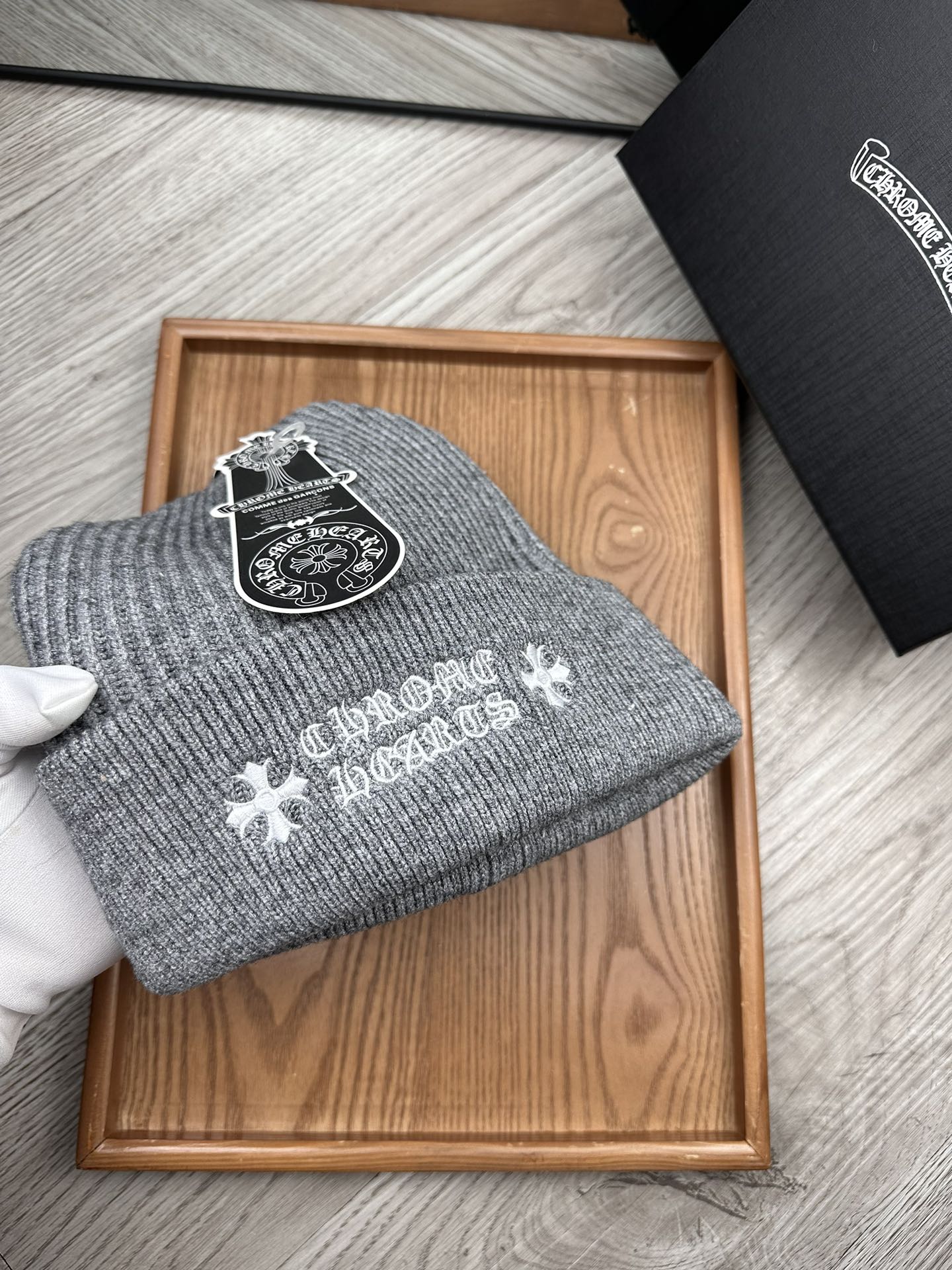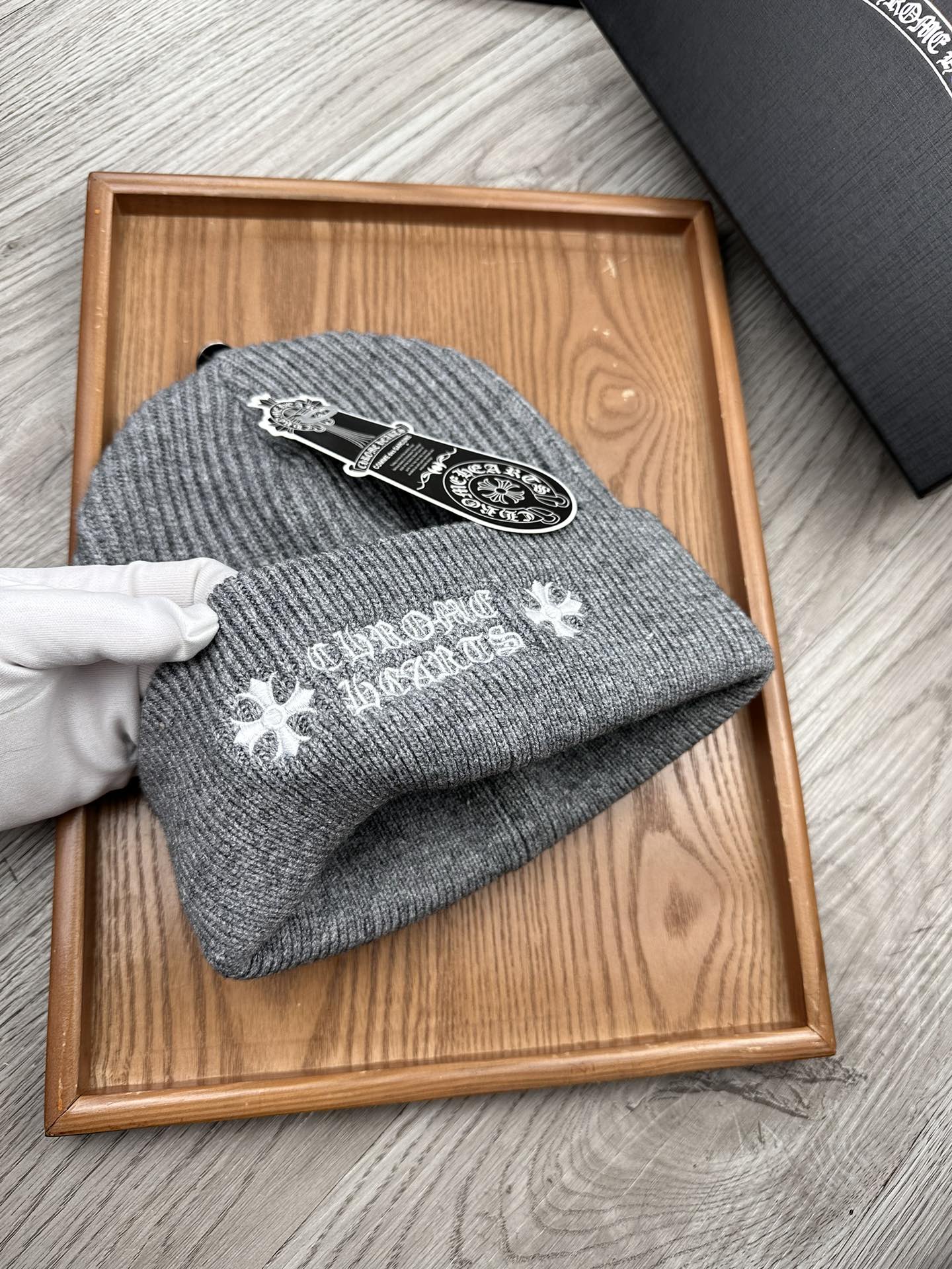 这款帽子是AAAAA 1:1 质量 (非常棒). 使用了和原版一模一样的材料. 商标部分也保持了和克罗心/Chrome Hearts一样. 图片拍摄是实物帽子拍摄, 您所收到的实物保证和我们图片一模一样.