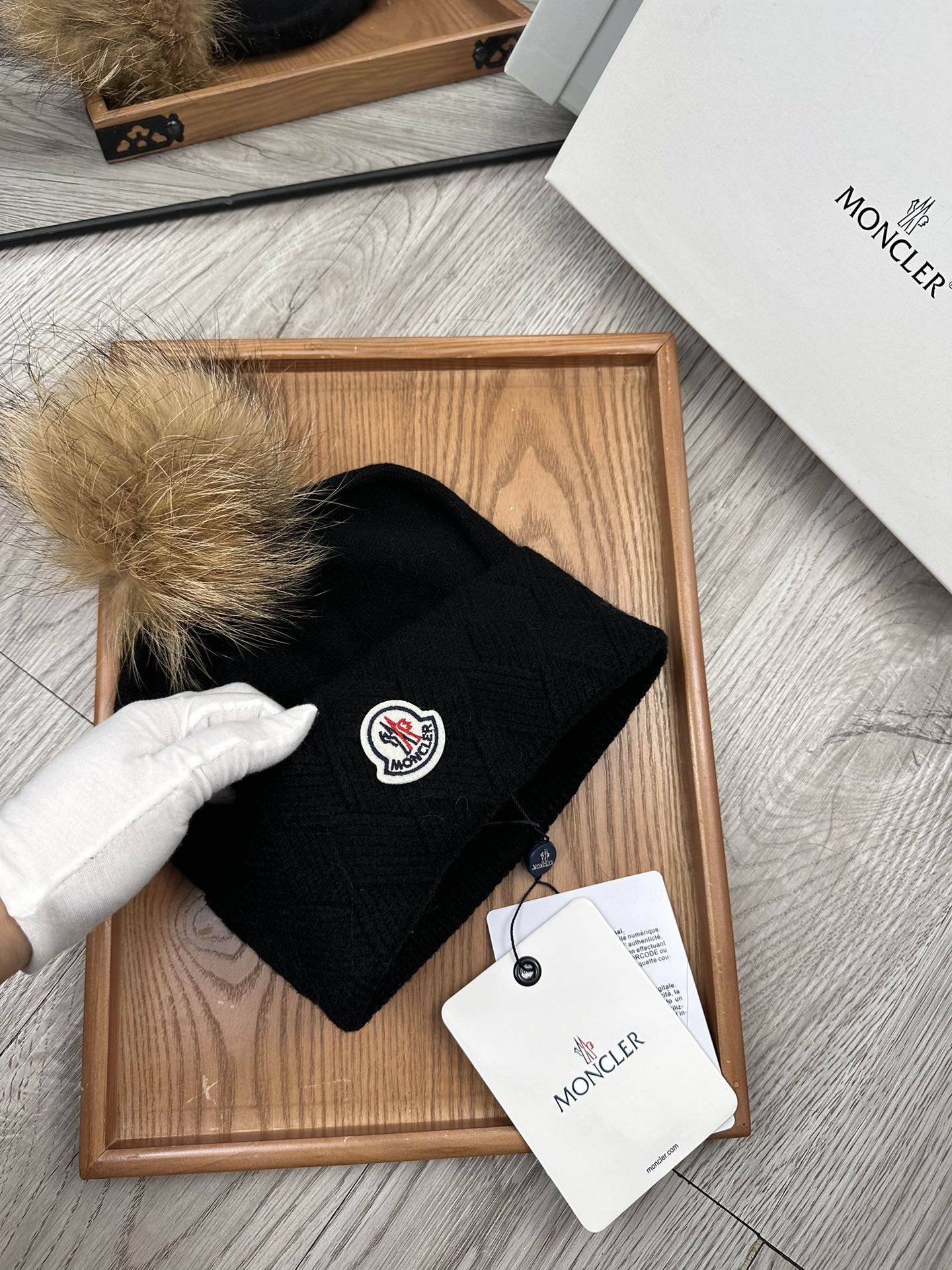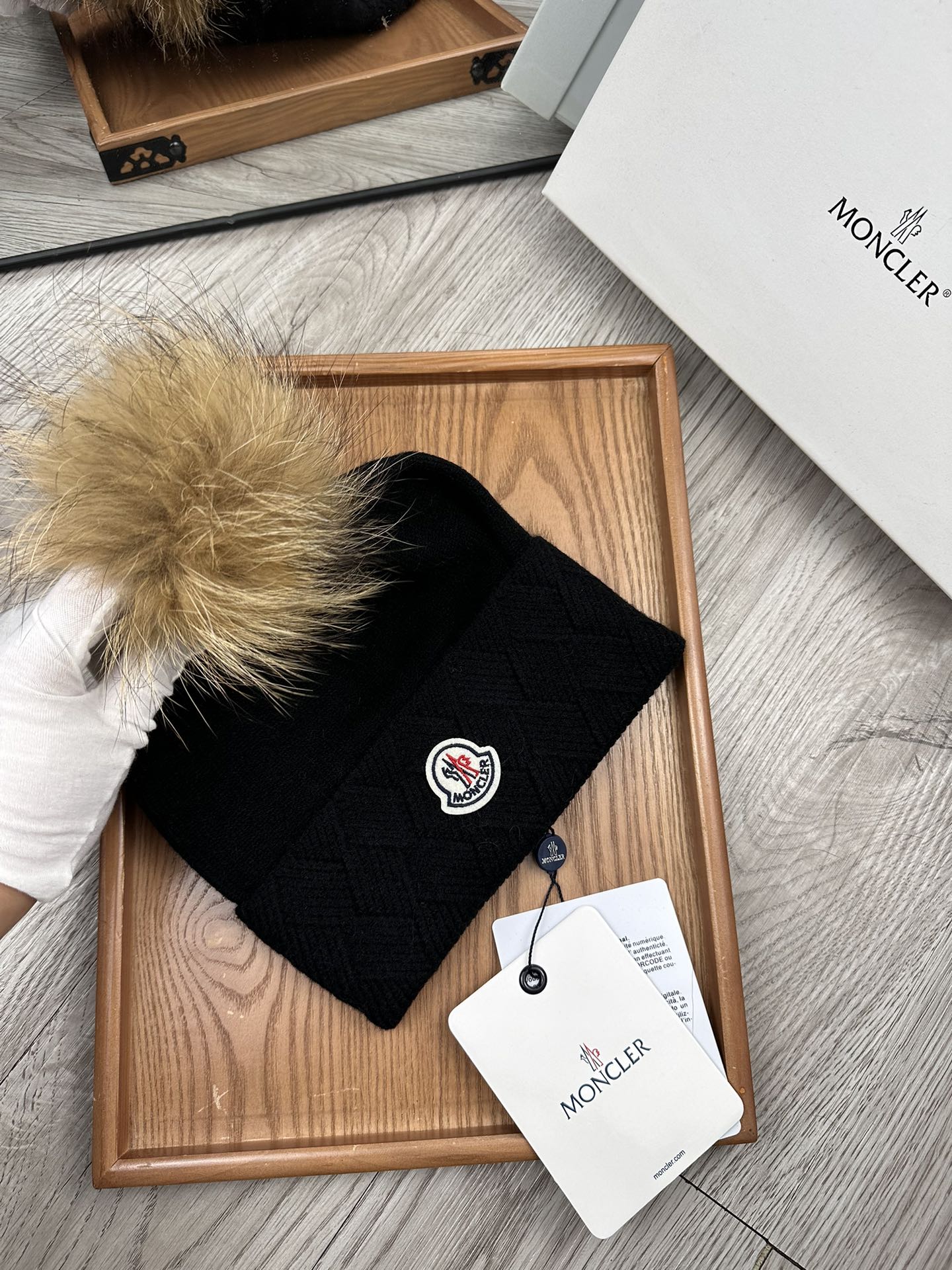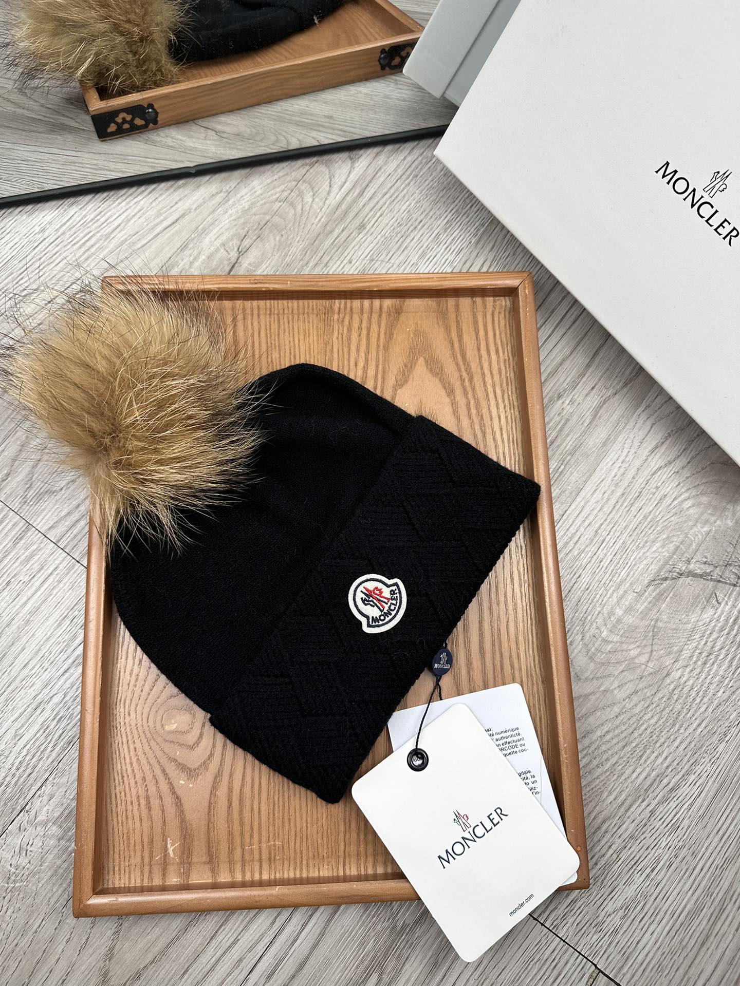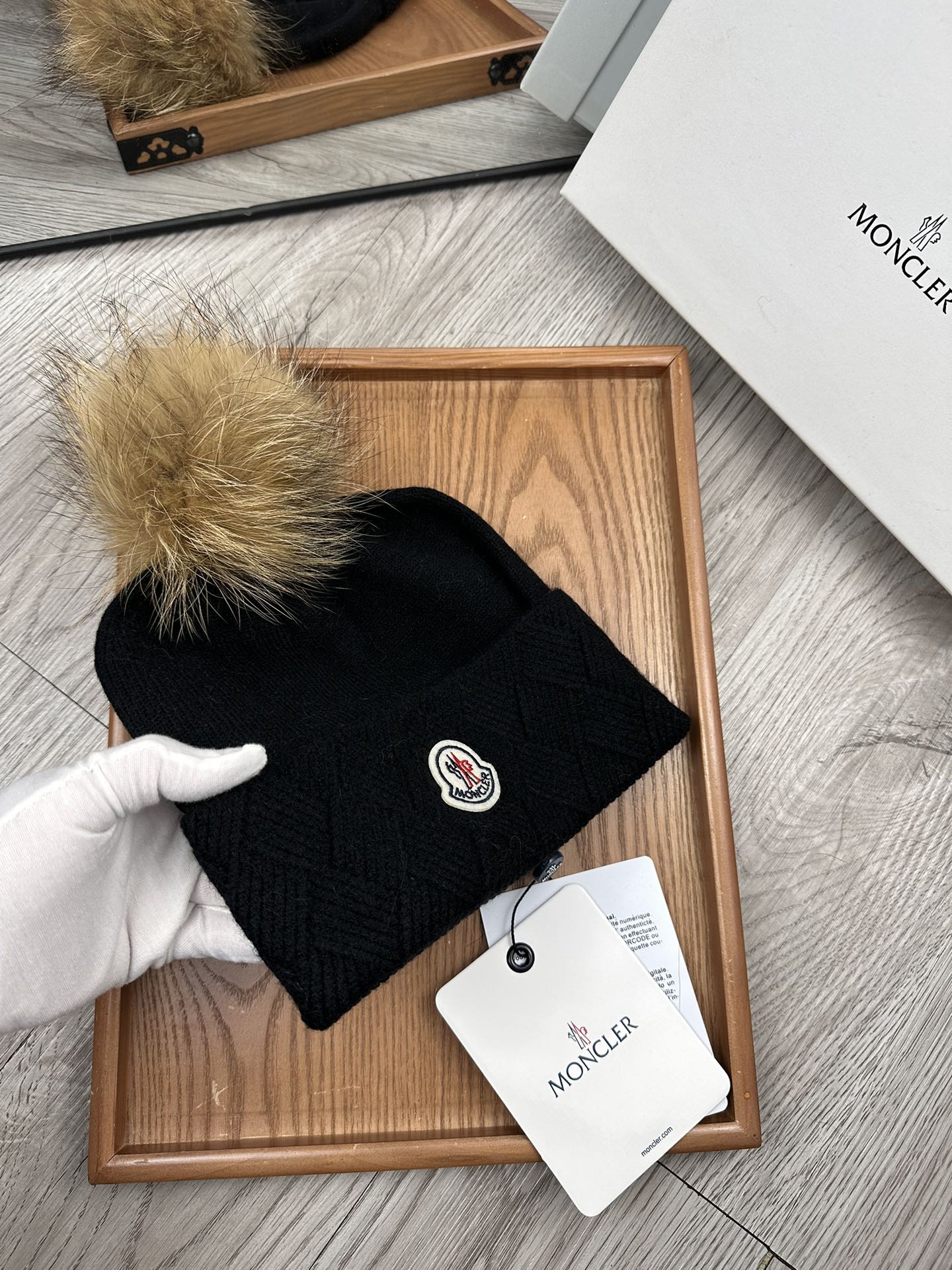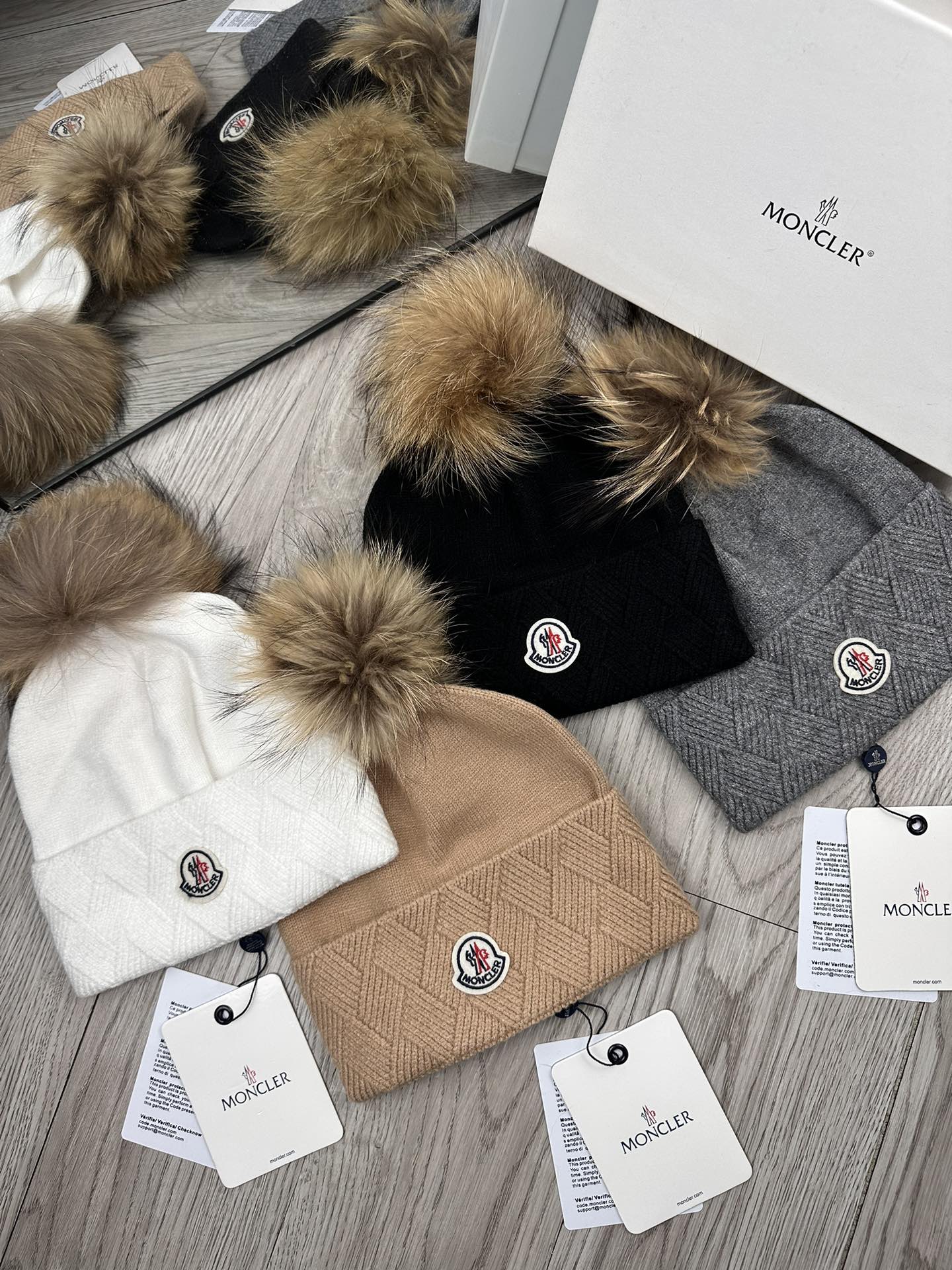 这款帽子是AAAAA 1:1 质量 (非常棒). 使用了和原版一模一样的材料. 商标部分也保持了和盟可睐/moncler一样. 图片拍摄是实物帽子拍摄, 您所收到的实物保证和我们图片一模一样.