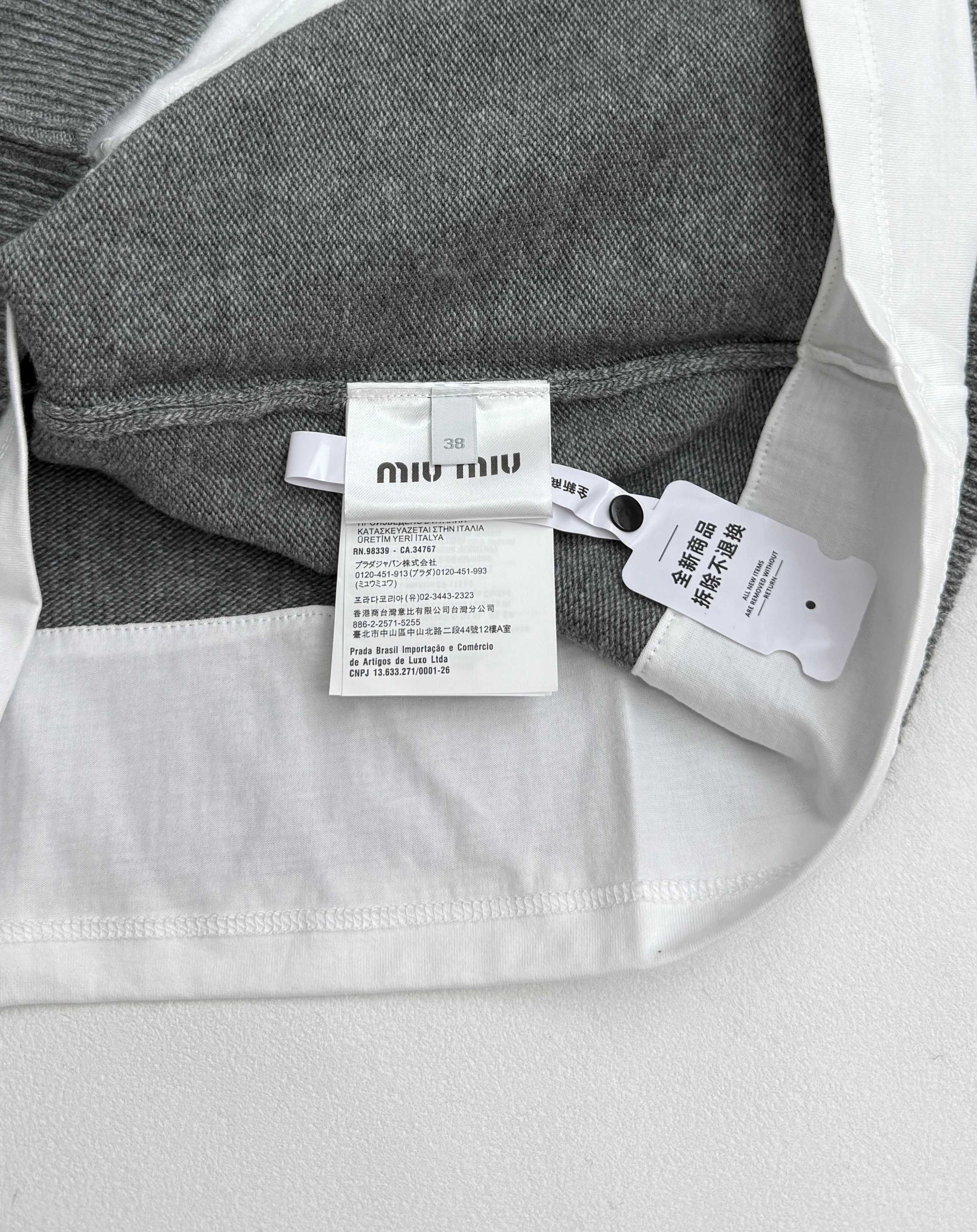 这款衣服是AAAAA 1:1 质量 (非常棒). 使用了和原版一模一样的材料. 商标部分也保持了和缪缪/Miu Miu一样. 图片拍摄是实物衣服拍摄, 您所收到的实物保证和我们图片一模一样.