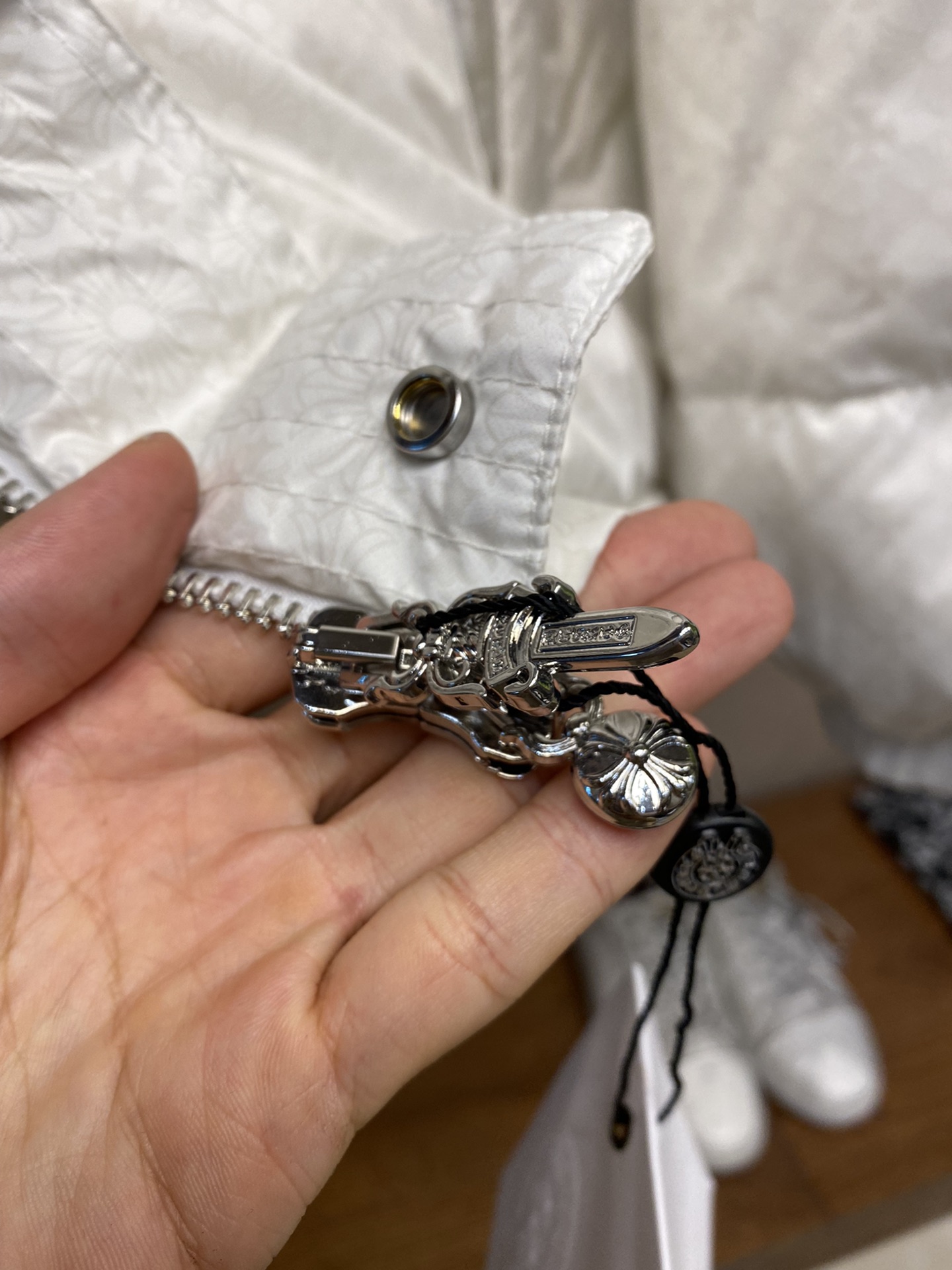 这款衣服是AAAAA 1:1 质量 (非常棒). 使用了和原版一模一样的材料. 商标部分也保持了和克罗心/Chrome Hearts一样. 图片拍摄是实物衣服拍摄, 您所收到的实物保证和我们图片一模一样.
