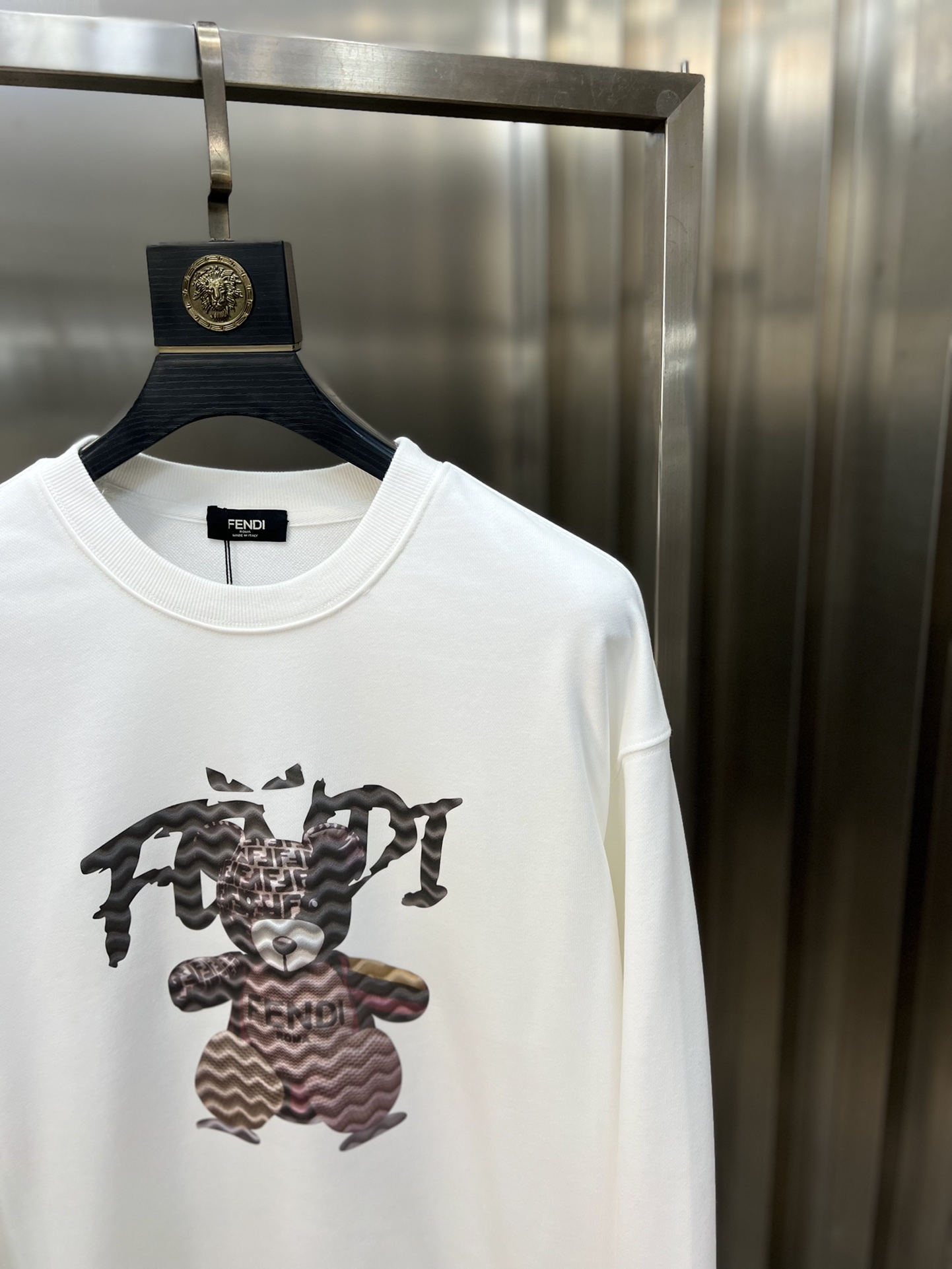 这款衣服是AAAAA 1:1 质量 (非常棒). 使用了和原版一模一样的材料. 商标部分也保持了和芬迪/Fendi一样. 图片拍摄是实物衣服拍摄, 您所收到的实物保证和我们图片一模一样.