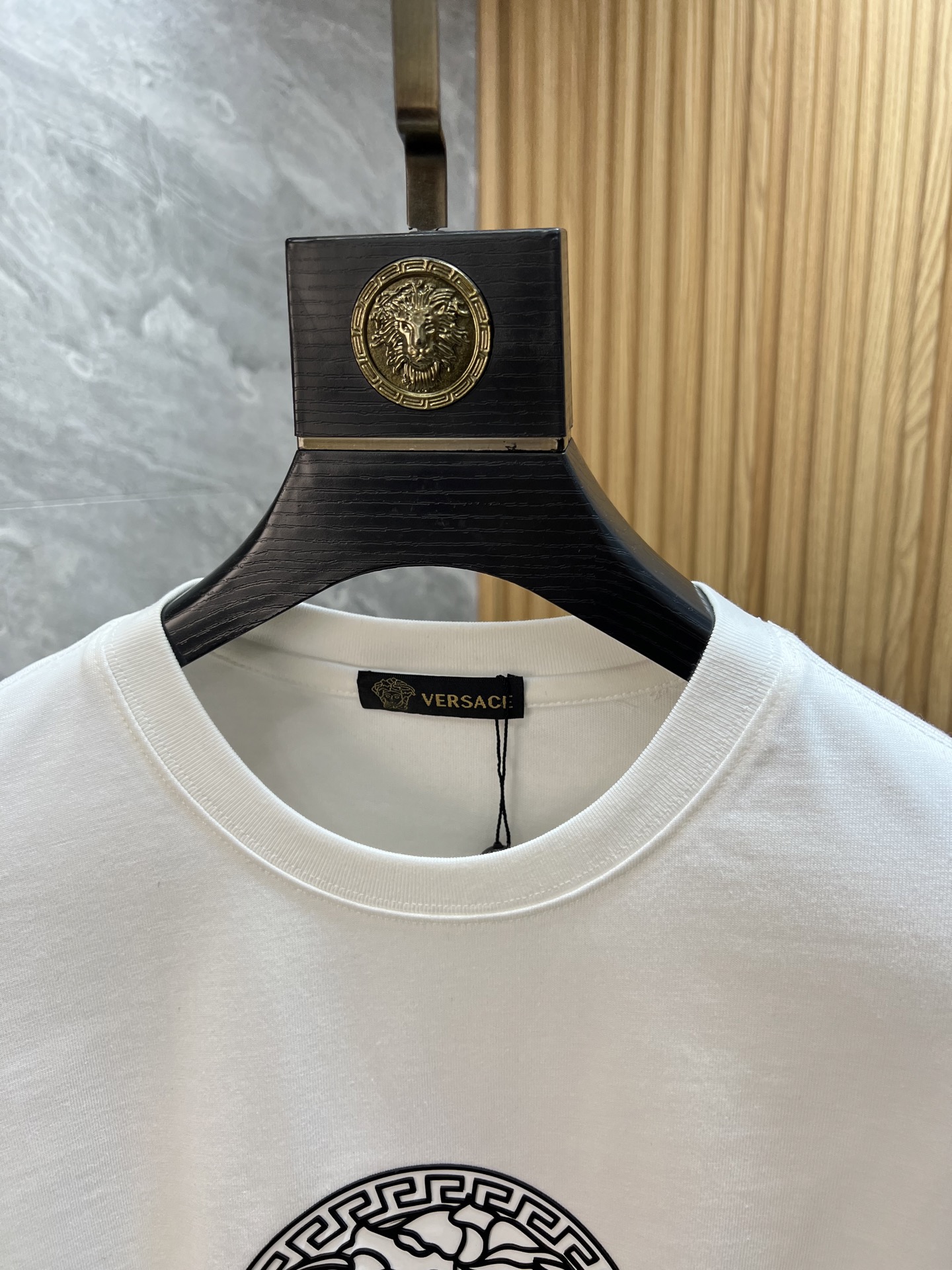 这款衣服是AAAAA 1:1 质量 (非常棒). 使用了和原版一模一样的材料. 商标部分也保持了和范思哲/Versace一样. 图片拍摄是实物衣服拍摄, 您所收到的实物保证和我们图片一模一样.