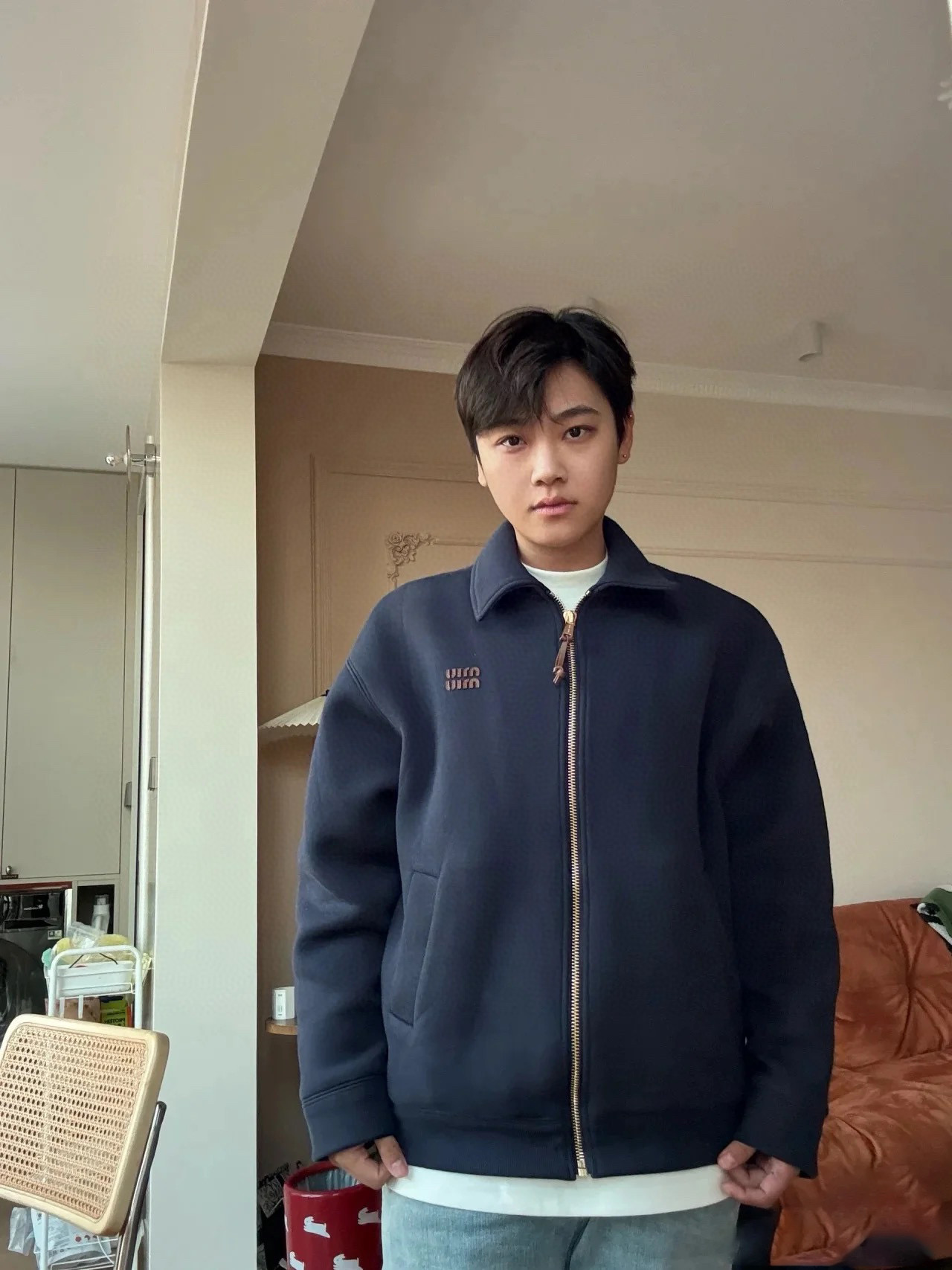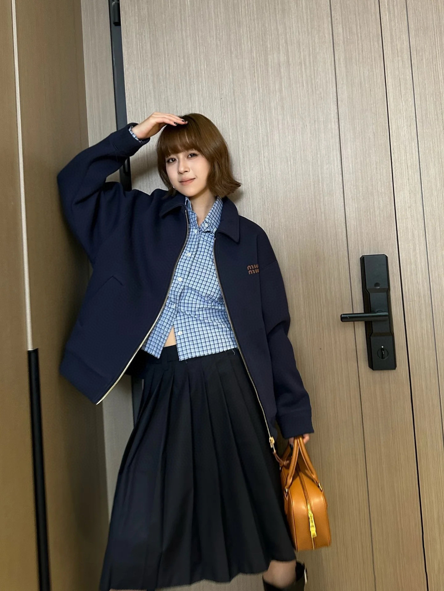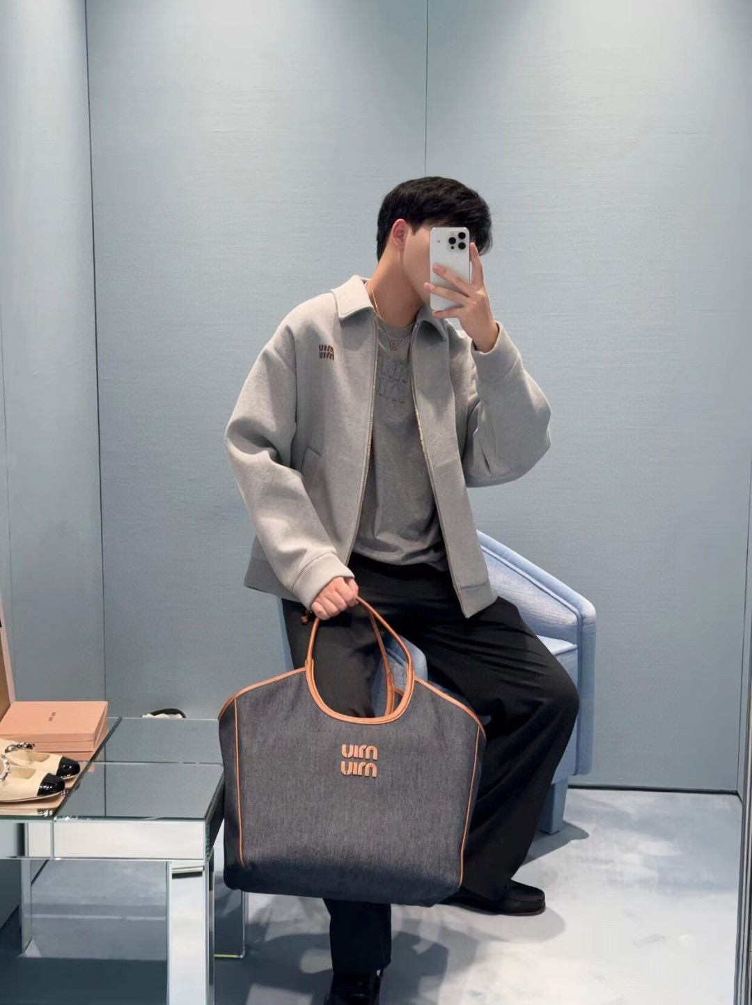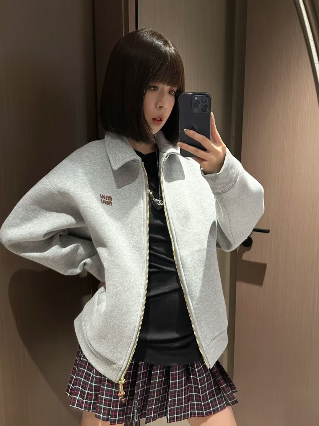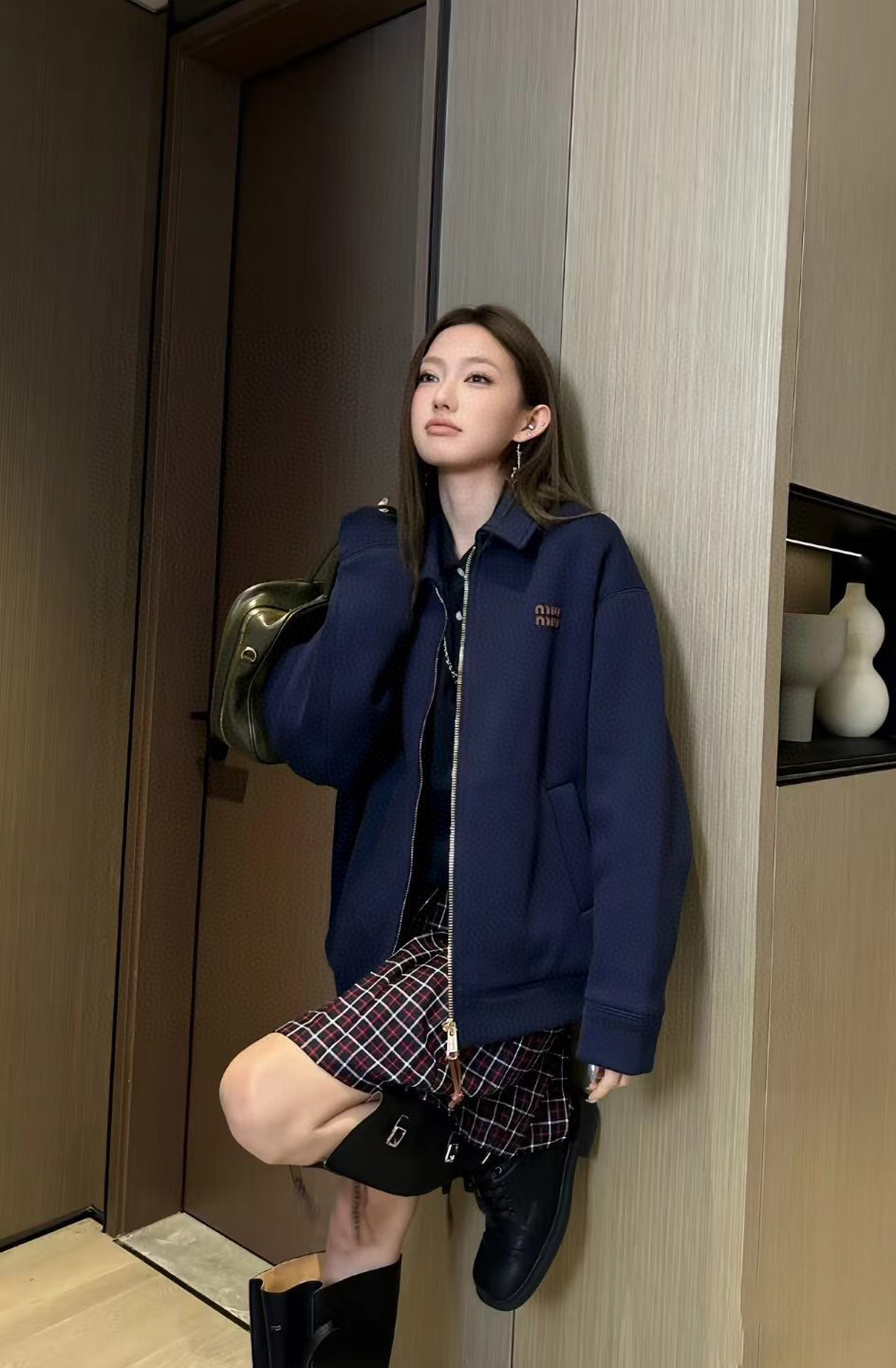这款衣服是AAAAA 1:1 质量 (非常棒). 使用了和原版一模一样的材料. 商标部分也保持了和缪缪/Miu Miu一样. 图片拍摄是实物衣服拍摄, 您所收到的实物保证和我们图片一模一样.