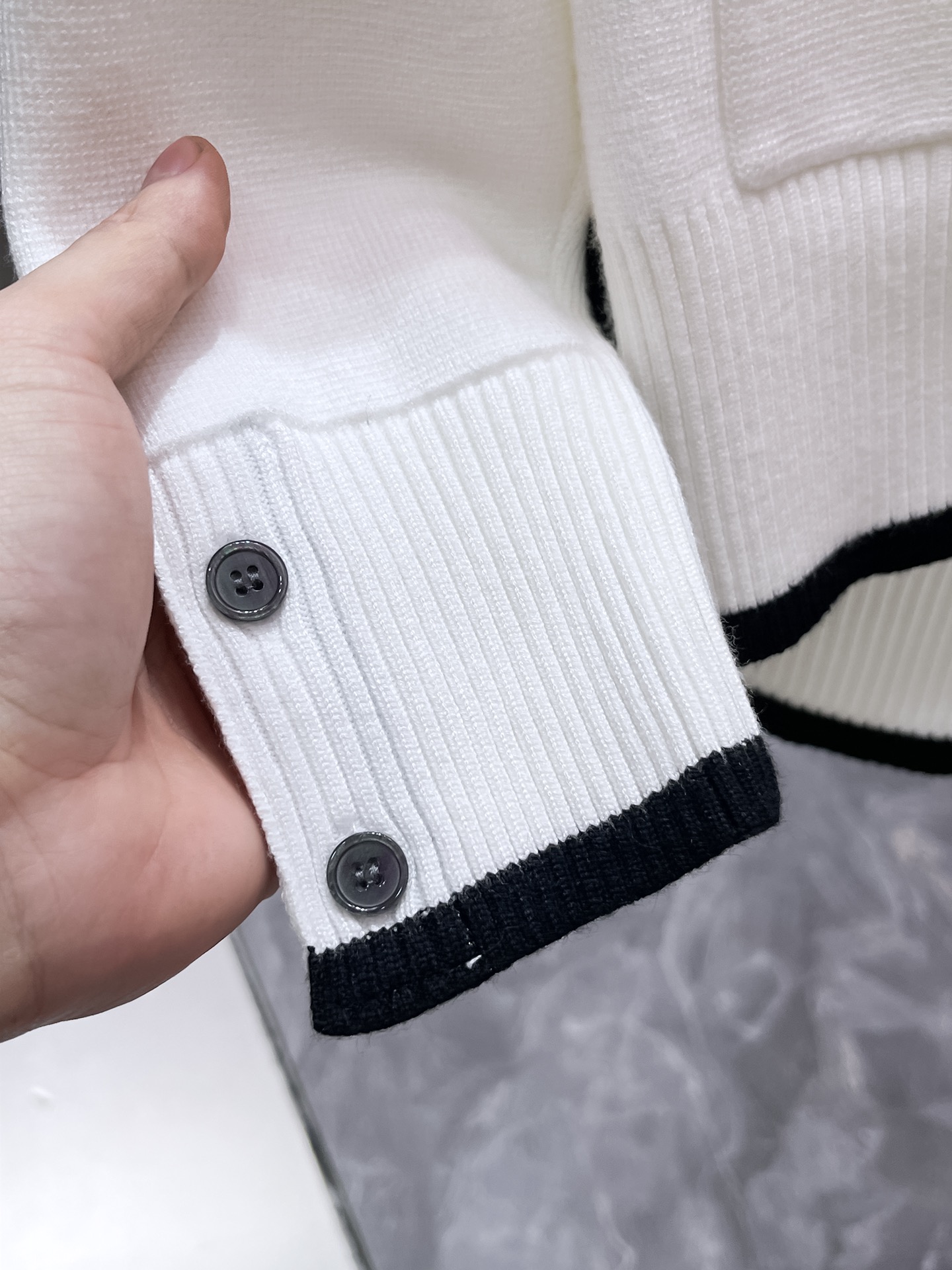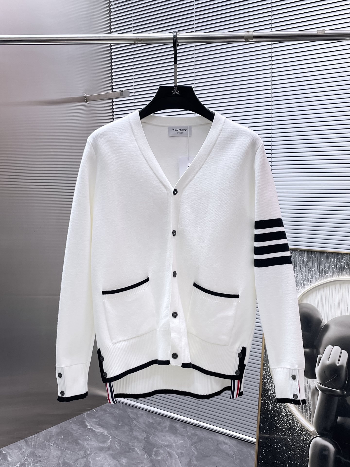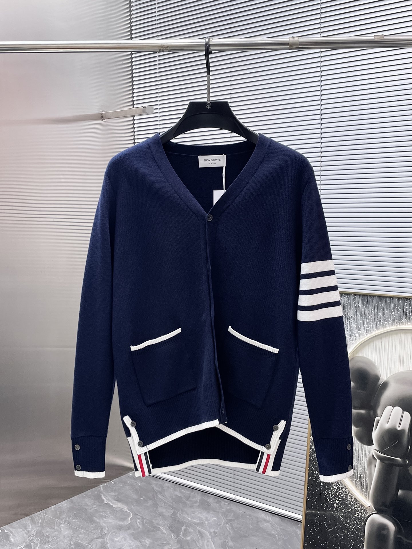 这款衣服是AAAAA 1:1 质量 (非常棒). 使用了和原版一模一样的材料. 商标部分也保持了和汤姆布朗/Thom Browne一样. 图片拍摄是实物衣服拍摄, 您所收到的实物保证和我们图片一模一样.