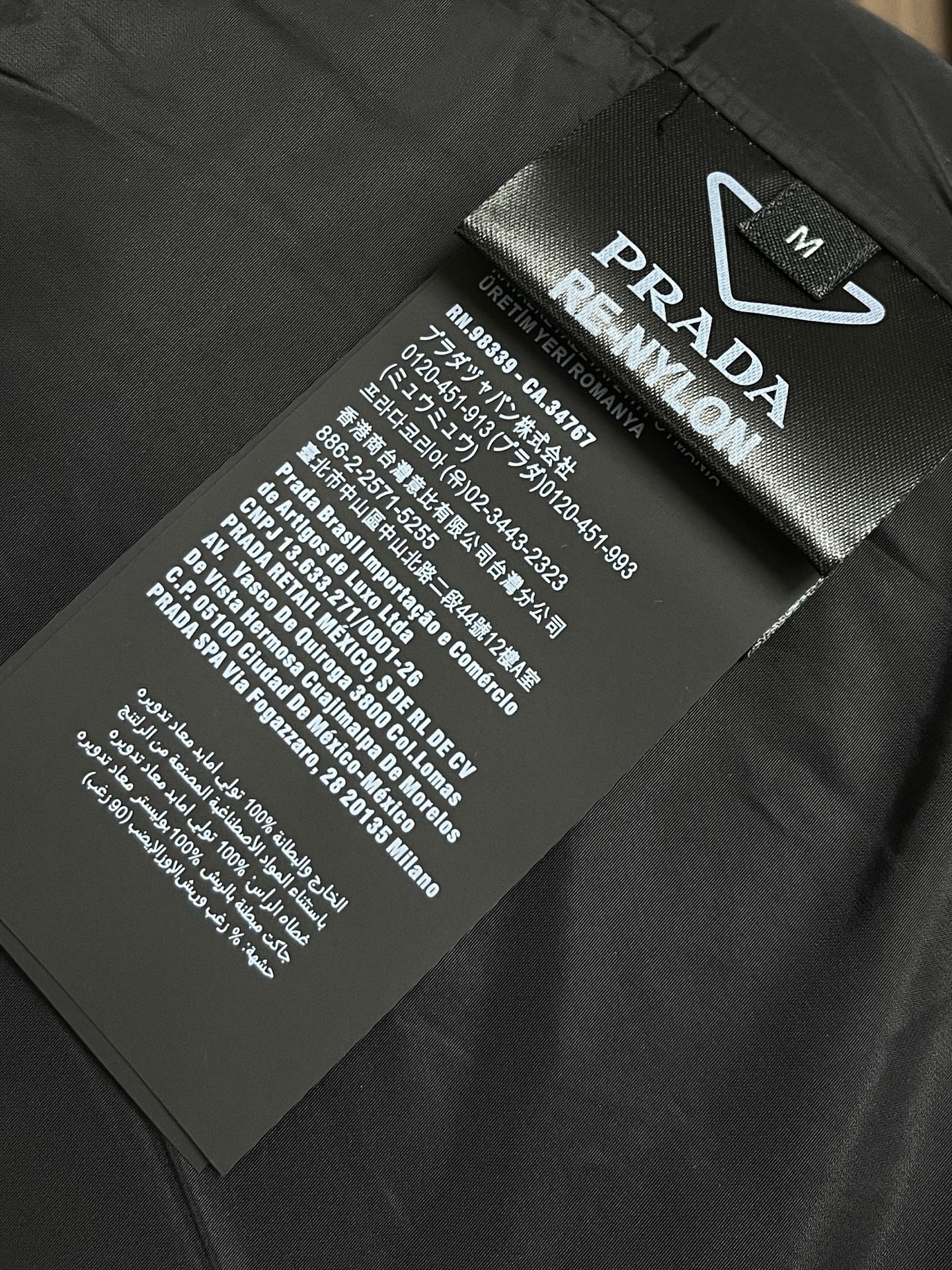 这款衣服是AAAAA 1:1 质量 (非常棒). 使用了和原版一模一样的材料. 商标部分也保持了和普拉达/Prada一样. 图片拍摄是实物衣服拍摄, 您所收到的实物保证和我们图片一模一样.