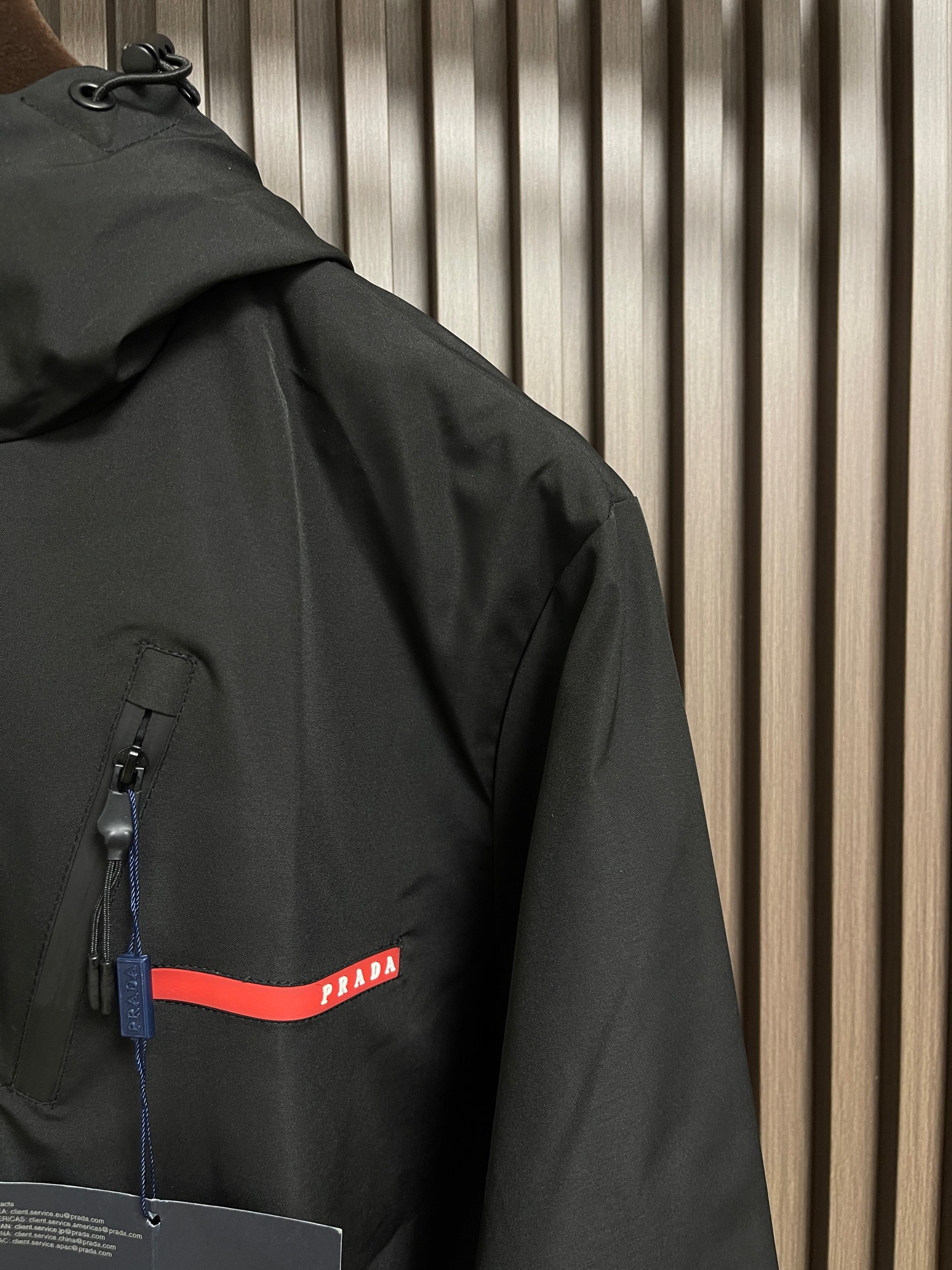 这款衣服是AAAAA 1:1 质量 (非常棒). 使用了和原版一模一样的材料. 商标部分也保持了和普拉达/Prada一样. 图片拍摄是实物衣服拍摄, 您所收到的实物保证和我们图片一模一样.