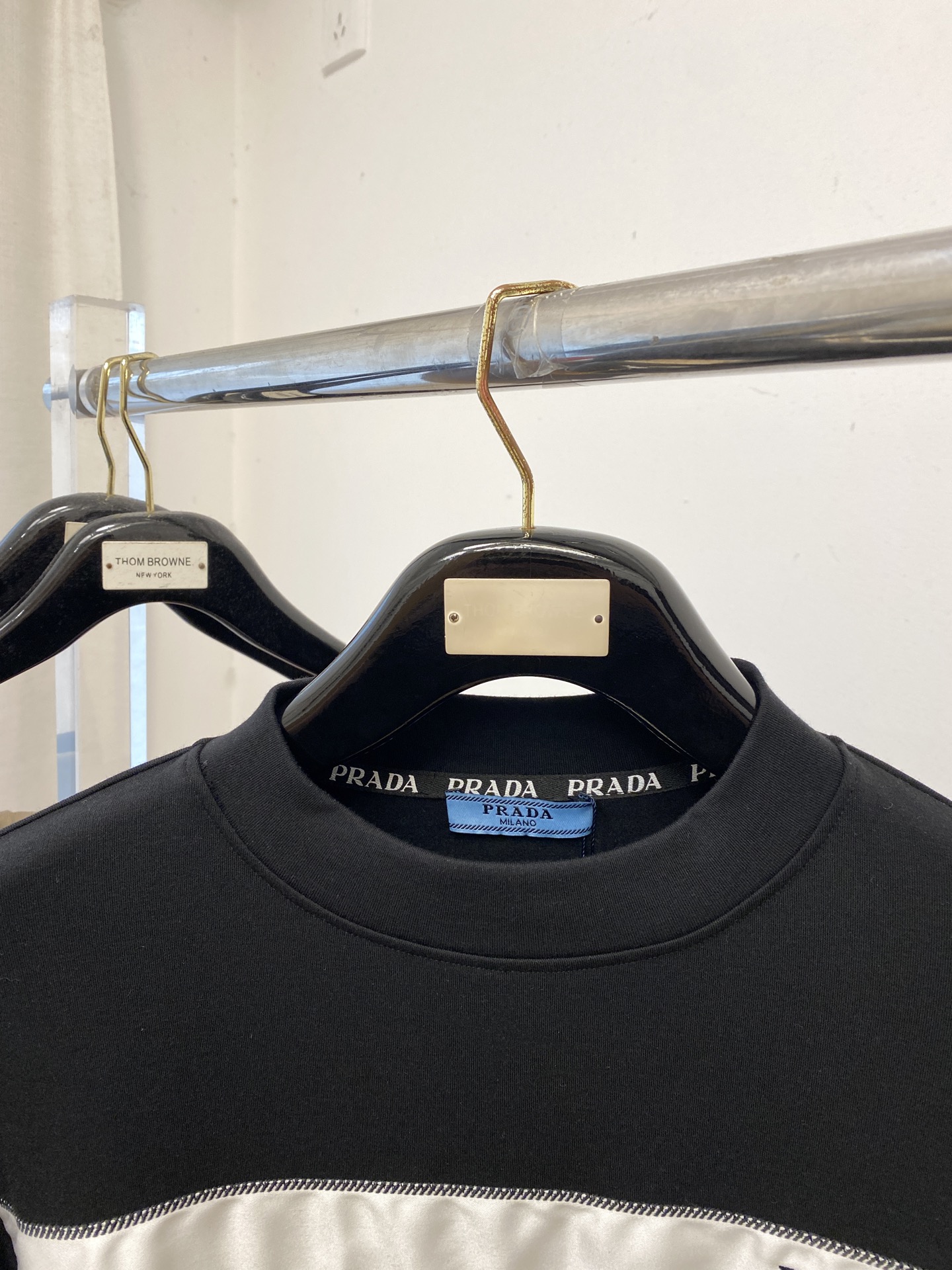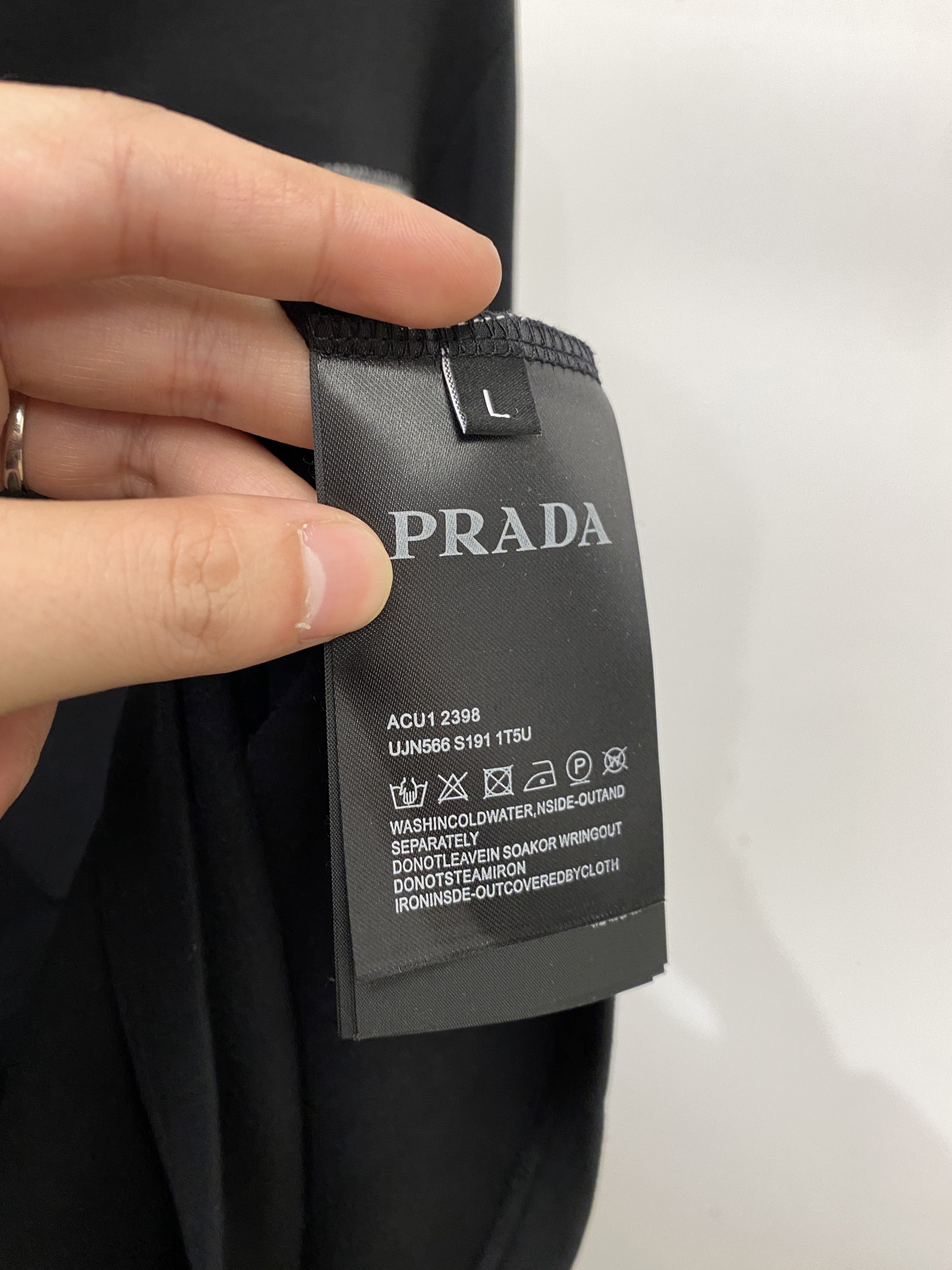 这款衣服是AAAAA 1:1 质量 (非常棒). 使用了和原版一模一样的材料. 商标部分也保持了和普拉达/Prada一样. 图片拍摄是实物衣服拍摄, 您所收到的实物保证和我们图片一模一样.