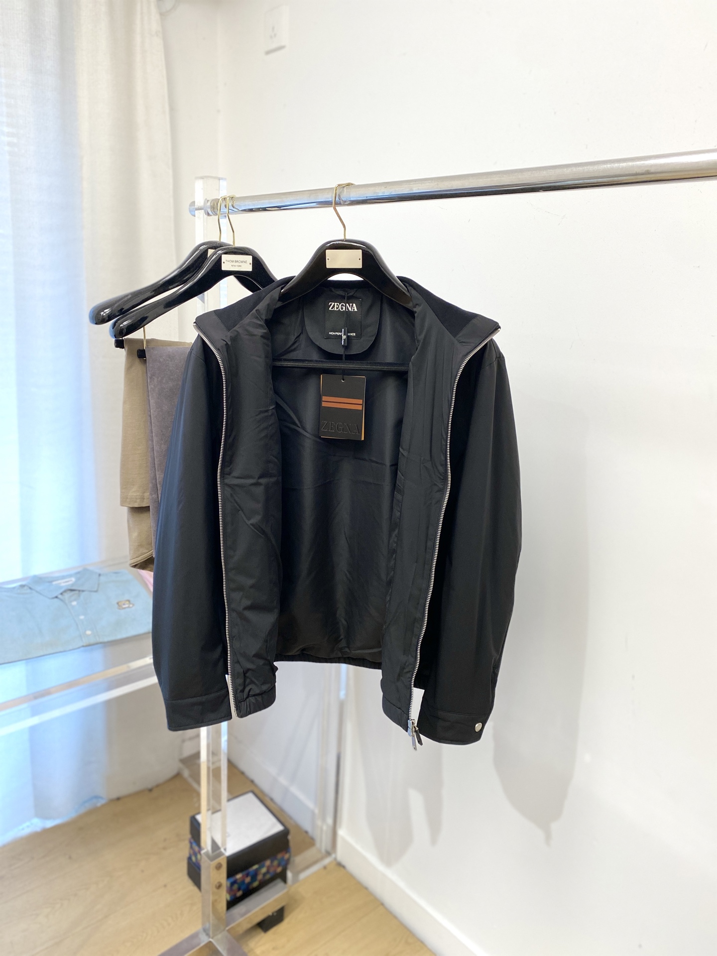 这款衣服是AAAAA 1:1 质量 (非常棒). 使用了和原版一模一样的材料. 商标部分也保持了和杰尼亚/Zegna一样. 图片拍摄是实物衣服拍摄, 您所收到的实物保证和我们图片一模一样.