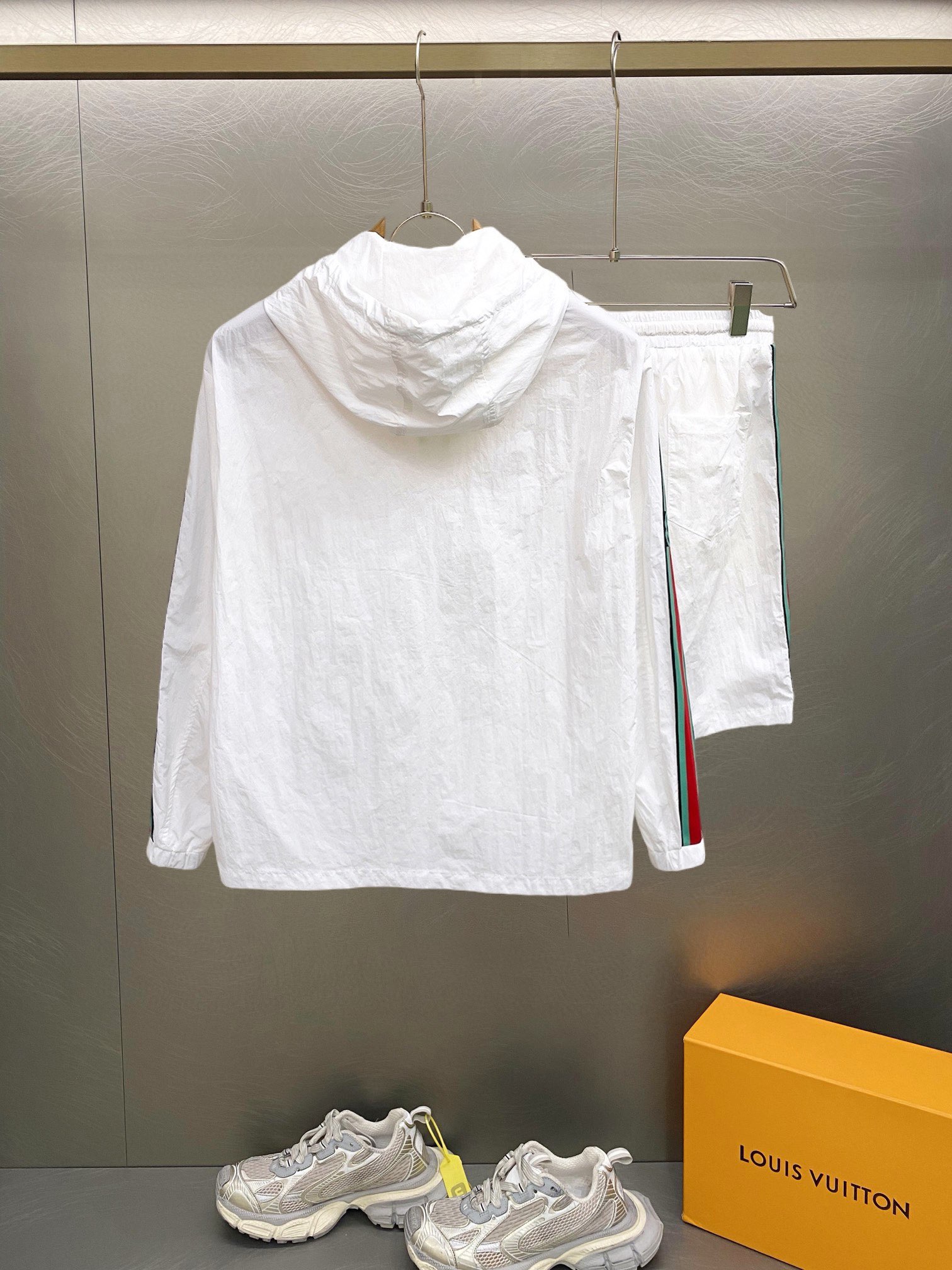 这款衣服是AAAAA 1:1 质量 (非常棒). 使用了和原版一模一样的材料. 商标部分也保持了和古奇/Gucci一样. 图片拍摄是实物衣服拍摄, 您所收到的实物保证和我们图片一模一样.
