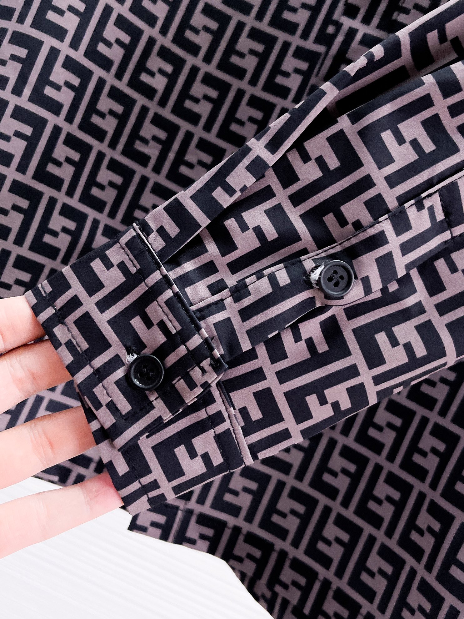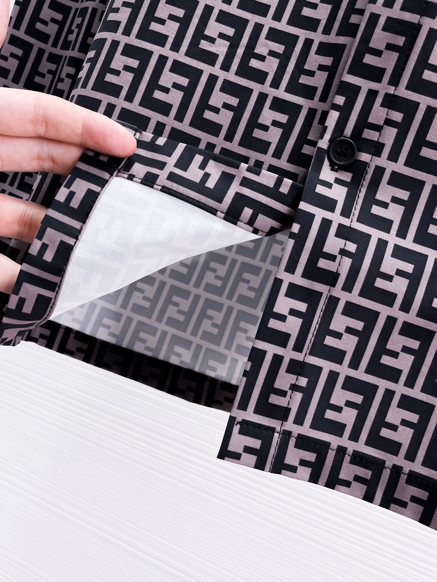 这款衣服是AAAAA 1:1 质量 (非常棒). 使用了和原版一模一样的材料. 商标部分也保持了和芬迪/Fendi一样. 图片拍摄是实物衣服拍摄, 您所收到的实物保证和我们图片一模一样.