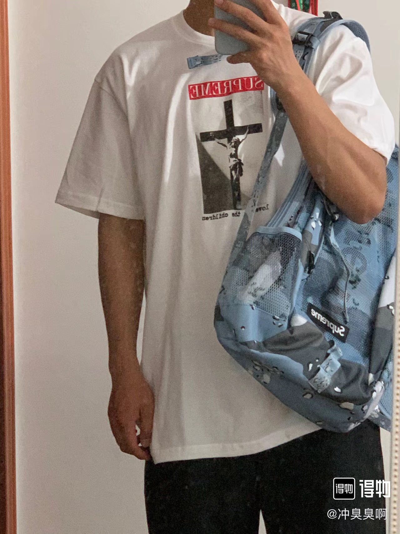 这款衣服是AAAAA 1:1 质量 (非常棒). 使用了和原版一模一样的材料. 商标部分也保持了和Superme一样. 图片拍摄是实物衣服拍摄, 您所收到的实物保证和我们图片一模一样.