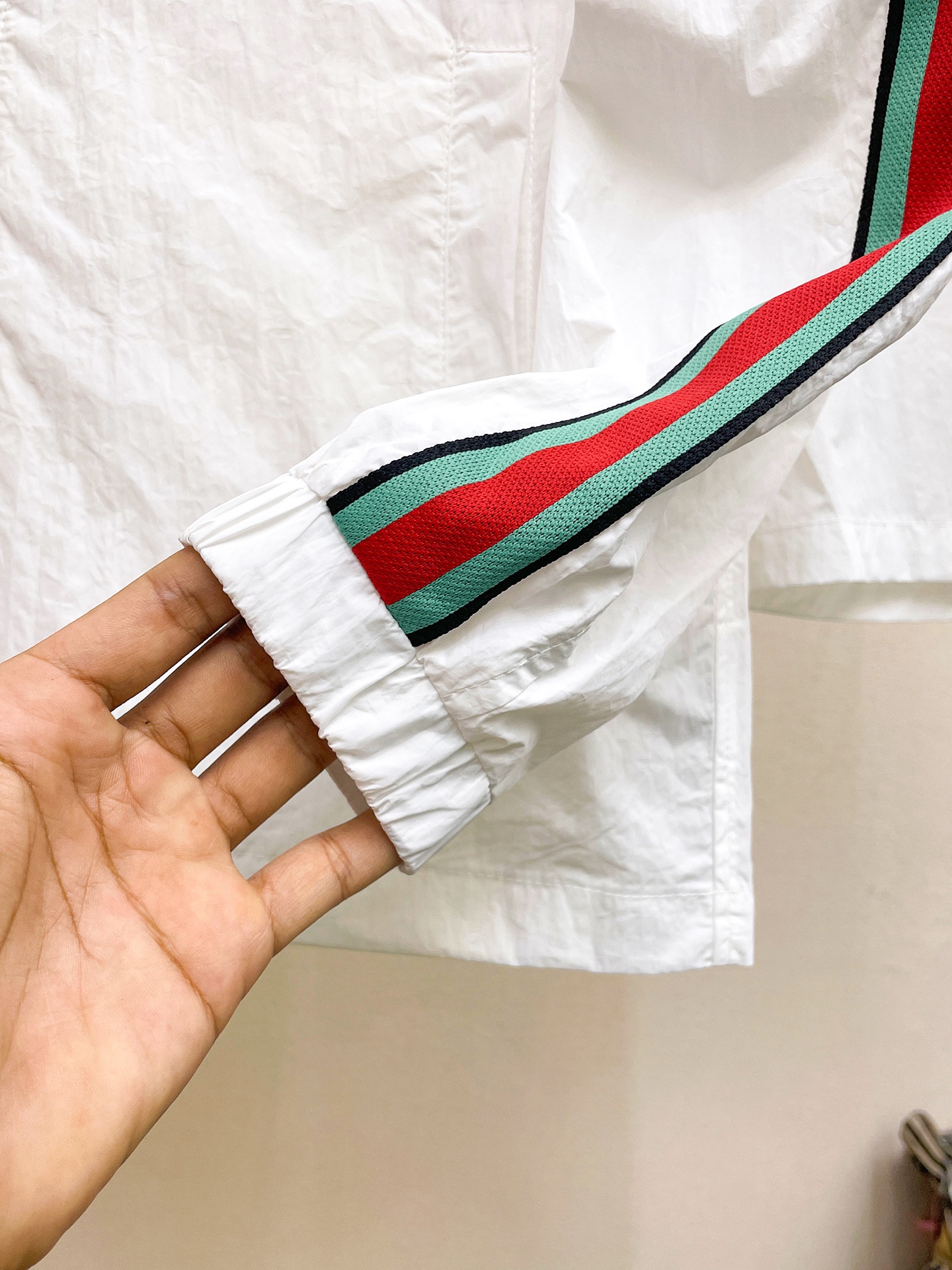 这款衣服是AAAAA 1:1 质量 (非常棒). 使用了和原版一模一样的材料. 商标部分也保持了和古奇/Gucci一样. 图片拍摄是实物衣服拍摄, 您所收到的实物保证和我们图片一模一样.