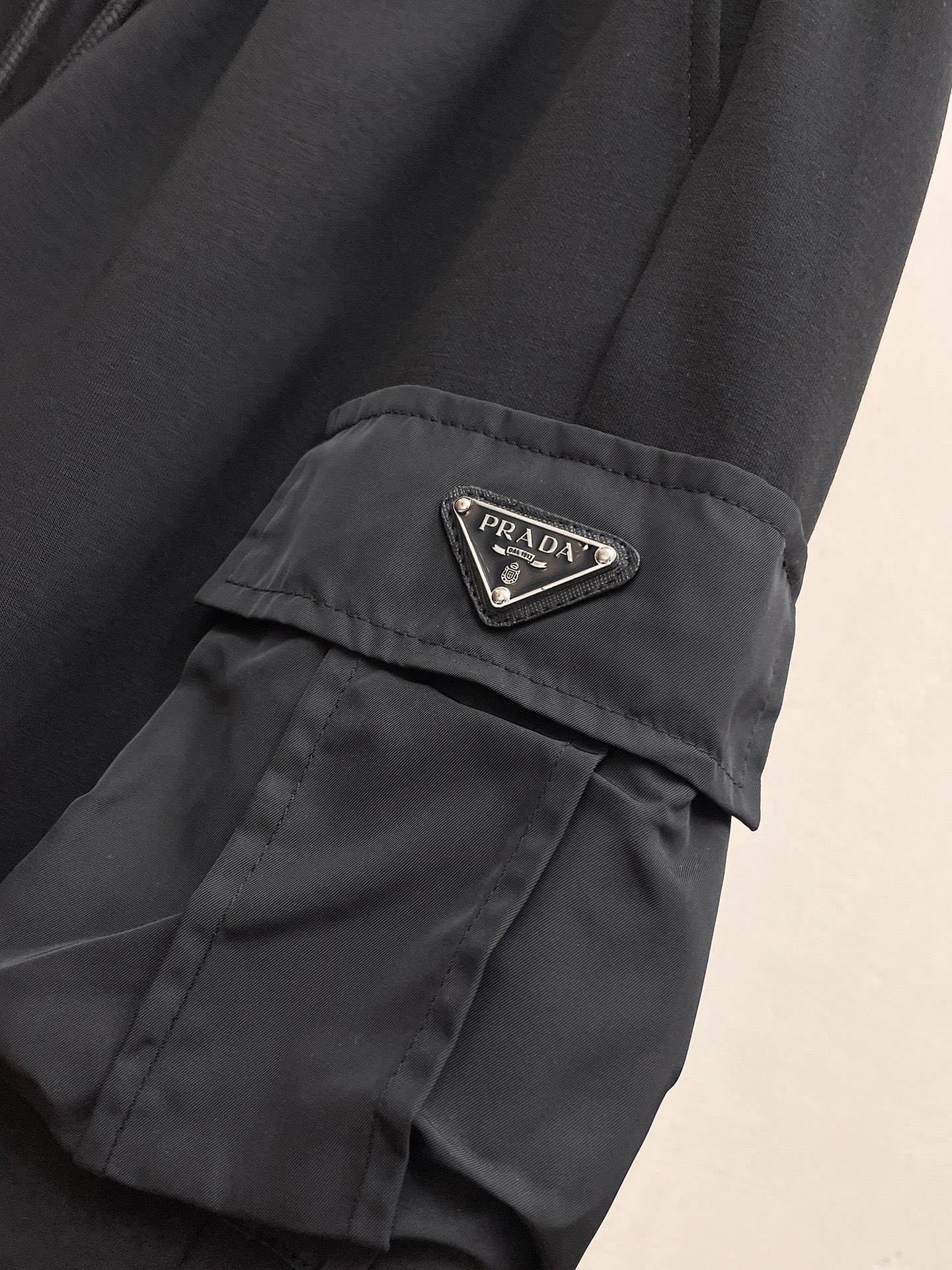 这款衣服是AAAAA 1:1 质量 (非常棒). 使用了和原版一模一样的材料. 商标部分也保持了和普拉达/Prada一样. 图片拍摄是实物衣服拍摄, 您所收到的实物保证和我们图片一模一样.