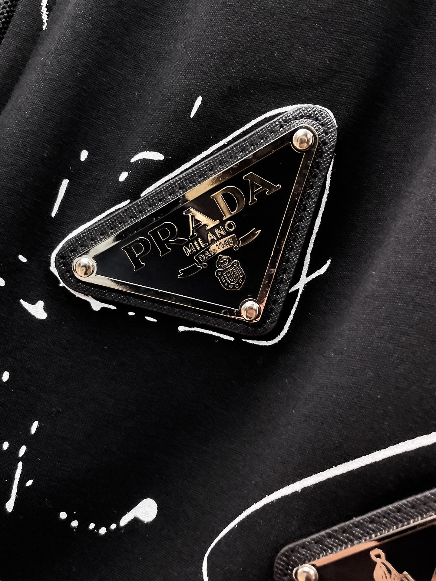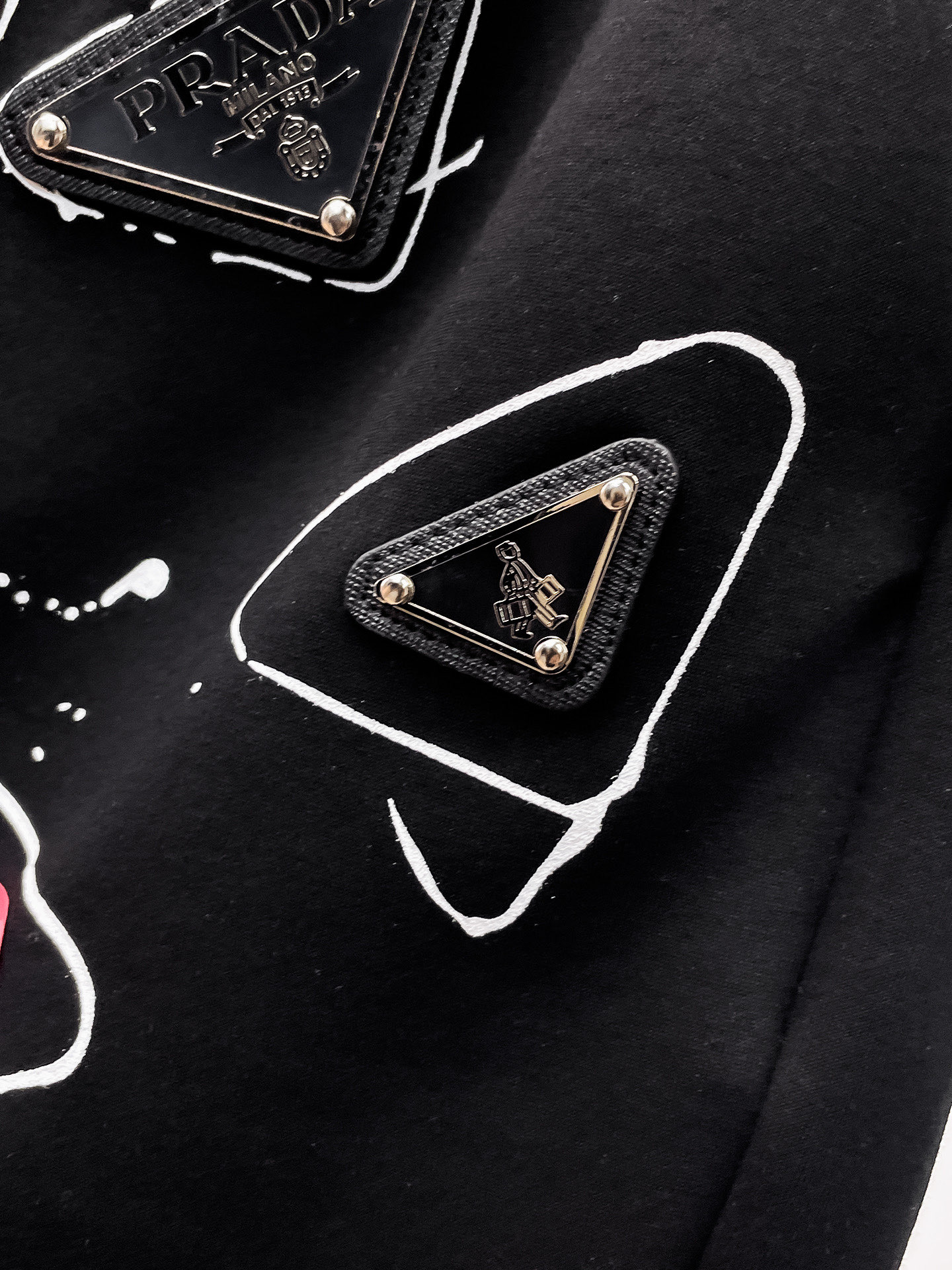 这款衣服是AAAAA 1:1 质量 (非常棒). 使用了和原版一模一样的材料. 商标部分也保持了和普拉达/Prada一样. 图片拍摄是实物衣服拍摄, 您所收到的实物保证和我们图片一模一样.