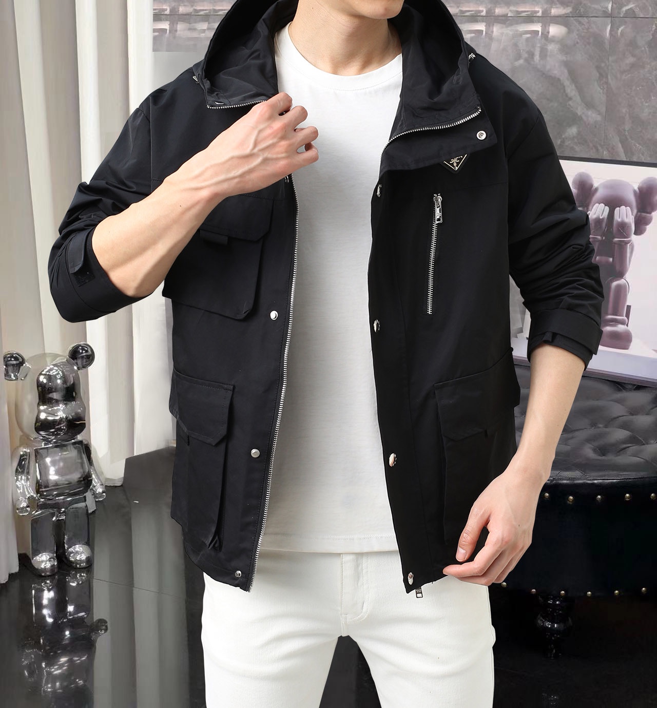 这款衣服是AAAAA 1:1 质量 (非常棒). 使用了和原版一模一样的材料. 商标部分也保持了和普拉达/Prada一样. 图片拍摄是实物衣服拍摄, 您所收到的实物保证和我们图片一模一样.