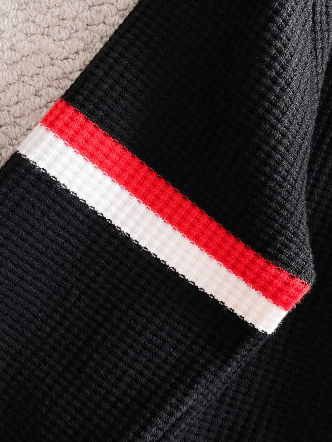 这款衣服是AAAAA 1:1 质量 (非常棒). 使用了和原版一模一样的材料. 商标部分也保持了和汤姆布朗/Thom Browne一样. 图片拍摄是实物衣服拍摄, 您所收到的实物保证和我们图片一模一样.