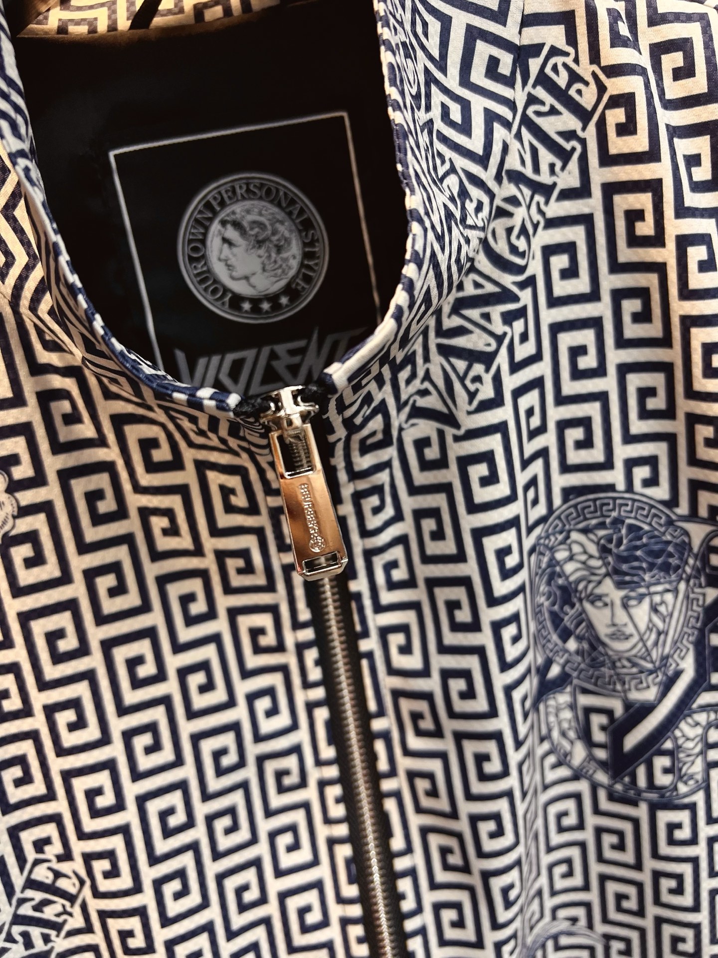 这款衣服是AAAAA 1:1 质量 (非常棒). 使用了和原版一模一样的材料. 商标部分也保持了和范思哲/Versace一样. 图片拍摄是实物衣服拍摄, 您所收到的实物保证和我们图片一模一样.