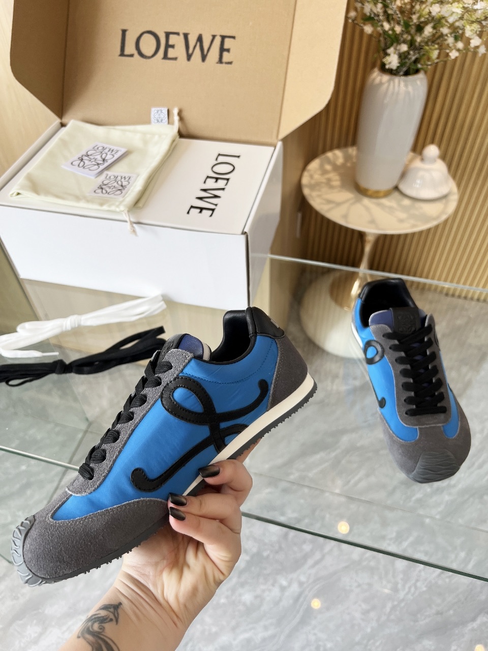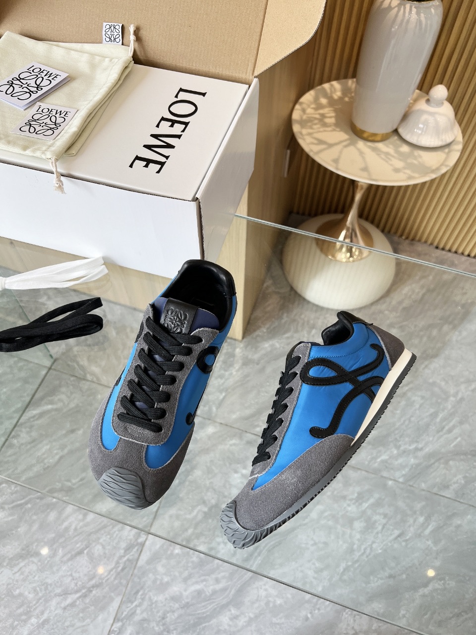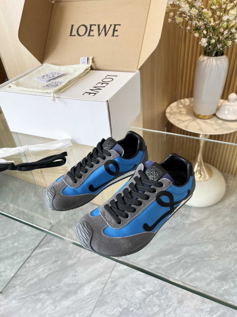 这款鞋子是AAAAA 1:1 质量 (非常棒). 使用了和原版一模一样的材料. 商标部分也保持了和罗意威/Loewe一样. 图片拍摄是实物鞋子拍摄, 您所收到的实物保证和我们图片一模一样.