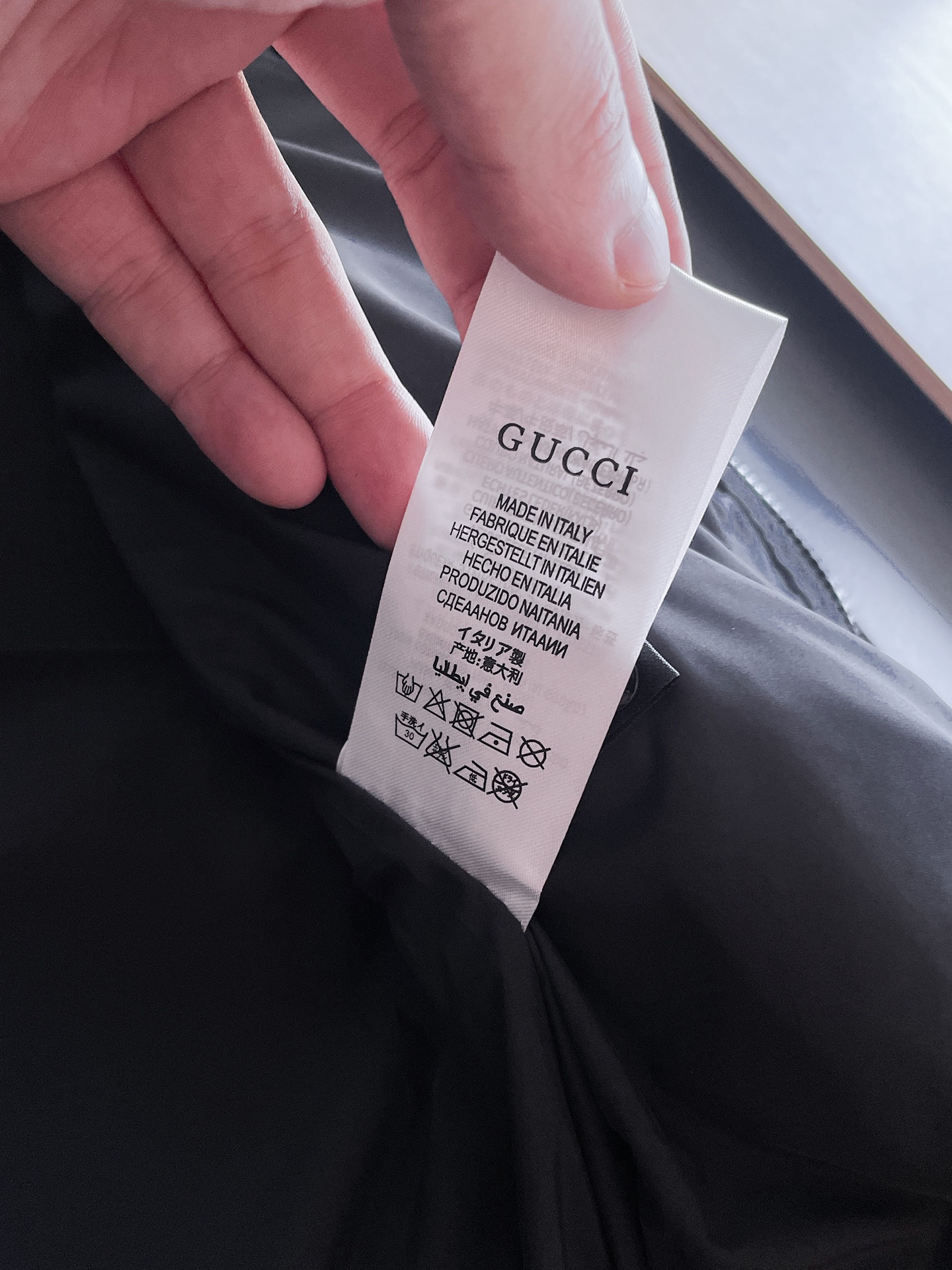 这款衣服是AAAAA 1:1 质量 (非常棒). 使用了和原版一模一样的材料. 商标部分也保持了和古奇/Gucci一样. 图片拍摄是实物衣服拍摄, 您所收到的实物保证和我们图片一模一样.