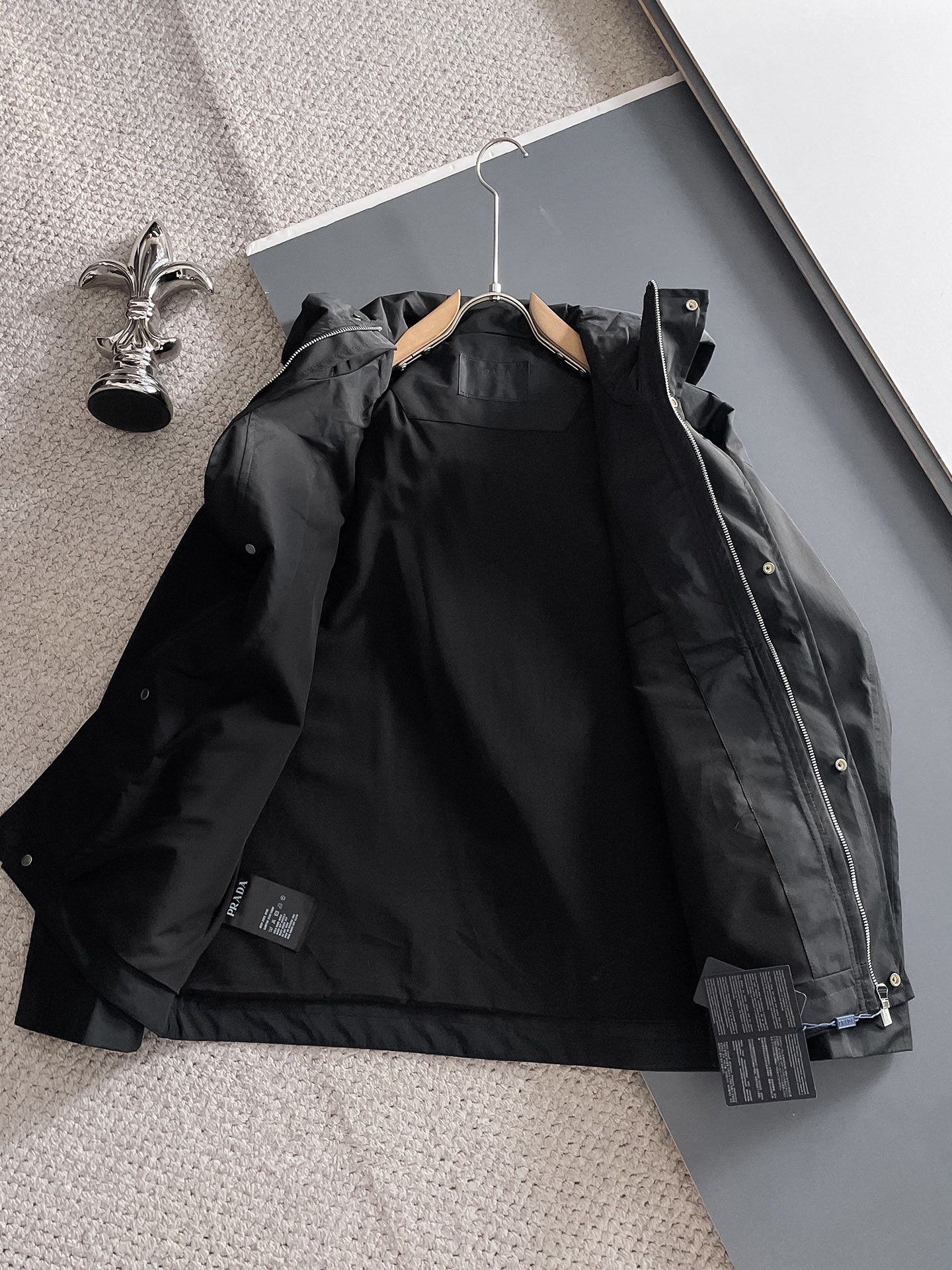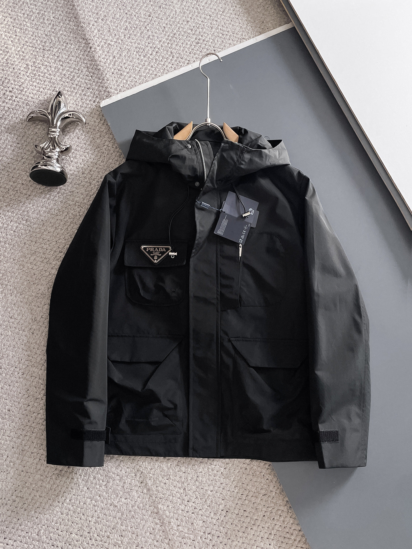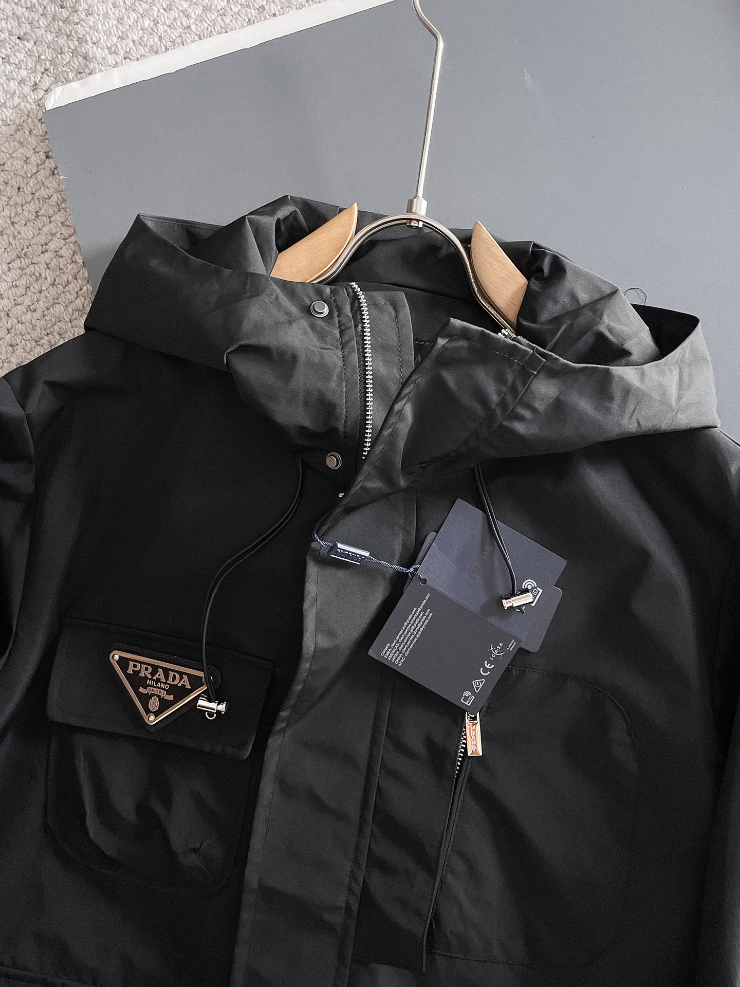 这款衣服是AAAAA 1:1 质量 (非常棒). 使用了和原版一模一样的材料. 商标部分也保持了和普拉达/Prada一样. 图片拍摄是实物衣服拍摄, 您所收到的实物保证和我们图片一模一样.
