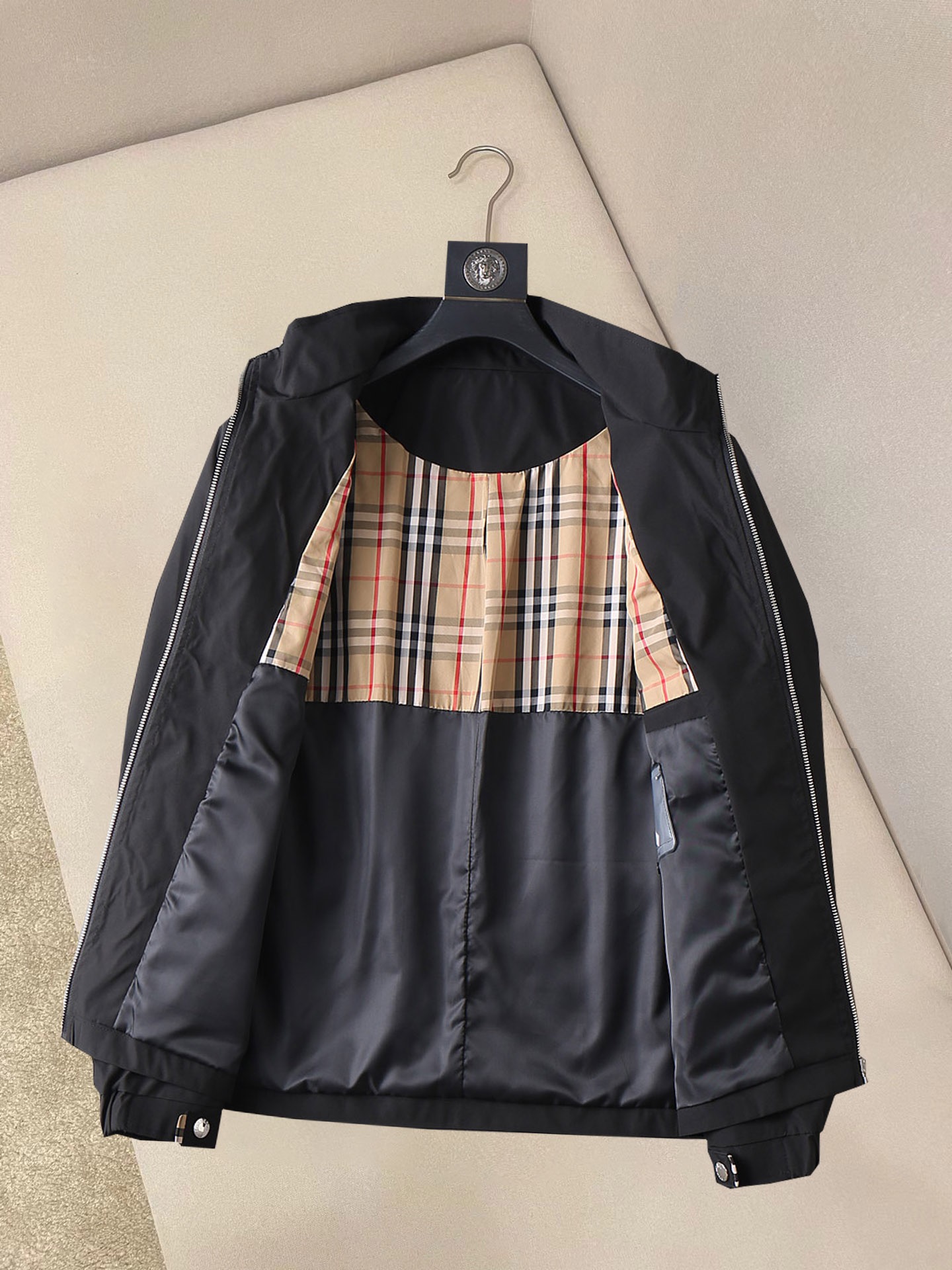 这款衣服是AAAAA 1:1 质量 (非常棒). 使用了和原版一模一样的材料. 商标部分也保持了和巴宝莉/Burberry一样. 图片拍摄是实物衣服拍摄, 您所收到的实物保证和我们图片一模一样.