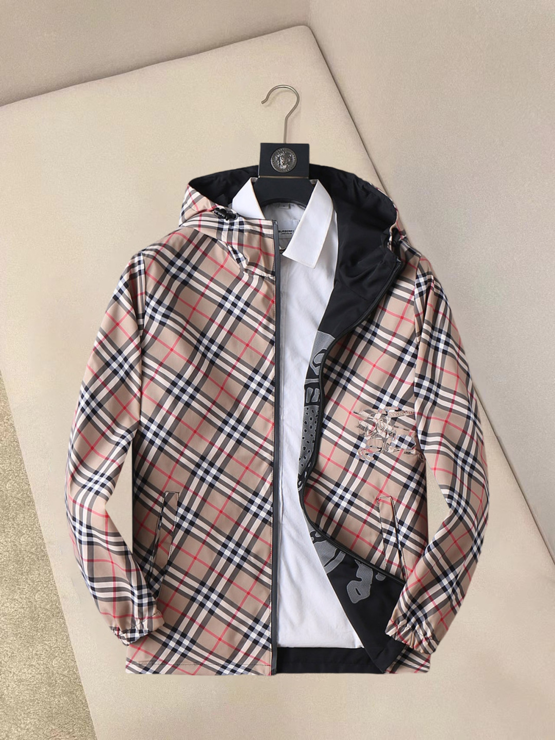 这款衣服是AAAAA 1:1 质量 (非常棒). 使用了和原版一模一样的材料. 商标部分也保持了和巴宝莉/Burberry一样. 图片拍摄是实物衣服拍摄, 您所收到的实物保证和我们图片一模一样.