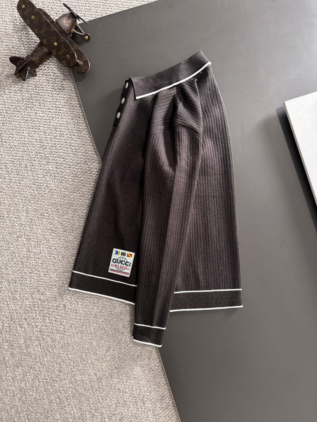 这款衣服是AAAAA 1:1 质量 (非常棒). 使用了和原版一模一样的材料. 商标部分也保持了和古奇/Gucci一样. 图片拍摄是实物衣服拍摄, 您所收到的实物保证和我们图片一模一样.