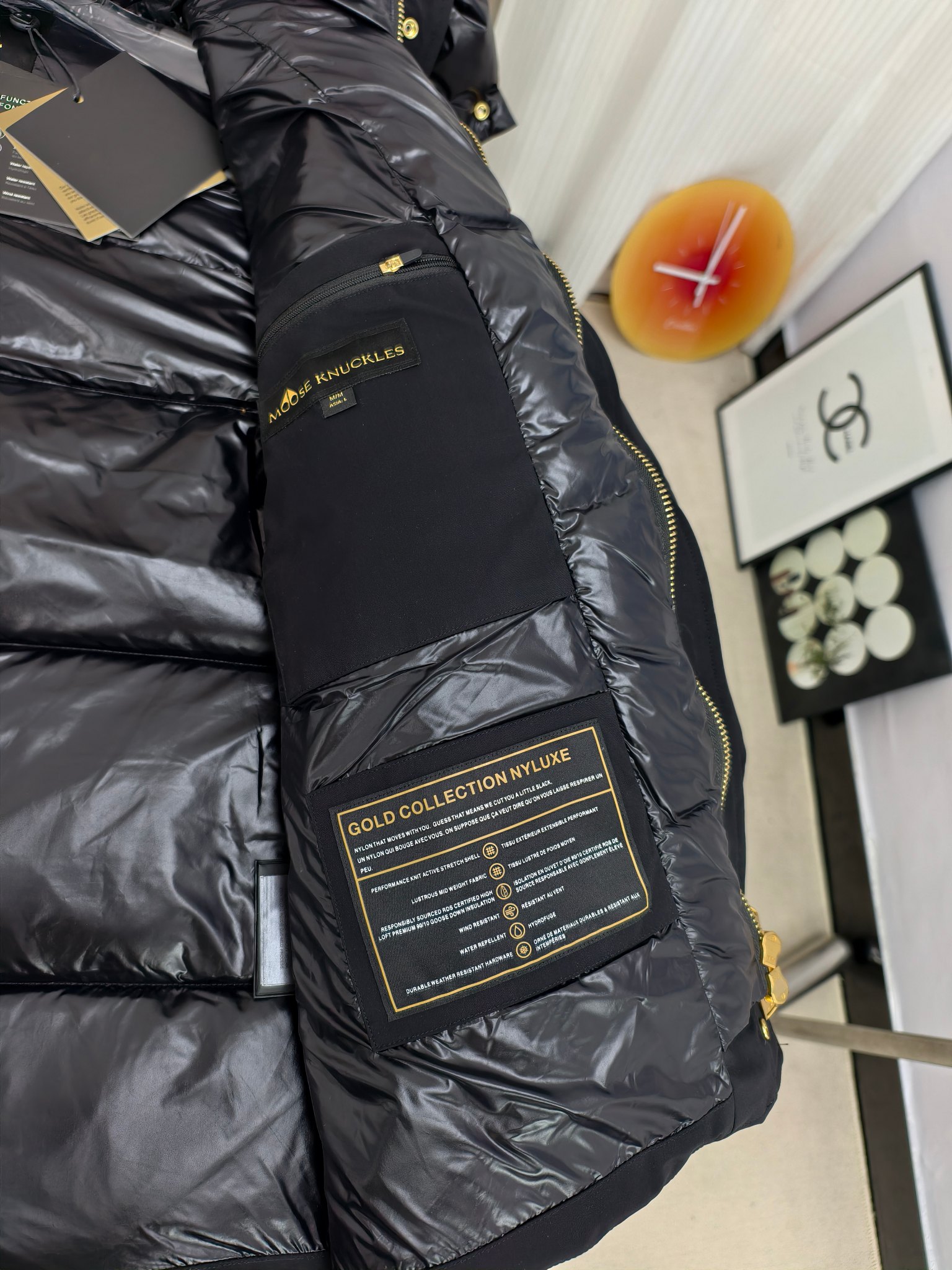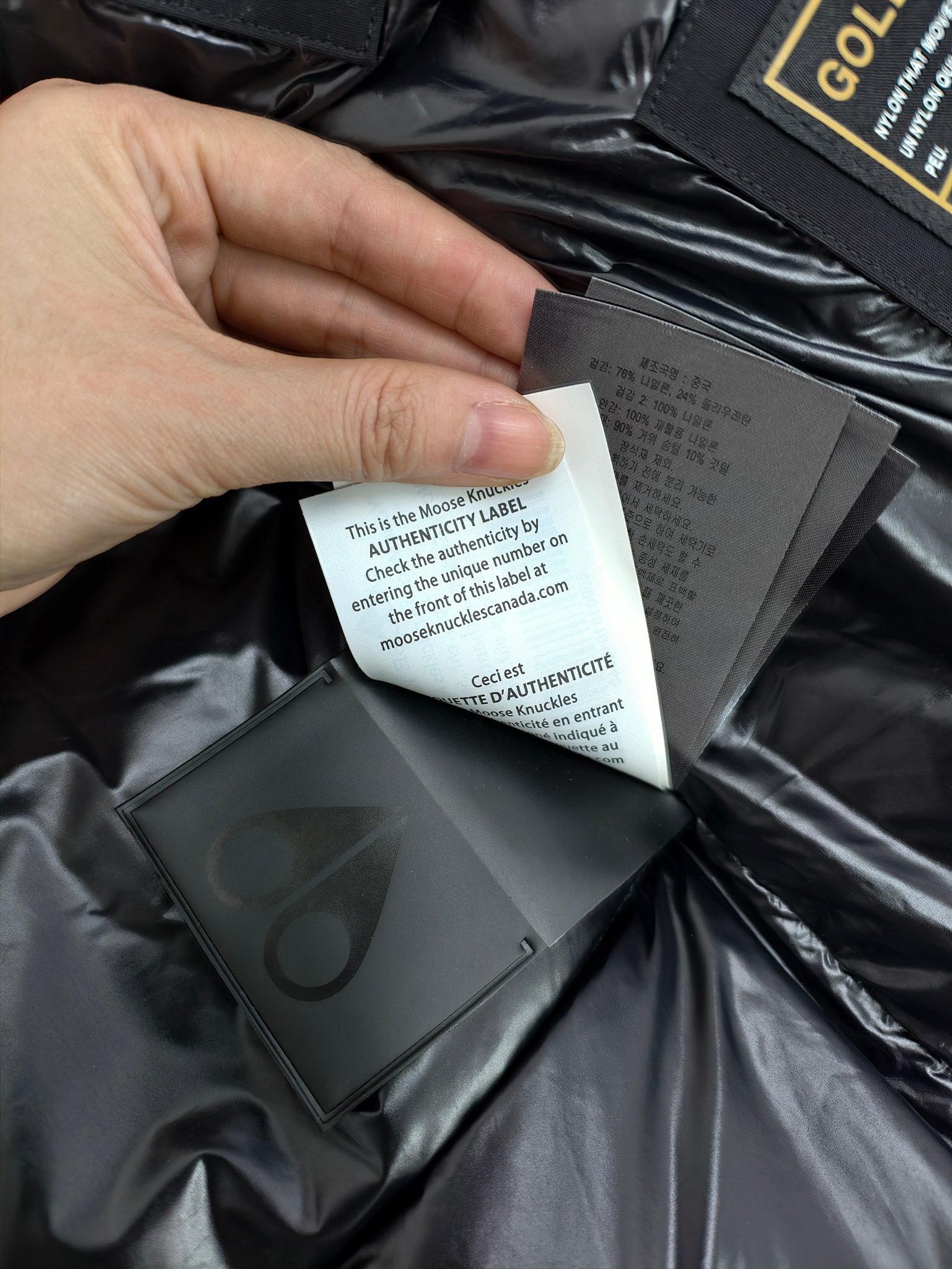 这款衣服是AAAAA 1:1 质量 (非常棒). 使用了和原版一模一样的材料. 商标部分也保持了和Moose Knuckles一样. 图片拍摄是实物衣服拍摄, 您所收到的实物保证和我们图片一模一样.