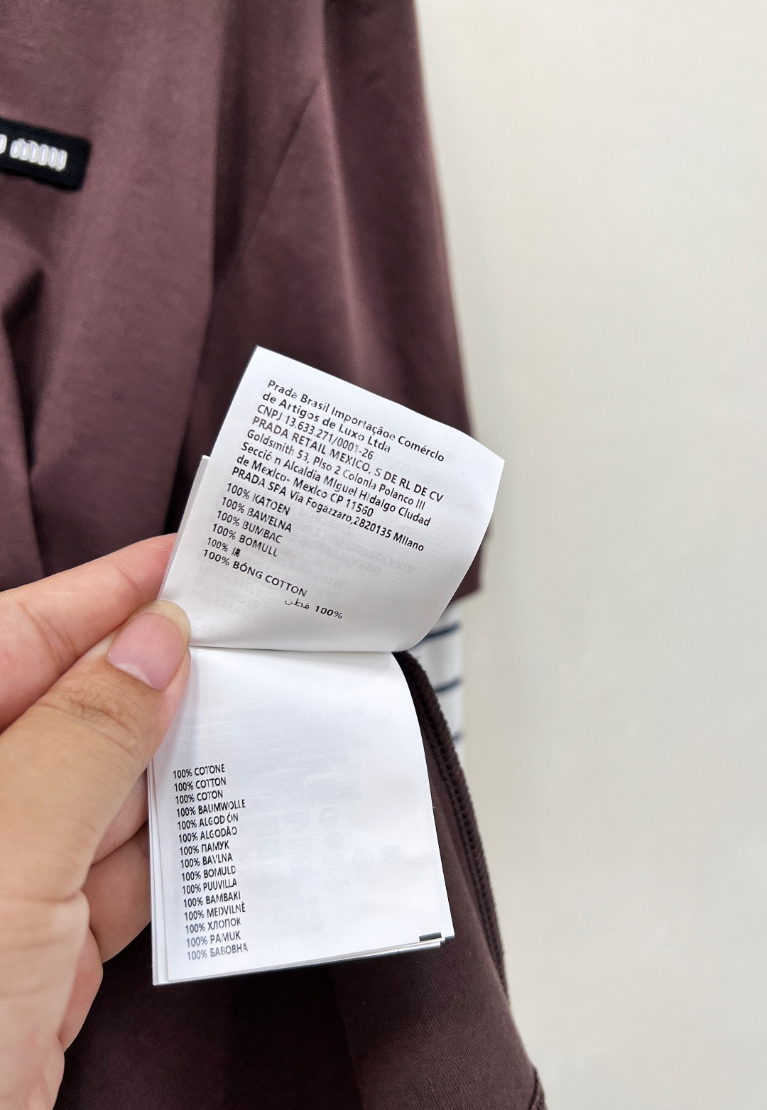 这款衣服是AAAAA 1:1 质量 (非常棒). 使用了和原版一模一样的材料. 商标部分也保持了和缪缪/Miu Miu一样. 图片拍摄是实物衣服拍摄, 您所收到的实物保证和我们图片一模一样.