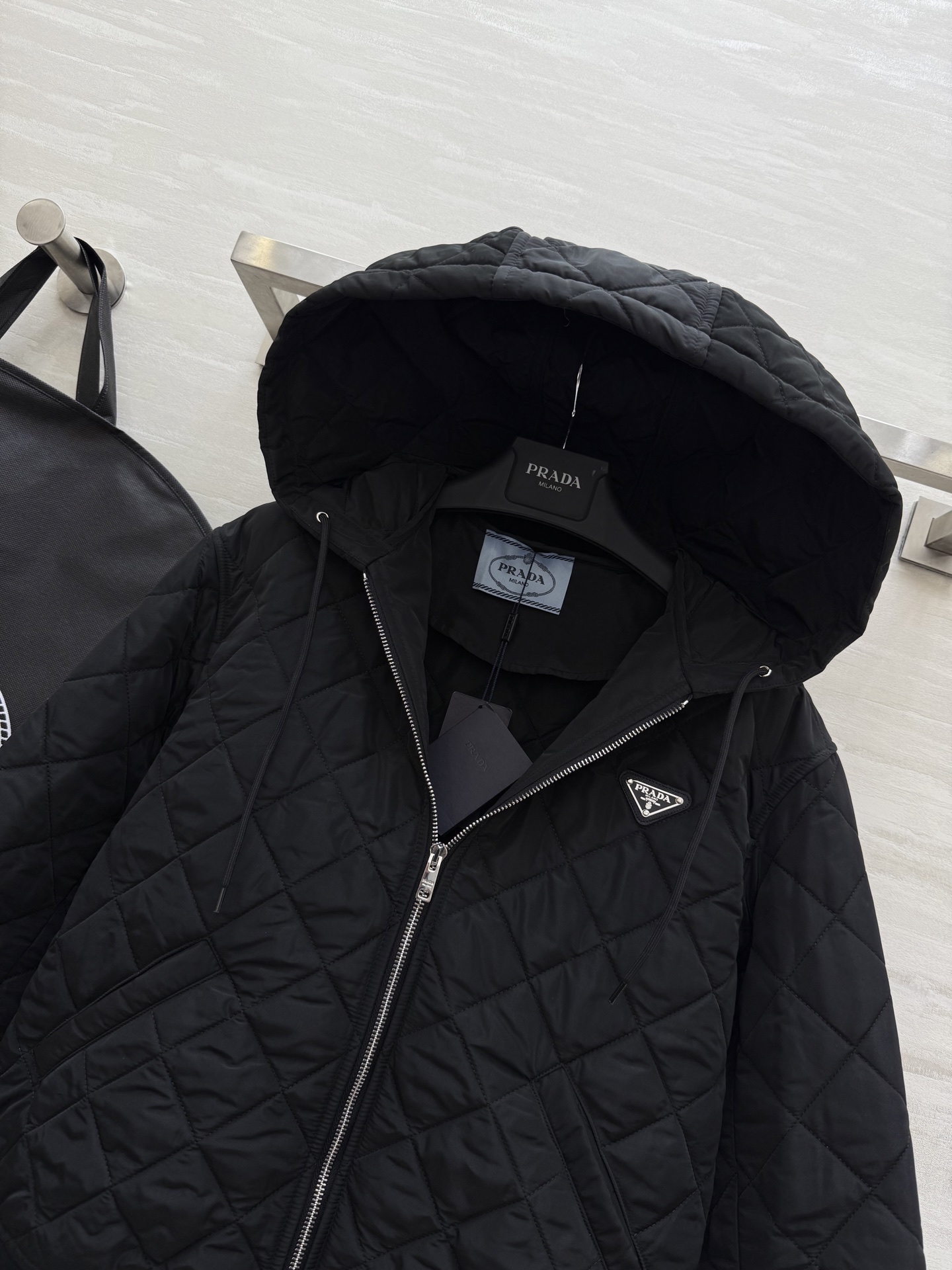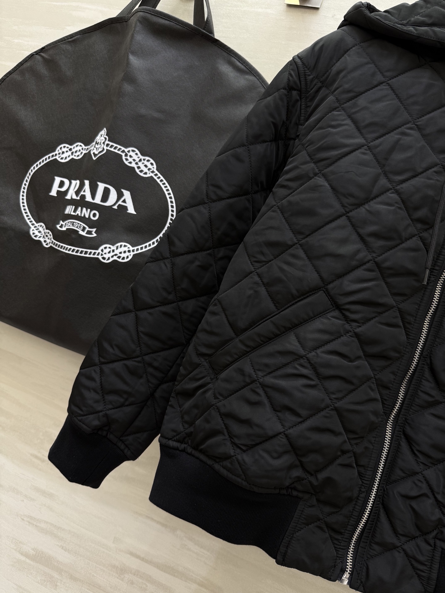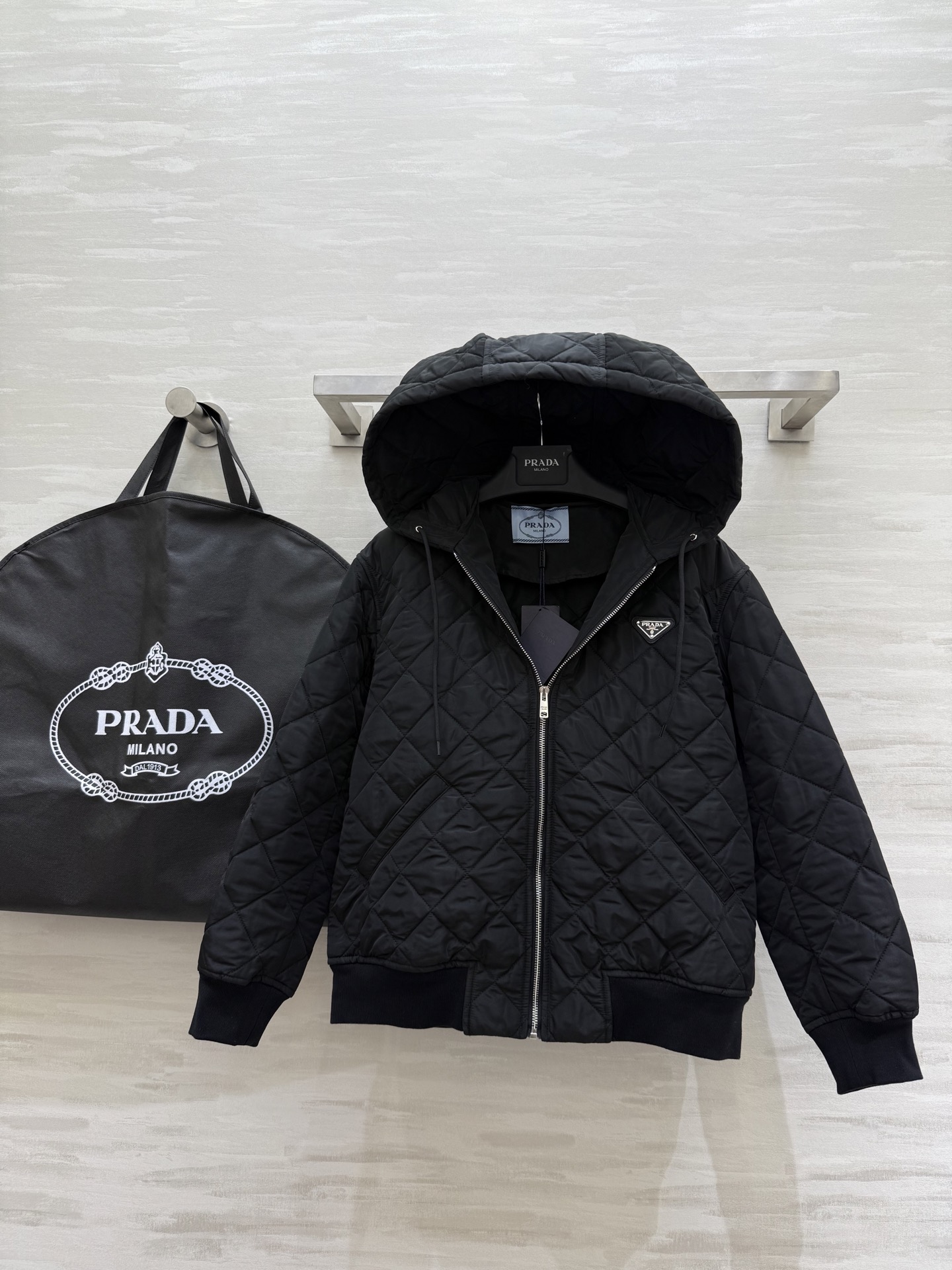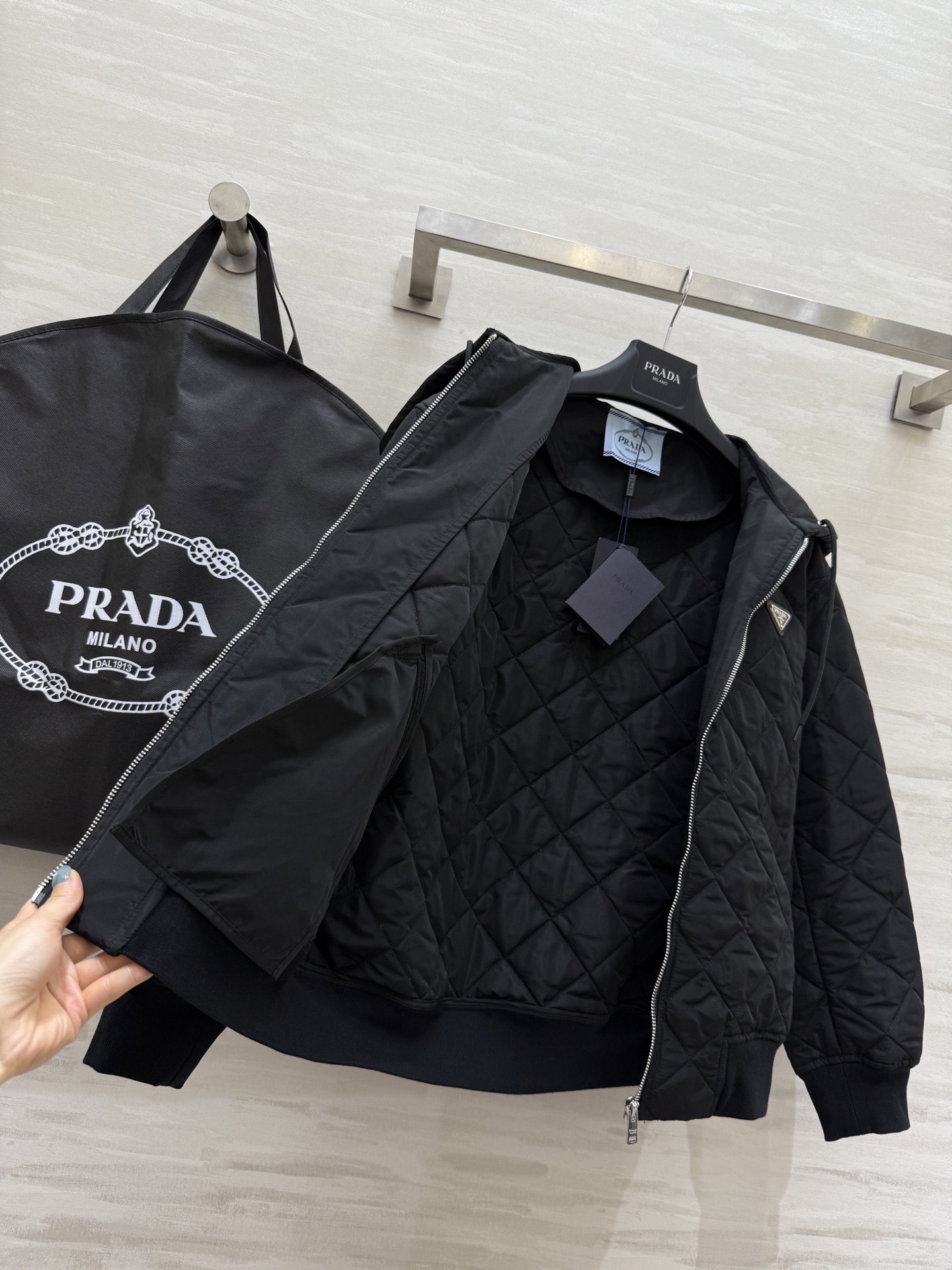 这款衣服是AAAAA 1:1 质量 (非常棒). 使用了和原版一模一样的材料. 商标部分也保持了和普拉达/Prada一样. 图片拍摄是实物衣服拍摄, 您所收到的实物保证和我们图片一模一样.