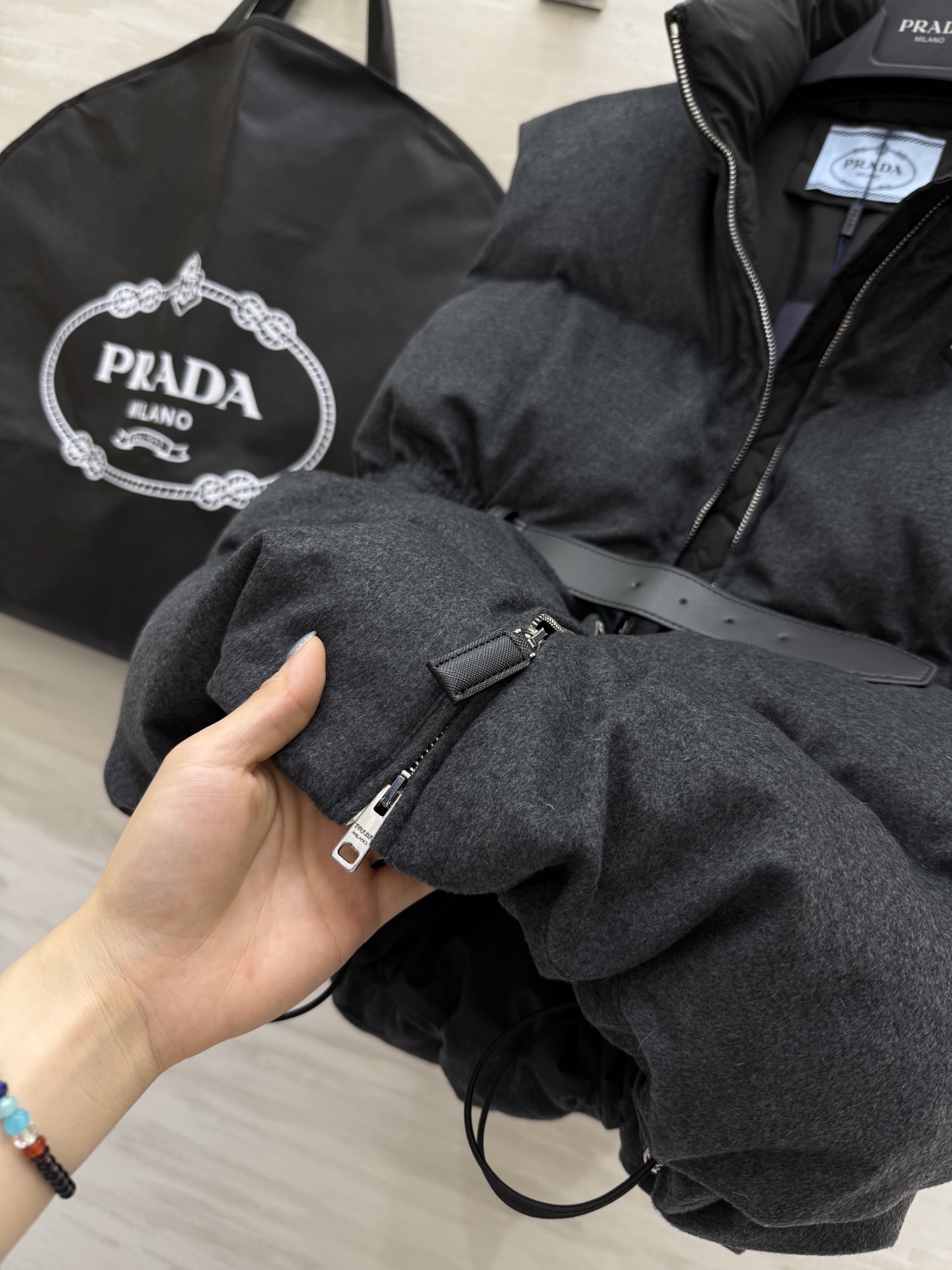 这款衣服是AAAAA 1:1 质量 (非常棒). 使用了和原版一模一样的材料. 商标部分也保持了和普拉达/Prada一样. 图片拍摄是实物衣服拍摄, 您所收到的实物保证和我们图片一模一样.