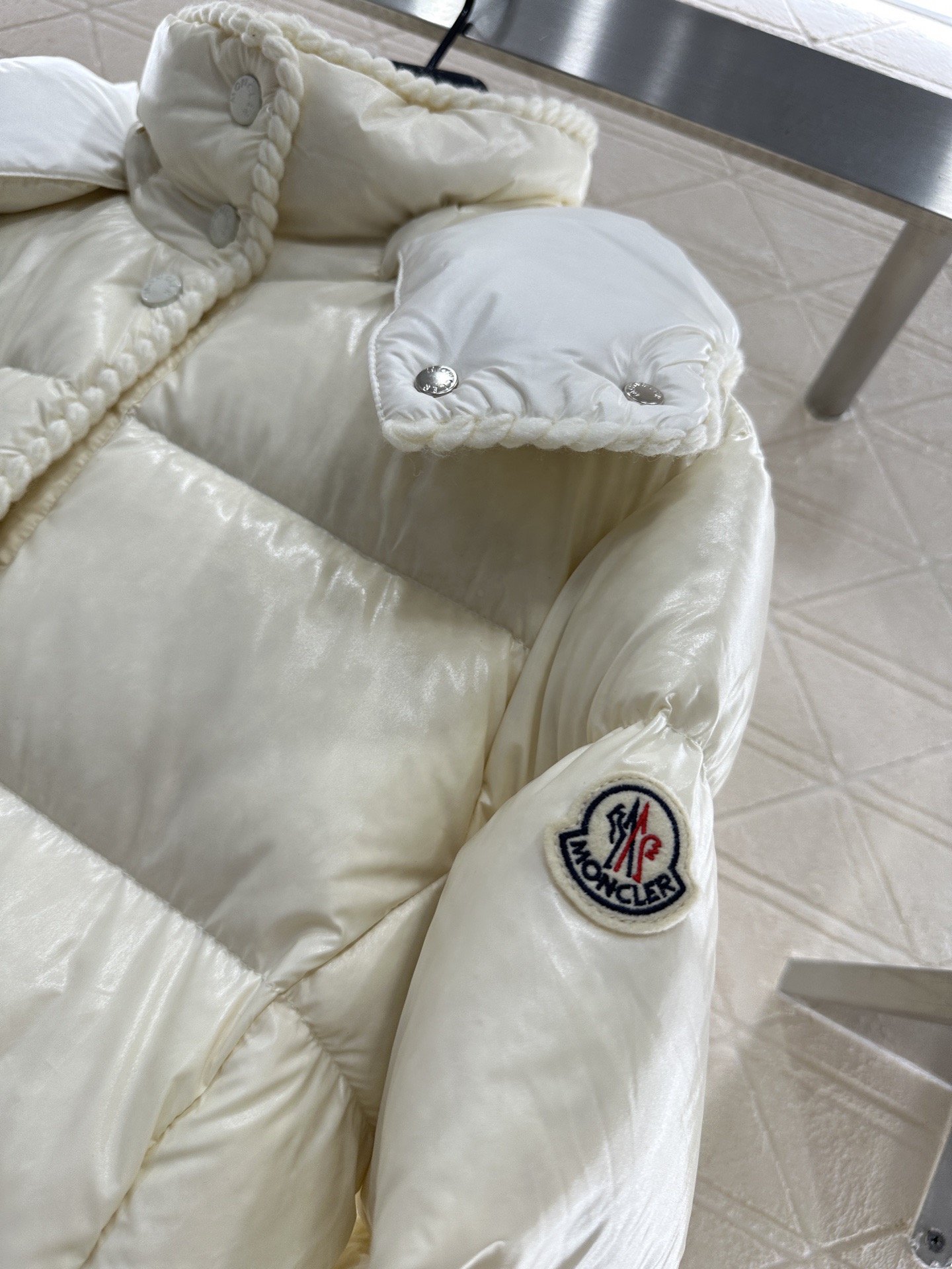 这款衣服是AAAAA 1:1 质量 (非常棒). 使用了和原版一模一样的材料. 商标部分也保持了和盟可睐/moncler一样. 图片拍摄是实物衣服拍摄, 您所收到的实物保证和我们图片一模一样.