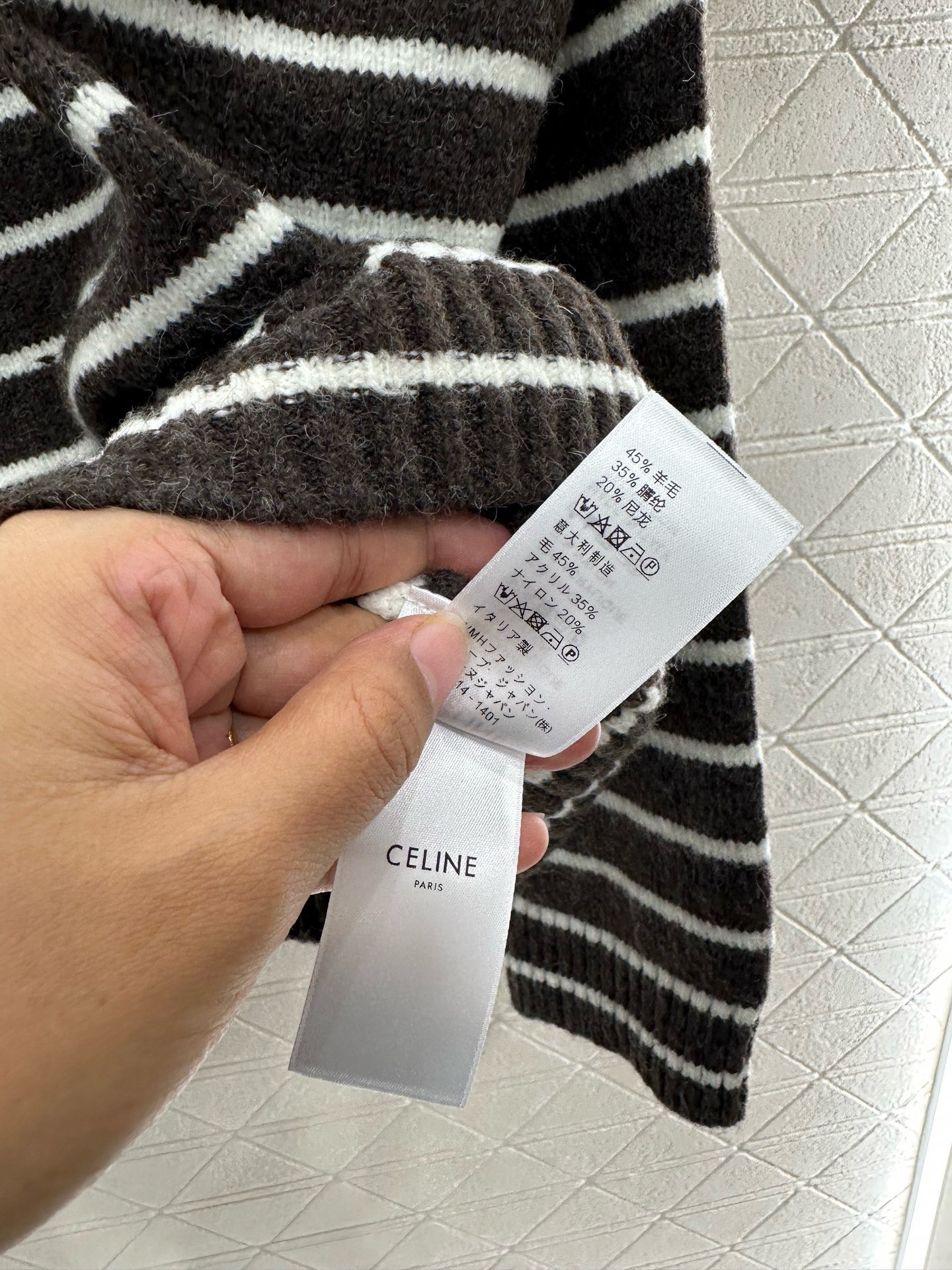 这款衣服是AAAAA 1:1 质量 (非常棒). 使用了和原版一模一样的材料. 商标部分也保持了和思琳/Celine一样. 图片拍摄是实物衣服拍摄, 您所收到的实物保证和我们图片一模一样.