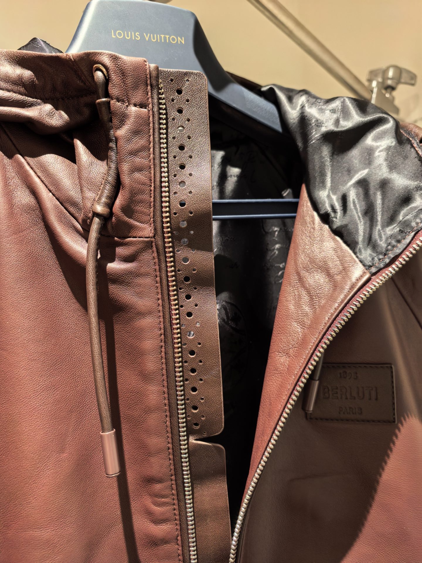 这款衣服是AAAAA 1:1 质量 (非常棒). 使用了和原版一模一样的材料. 商标部分也保持了和Berluti一样. 图片拍摄是实物衣服拍摄, 您所收到的实物保证和我们图片一模一样.