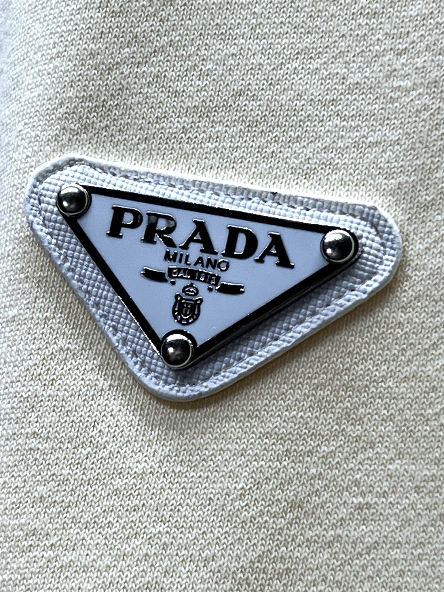 这款衣服是AAAAA 1:1 质量 (非常棒). 使用了和原版一模一样的材料. 商标部分也保持了和普拉达/Prada一样. 图片拍摄是实物衣服拍摄, 您所收到的实物保证和我们图片一模一样.