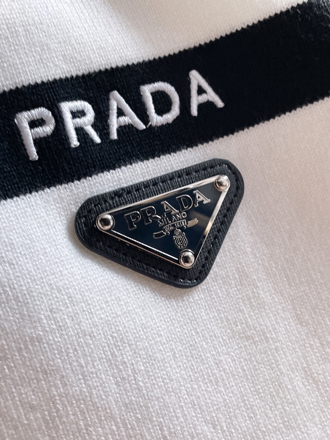 这款衣服是AAAAA 1:1 质量 (非常棒). 使用了和原版一模一样的材料. 商标部分也保持了和普拉达/Prada一样. 图片拍摄是实物衣服拍摄, 您所收到的实物保证和我们图片一模一样.