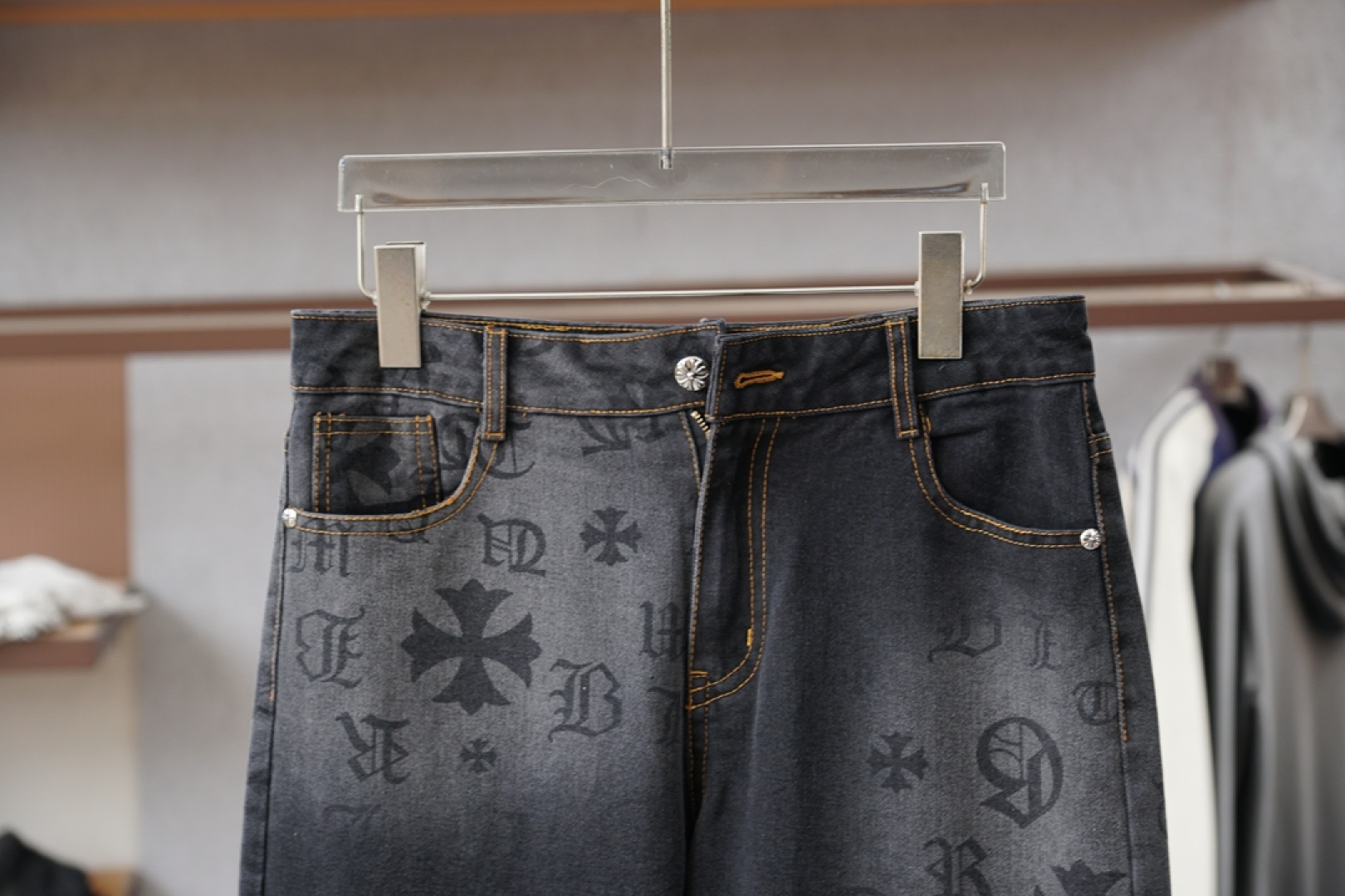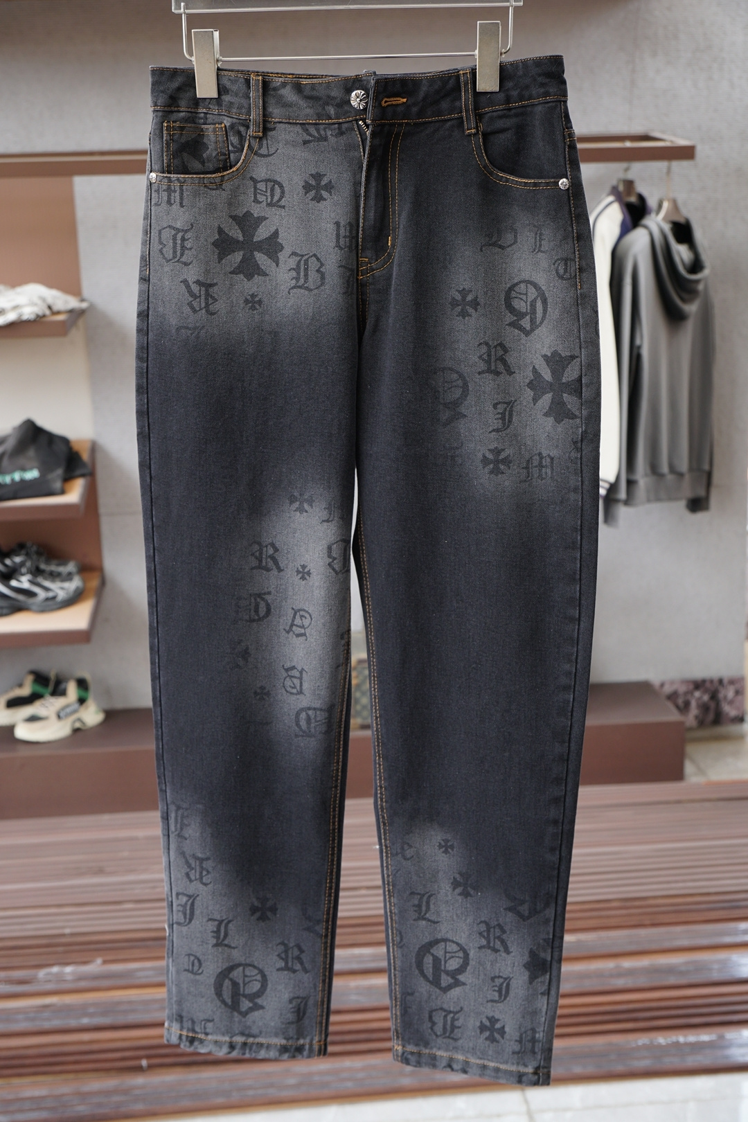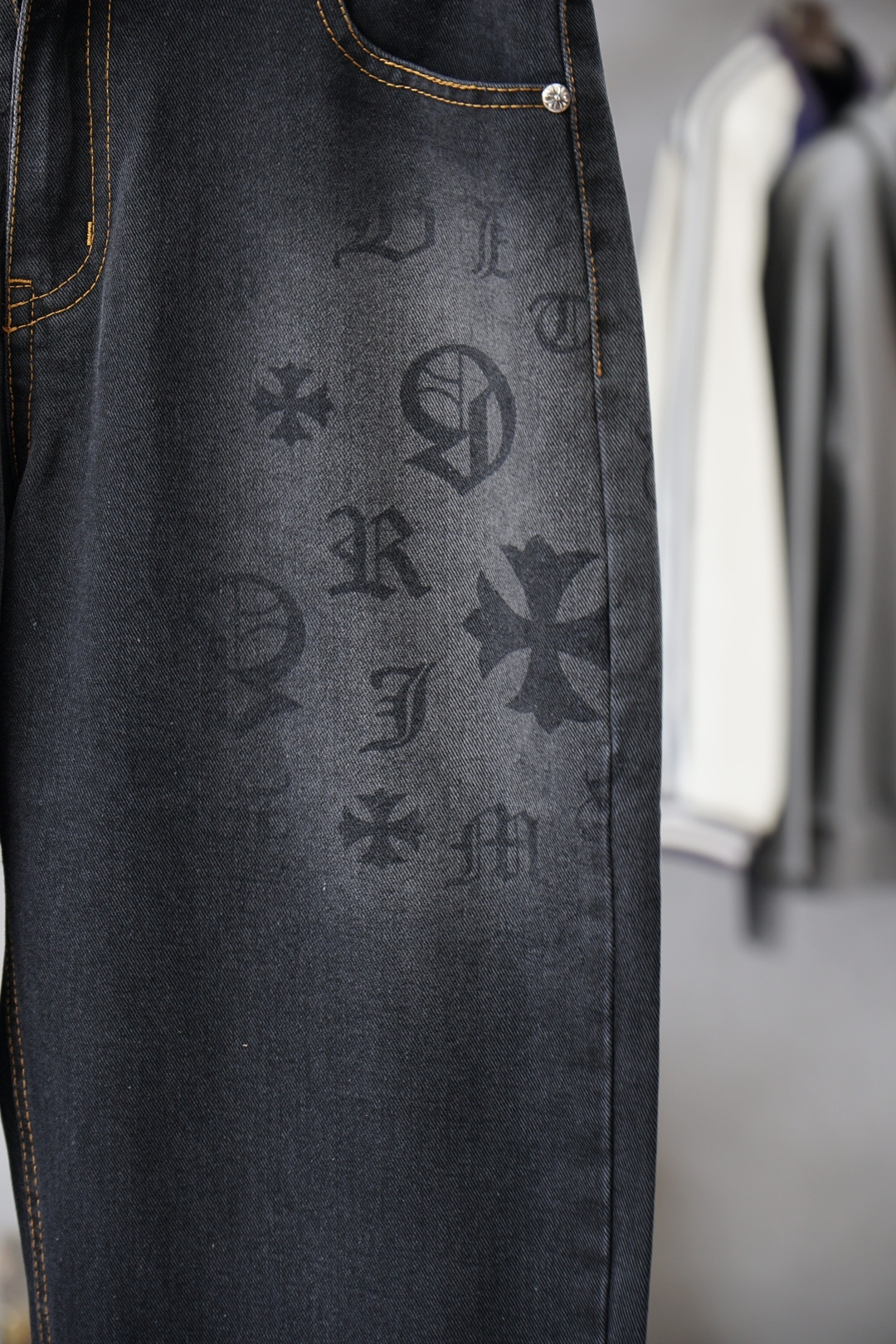 这款衣服是AAAAA 1:1 质量 (非常棒). 使用了和原版一模一样的材料. 商标部分也保持了和克罗心/Chrome Hearts一样. 图片拍摄是实物衣服拍摄, 您所收到的实物保证和我们图片一模一样.