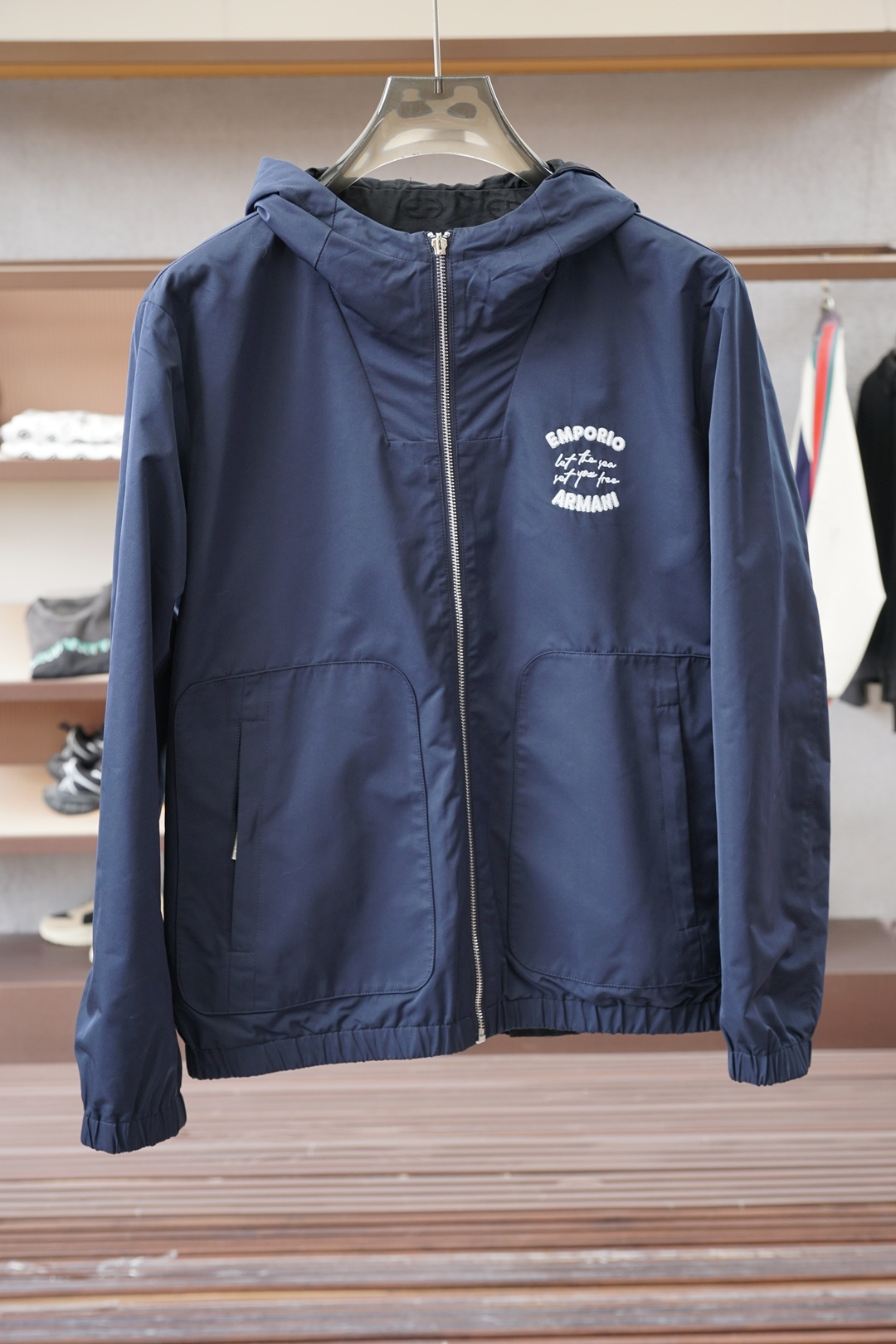 这款衣服是AAAAA 1:1 质量 (非常棒). 使用了和原版一模一样的材料. 商标部分也保持了和阿玛尼/Armani一样. 图片拍摄是实物衣服拍摄, 您所收到的实物保证和我们图片一模一样.