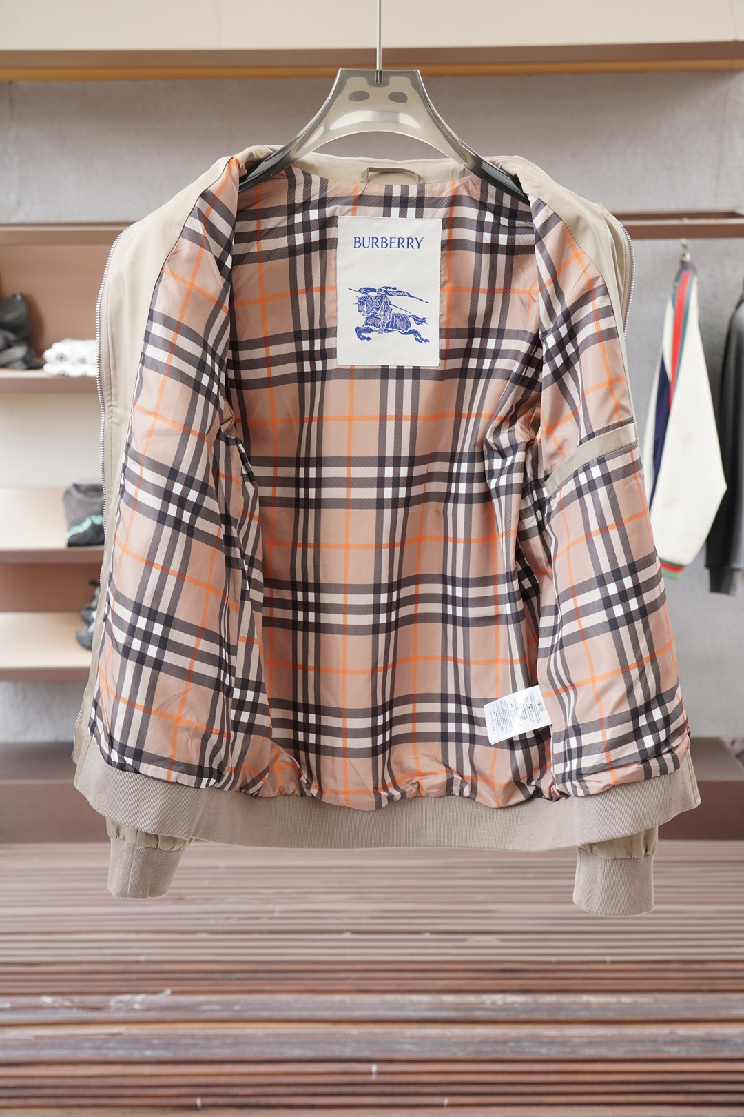 这款衣服是AAAAA 1:1 质量 (非常棒). 使用了和原版一模一样的材料. 商标部分也保持了和巴宝莉/Burberry一样. 图片拍摄是实物衣服拍摄, 您所收到的实物保证和我们图片一模一样.