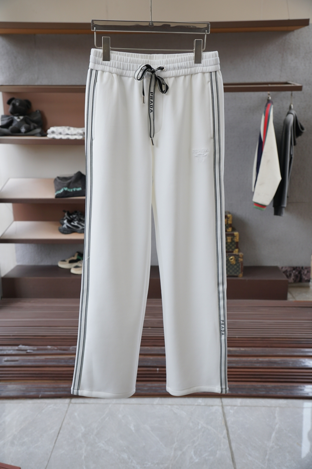 这款衣服是AAAAA 1:1 质量 (非常棒). 使用了和原版一模一样的材料. 商标部分也保持了和普拉达/Prada一样. 图片拍摄是实物衣服拍摄, 您所收到的实物保证和我们图片一模一样.