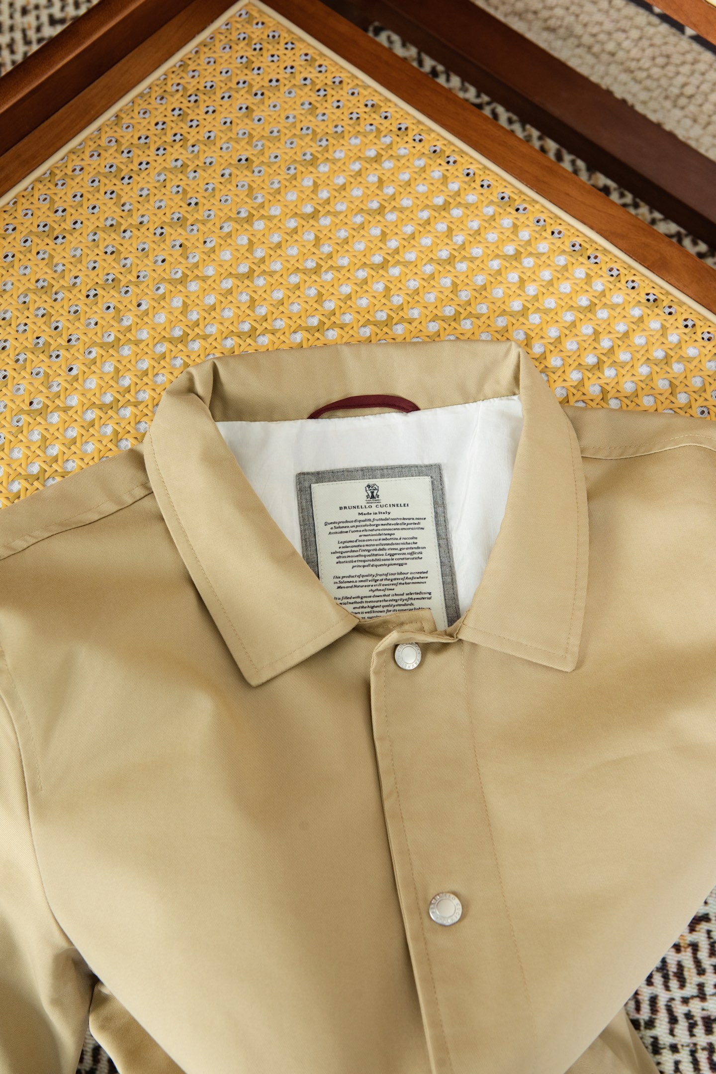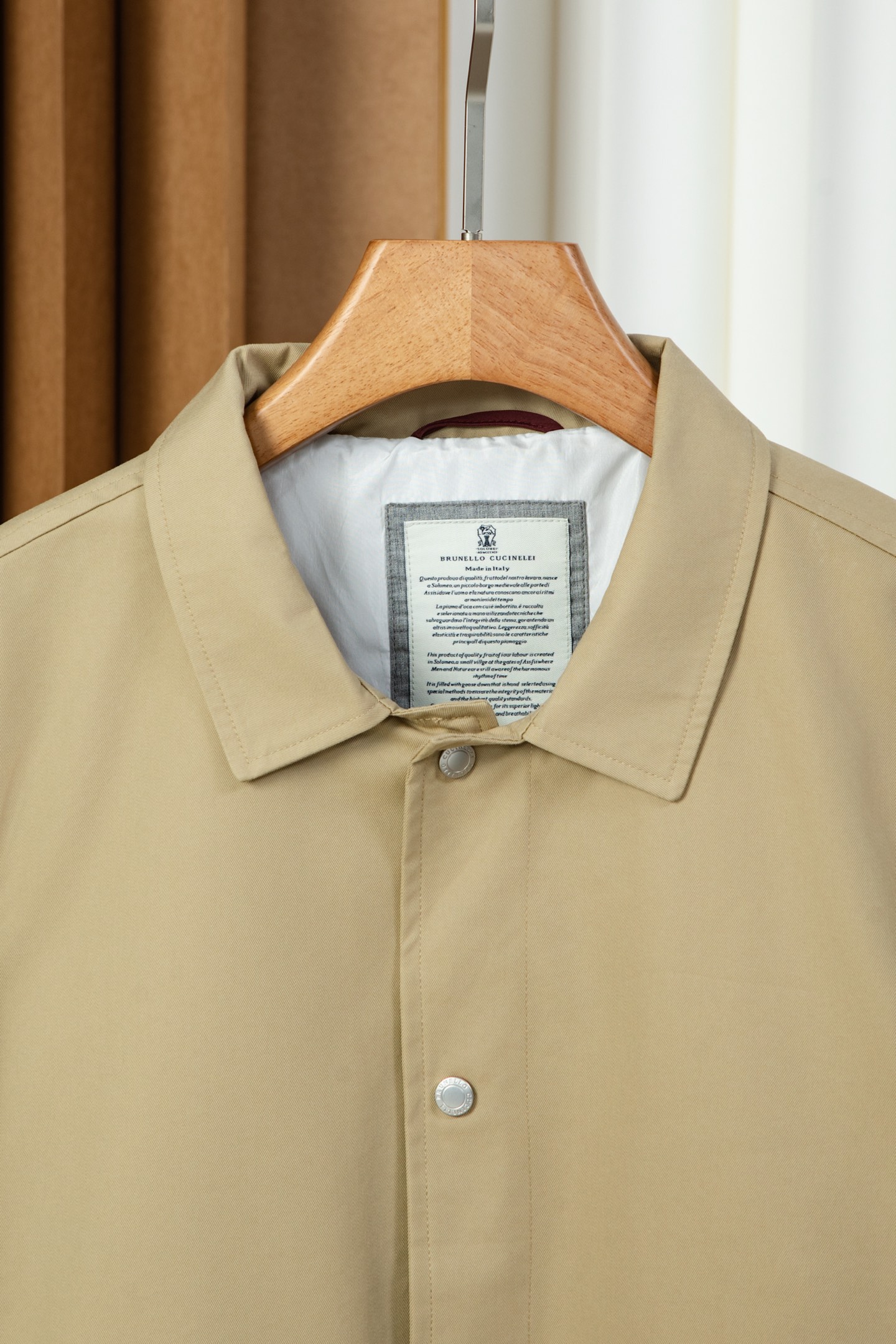 这款衣服是AAAAA 1:1 质量 (非常棒). 使用了和原版一模一样的材料. 商标部分也保持了和Brunello Cucinelli一样. 图片拍摄是实物衣服拍摄, 您所收到的实物保证和我们图片一模一样.