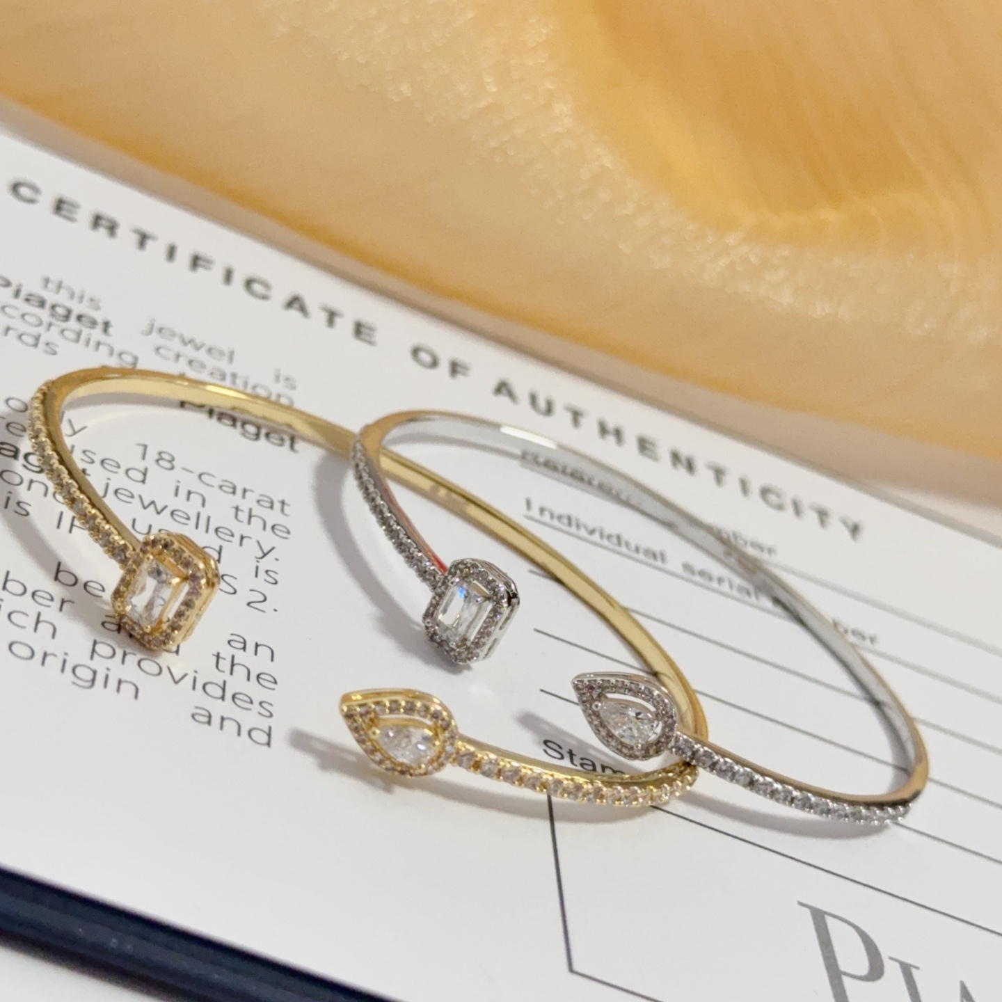这款首饰是AAAAA 1:1 质量 (非常棒). 使用了和原版一模一样的材料. 商标部分也保持了和伯爵/Piaget一样. 图片拍摄是实物首饰拍摄, 您所收到的实物保证和我们图片一模一样.